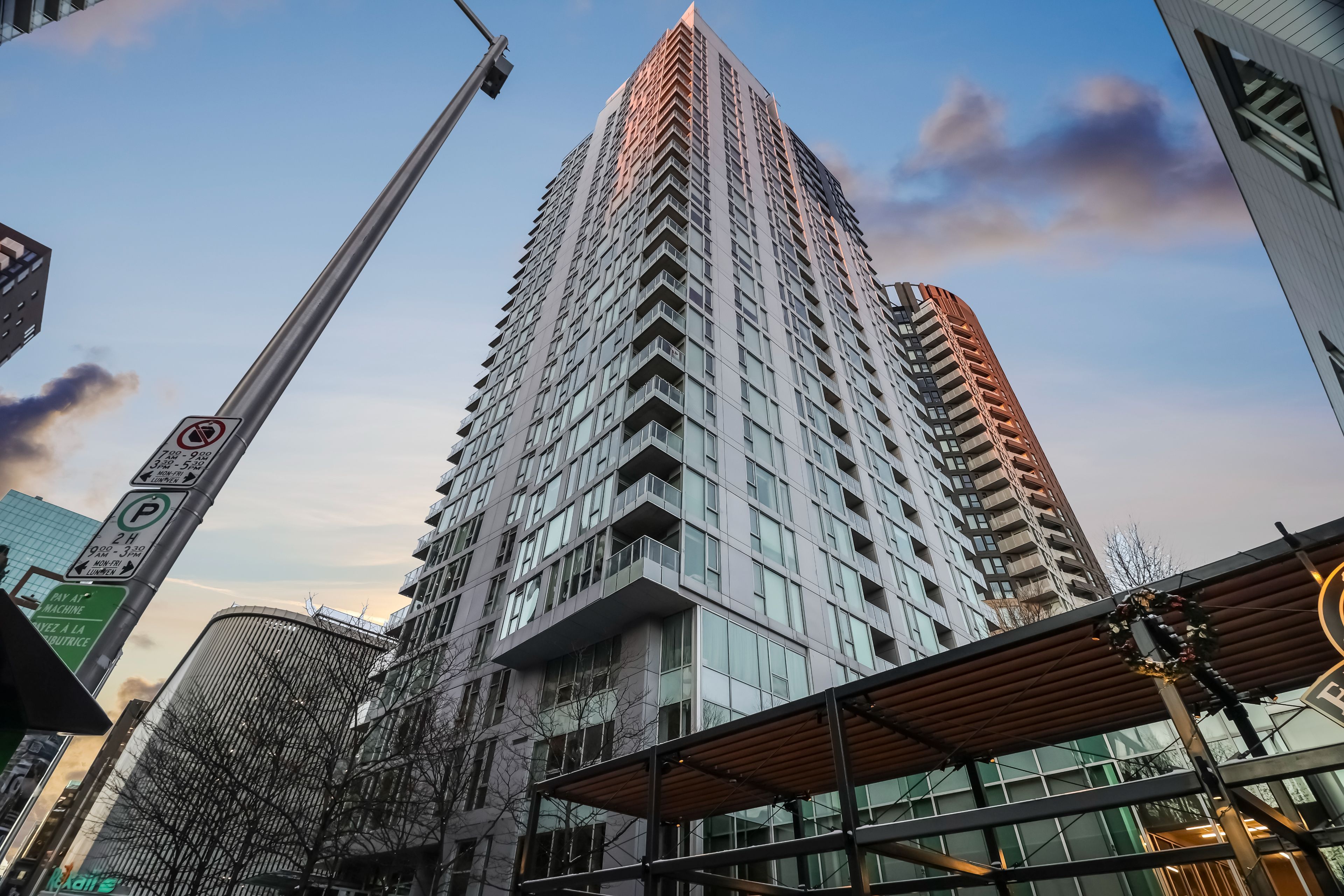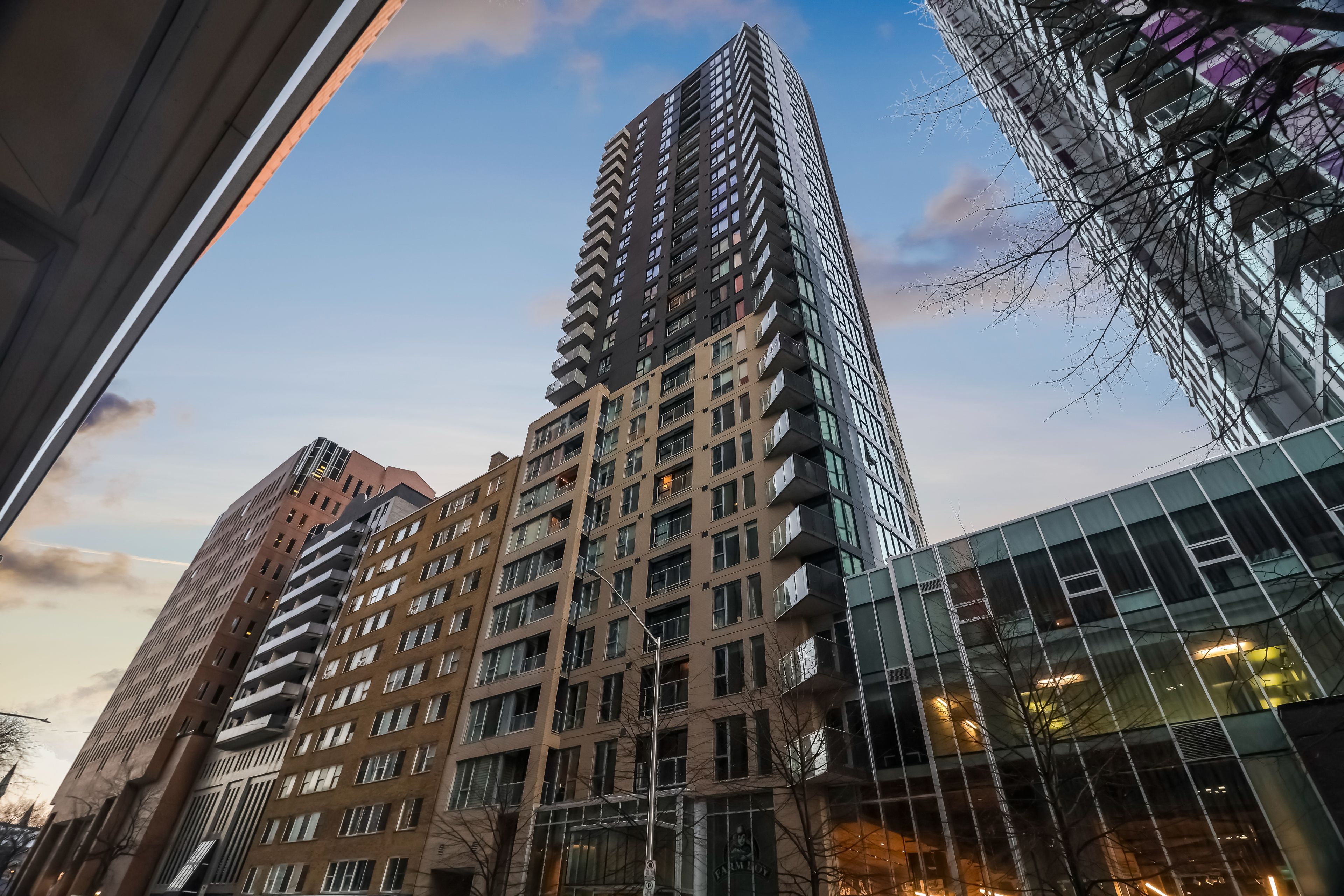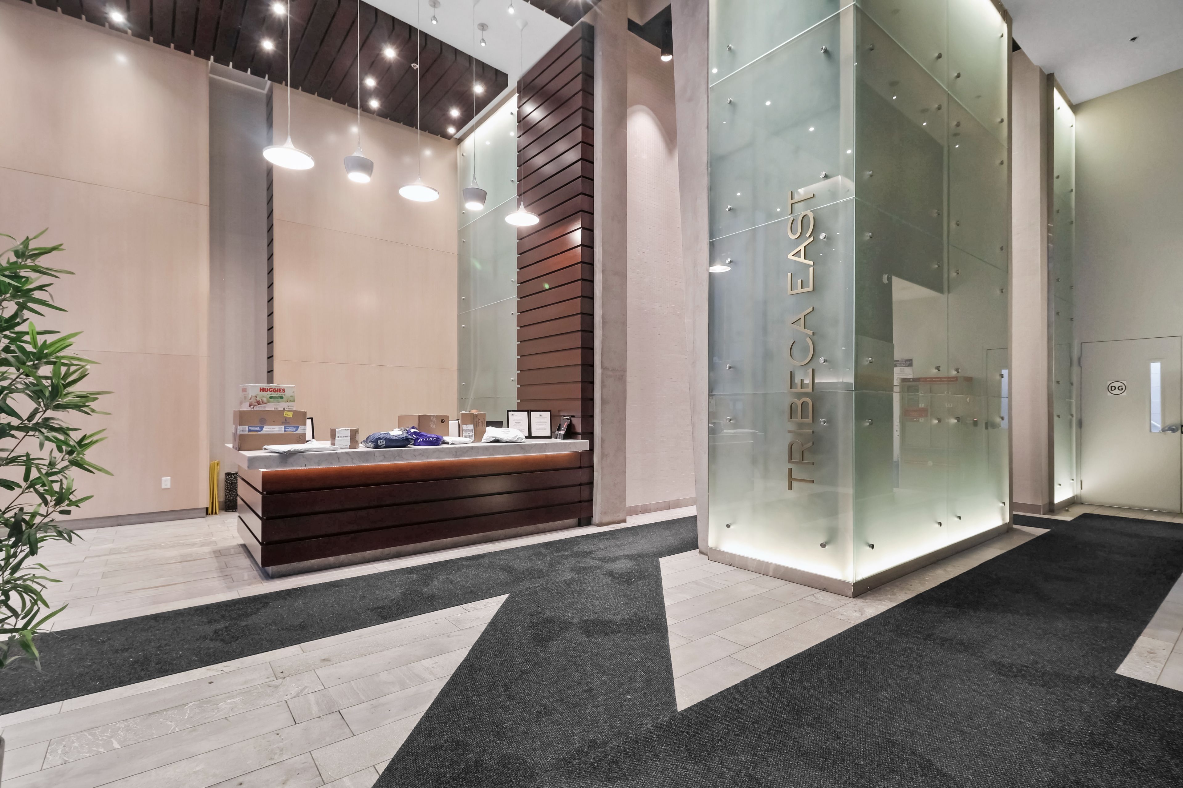 • Building amenities include gym, indoor pool, sauna, and rooftop patio.