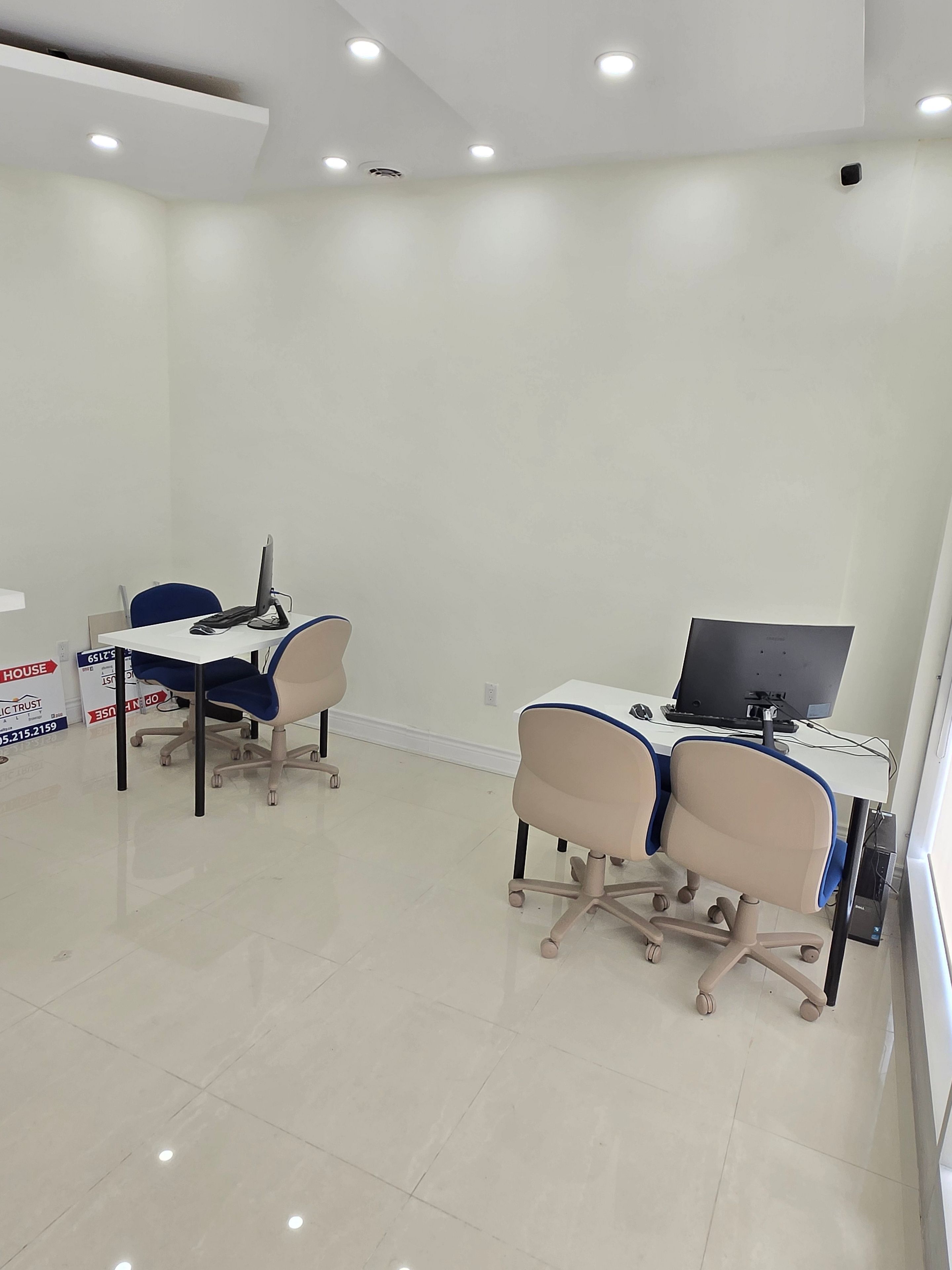 Beautifully renovated two-storey commercial unit available for immediate lease, offering approximately 734 sq. Ft. Of functional and versatile space. This bright and modern unit features a welcoming reception area that sets a professional tone for clients and visitors, a convenient kitchenette, two well-appointed bathrooms, one on each floor. Stylish pot lights on the main floor that enhance the ambiance and appeal of the workspace. The unique layout provides flexibility to be utilized for two separate purposes, with distinct areas on the upper and lower levels, making it an ideal choice for professionals seeking a multi-use environment. Perfect for a wide range of retail or professional uses, including but not limited to an office, mortgage brokerage, lawyer office, tutoring or educational center, travel agency, accounting firm, insurance brokerage, real estate brokerage, or other professional services. Located in a high-traffic, well-established plaza with ample on-site parking, the unit enjoys excellent visibility and exposure facing new delhi drive, providing maximum signage and branding opportunities. Surrounded by major retailers such as costco and home depot, along with prominent banks and numerous local amenities, this location offers exceptional convenience and accessibility for both staff and clients. Whether you are looking to establish a new business or expand an existing one, this well-maintained unit offers the perfect setting to grow and thrive in a vibrant commercial hub.