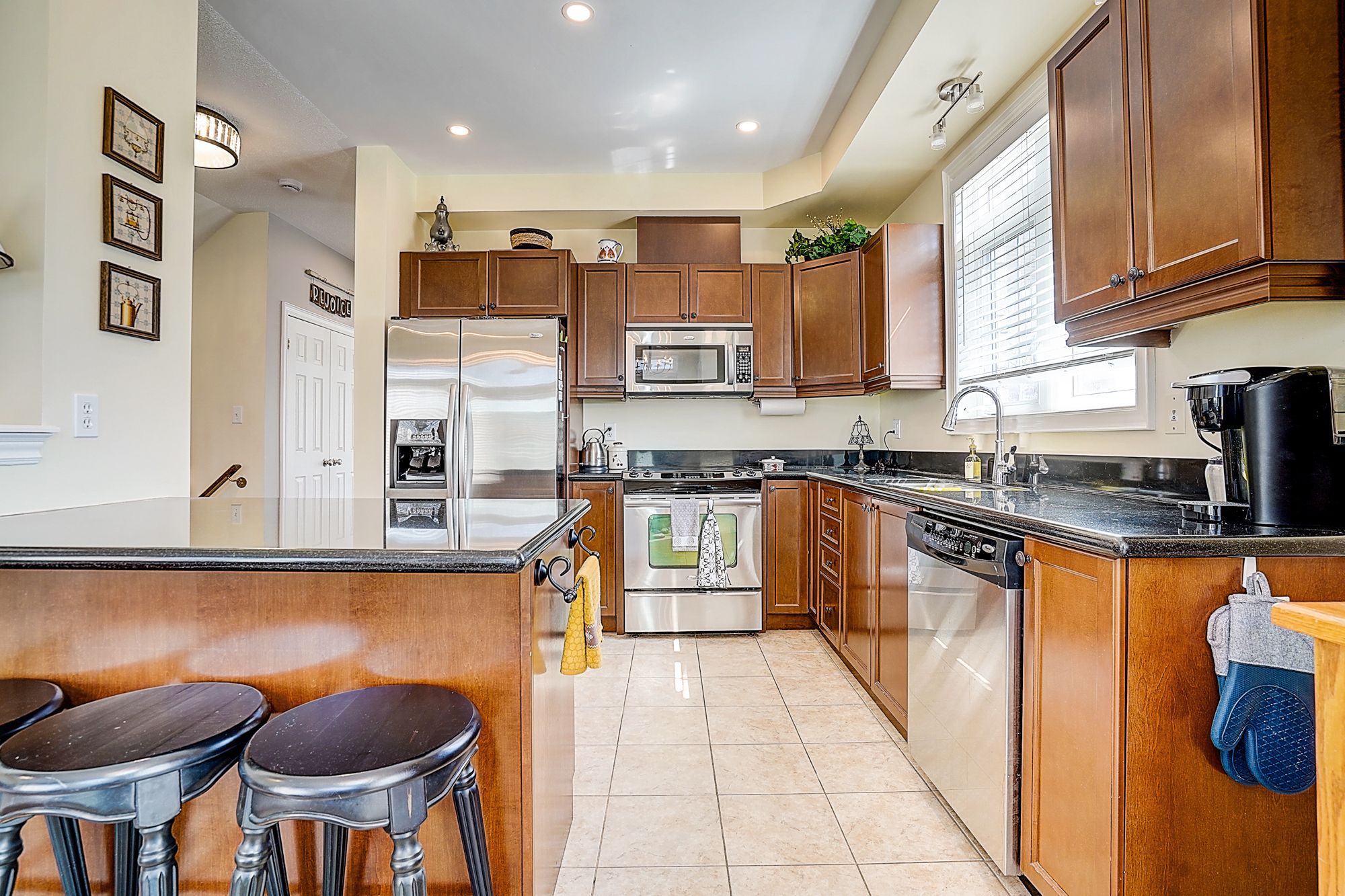 Welcome to this stunning end-unit townhome in the highly sought-after grand cornell community! Bathed in natural sunlight, this bright and airy home offers a spacious, open-concept layout that truly feels like a semi-detached. Featuring 3 generous bedrooms and a large basement with oversized windows, this home provides exceptional living space for families of all sizes. The modern kitchen boasts granite countertops, ample cabinetry, and overlooks the inviting living and dining areas-perfect for entertaining. Pot lights and built-in storage add both style and functionality throughout. Step outside to your private backyard oasis, complete with beautiful landscaping, flower beds, interlocking stone, and a charming gazebo-ideal for relaxing or hosting guests. Enjoy the convenience of a double garage and double driveway. Located in a family-oriented neighborhood, this home is just minutes from the hospital, highway 407, shopping, schools, parks, and public transit. Best of all, there are no potl fees or maintenance fees! Roof was replaced in 2025, furnace 2026, patio door and side window replace in 2019. A rare opportunity to own a sun-filled, spacious home in one of cornell's most desirable areas-don't miss it!