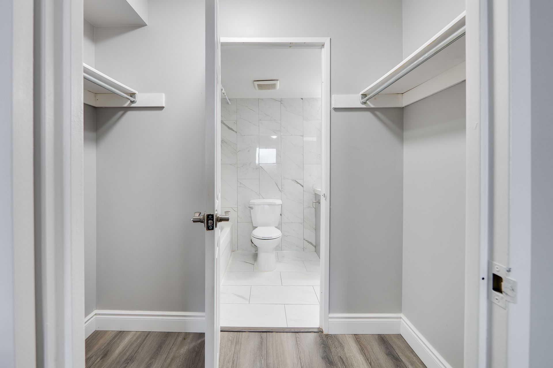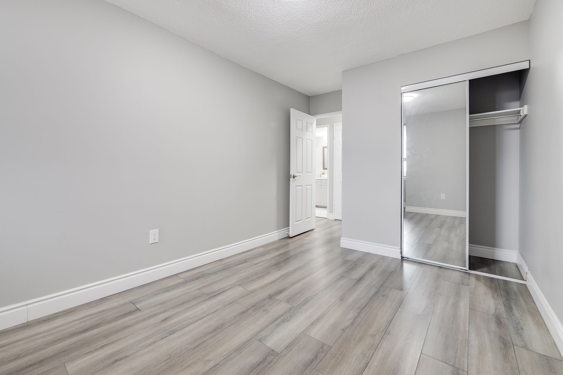 • Generous bedrooms with laminate flooring and a primary walk-in closet.