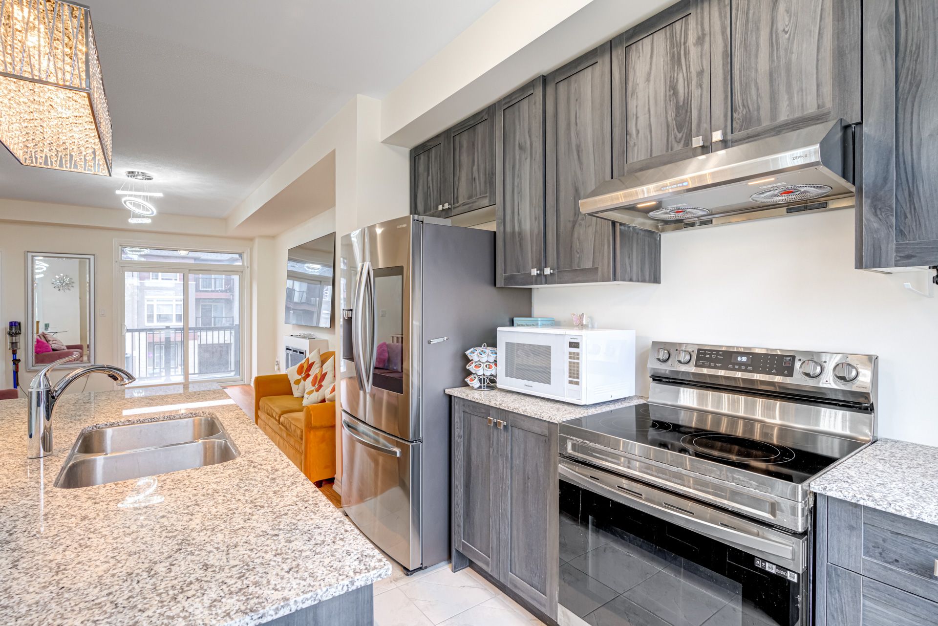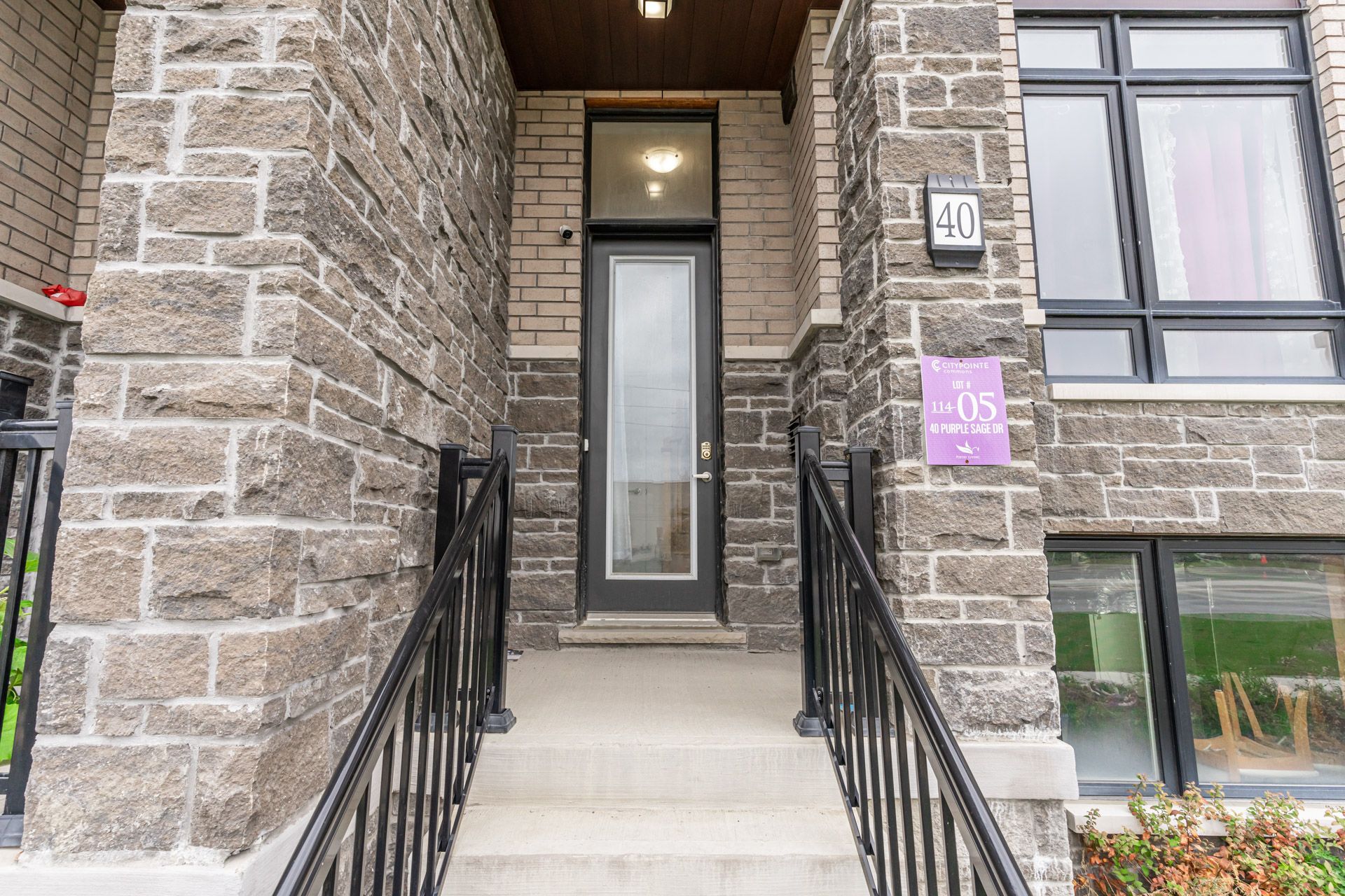 Welcome to 40 purple sage drive, this beautiful modern freehold townhome has no potl or condo fees, all brick & stone exterior, 3 beds + 4 baths, built in 2022, appx 1,600 sq ft of living space, dual entrance from front and back of home, built in garage, entry from garage into home, 3 total parking spots, laminate floors throughout main floor & 2nd floor, large family room with built in electric fireplace & spacious balcony, eat in kitchen with granite countertops and high end stainless steel appliances w/centre island, main floor w/extra living space, 2 full washrooms on upper level with 3 bedrooms, oak staircase, 2nd bedroom w/balcony, primary bedroom w/large closet & 4 pc ensuite, large windows throughout, lots of natural light, steps to public transit & local amenities.