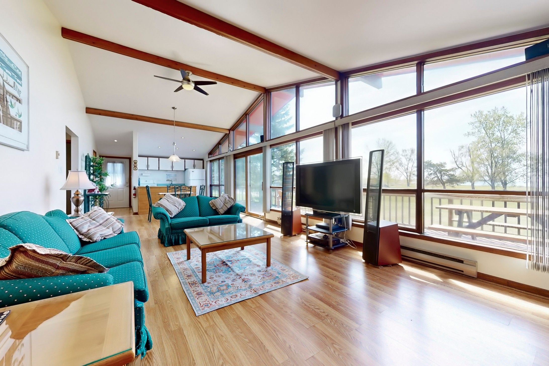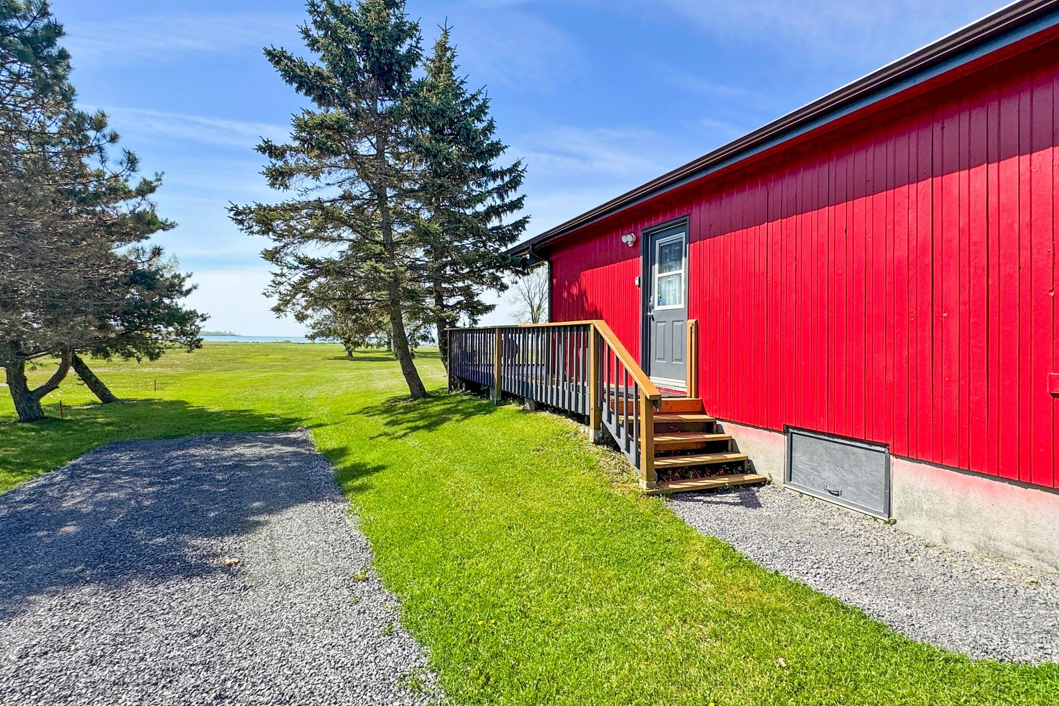 This stunning waterfront property, approx. 1 acre featuring 100 ft. Of your own beautiful beach along popham bay (lake ontario). Attached to this lot is an adjoining 2nd lot (approximately 5000 sq. Ft. Extending back to rabbit rd from this 1 acre beach front lot). Sitting on this million dollar lot is a 3 bedroom cottage or year round home (1057 square feet). Featuring it's own detached garage (new modern metal roof with electrical supply) and 2 separate storage structures, one sized 20ftx10ft and other unit by 12ftx24ft, great for boats, vehicles and storage etc. Enjoy a clear waterfront view with floor to ceiling windows with a centre walkout. Entertain from an open concept kitchen / dining area with a large stone fireplace in the adjoining family room. Step outside onto the 500 sq ft wrap-around deck, where you can relax, soak up the sun, and enjoy all that lakeside living has to offer. From the deck, a groomed lawn leads to your private beach. Swim, enjoy family campfires and feel that you're at your own private resort everyday. This is a rare opportunity to own waterfront property that is in short supply only steps away from presqu'ile provincial park. This can also be a great investment property (i. E. Airbnb)