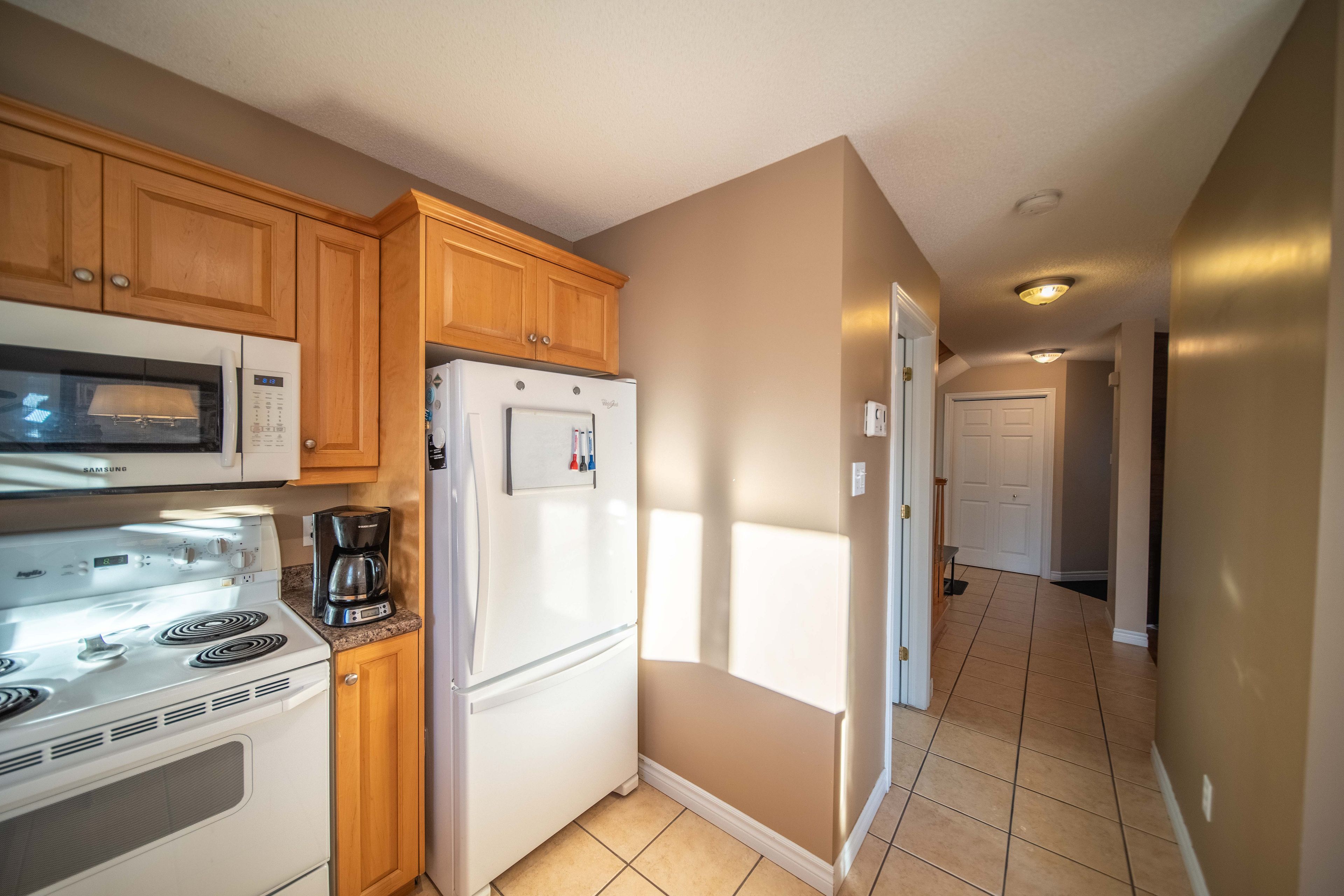 • Convenient kitchen with ample counter and storage space.