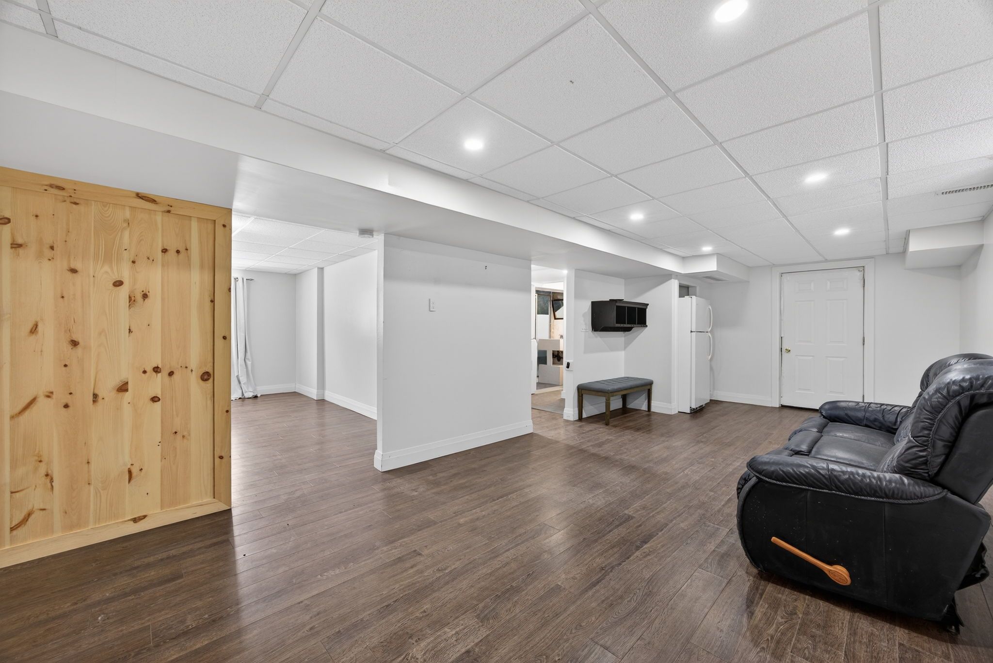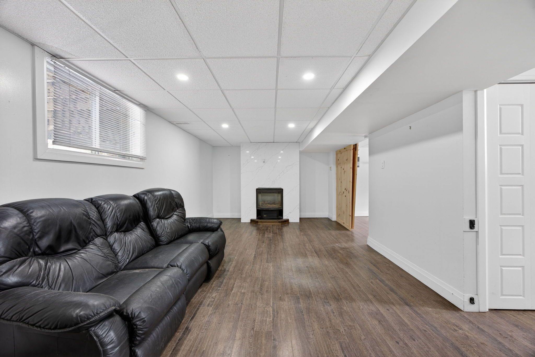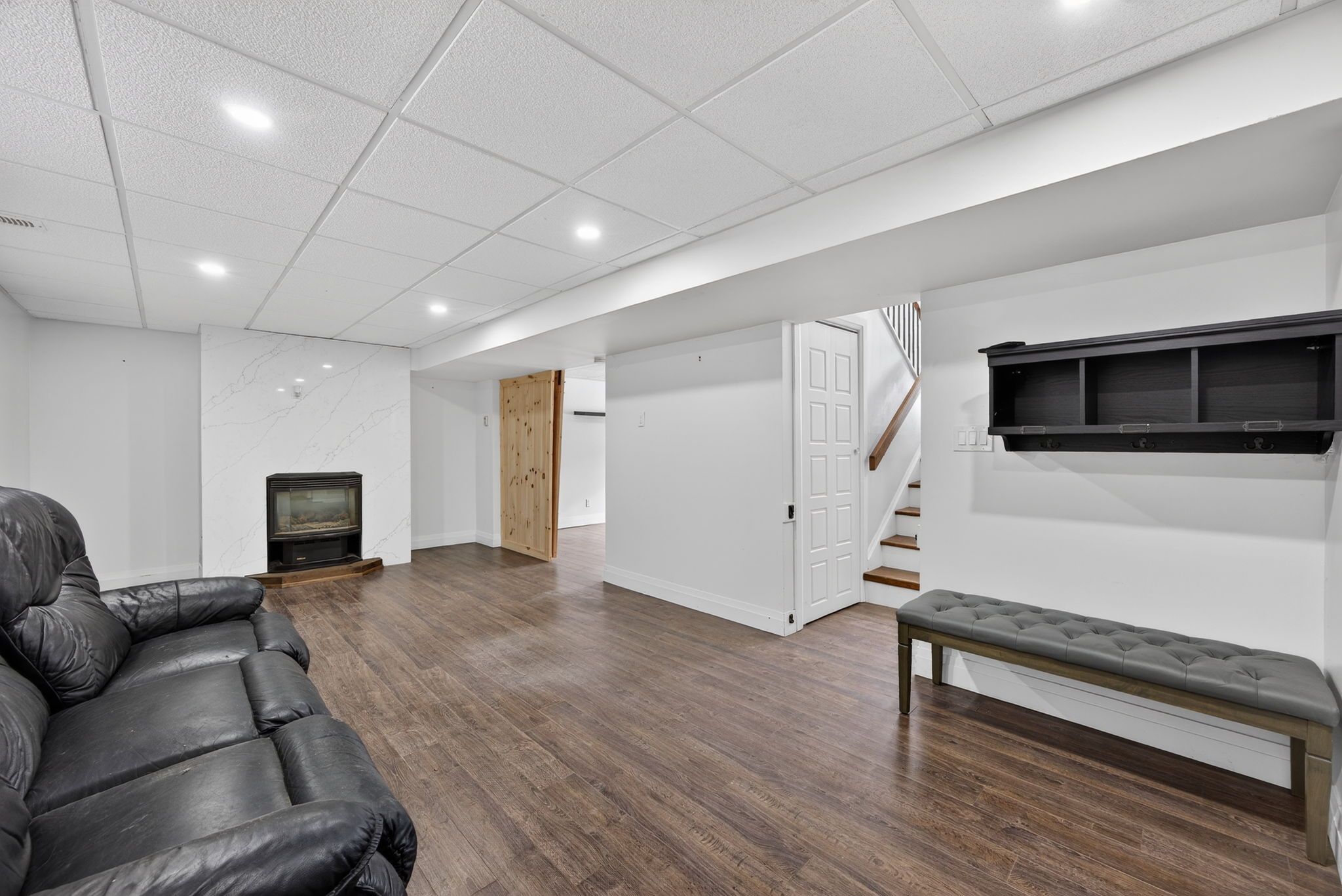 • Finished basement with a rec room, gas fireplace, and extra office space.