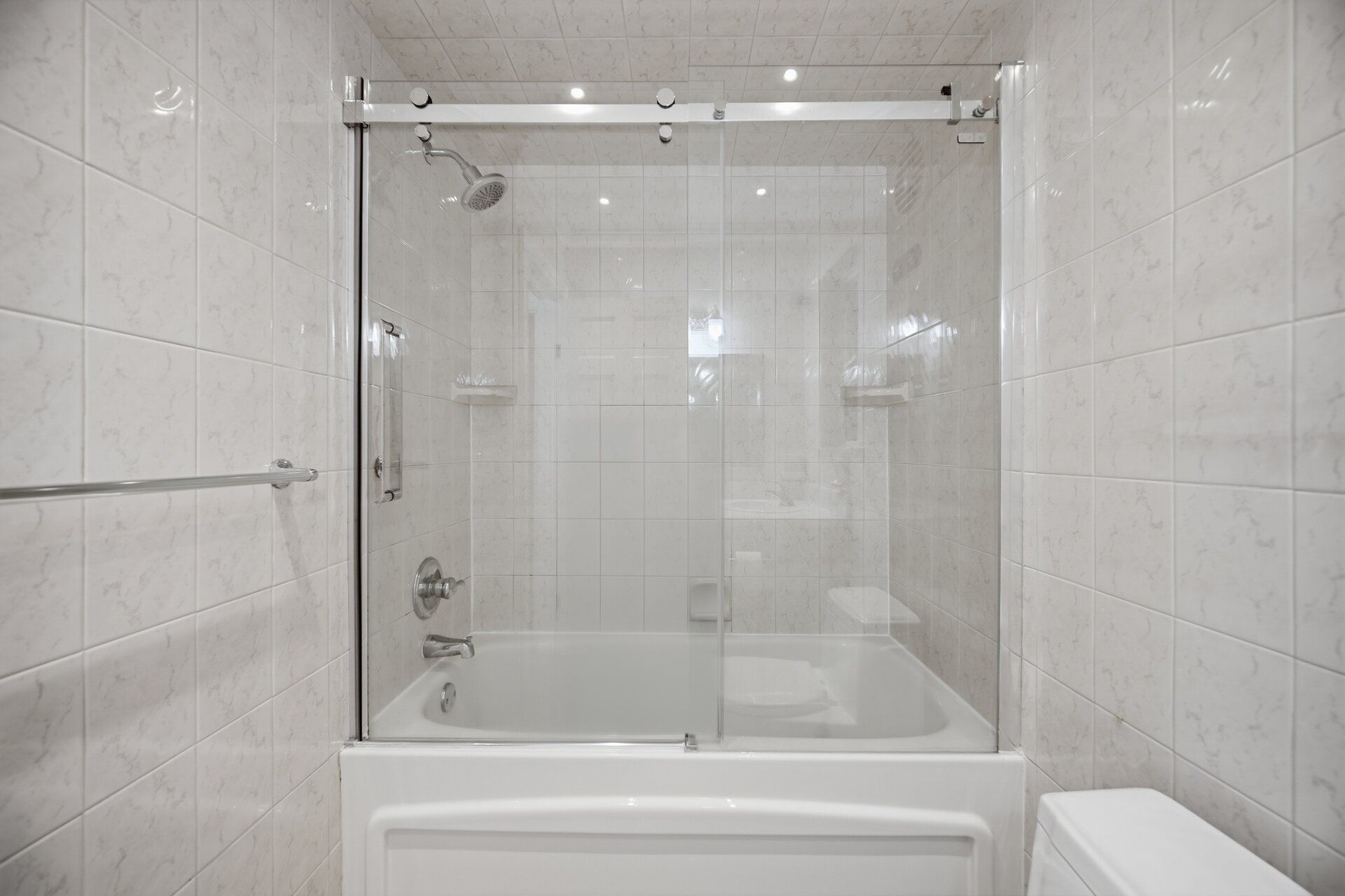 • Private glass-enclosed patio and spacious deck for year-round enjoyment.