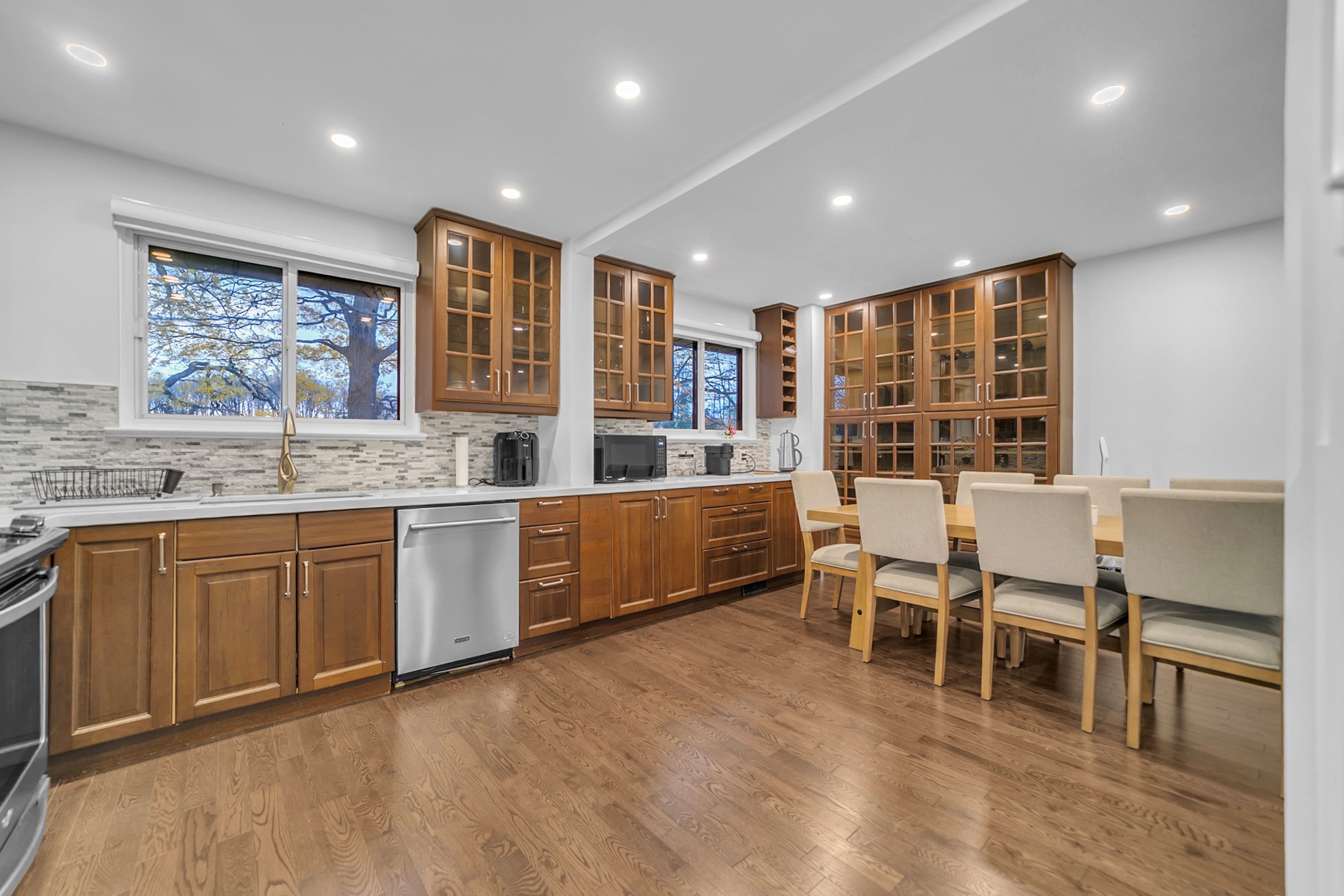 • Bright residence surrounded by mature trees and green space.