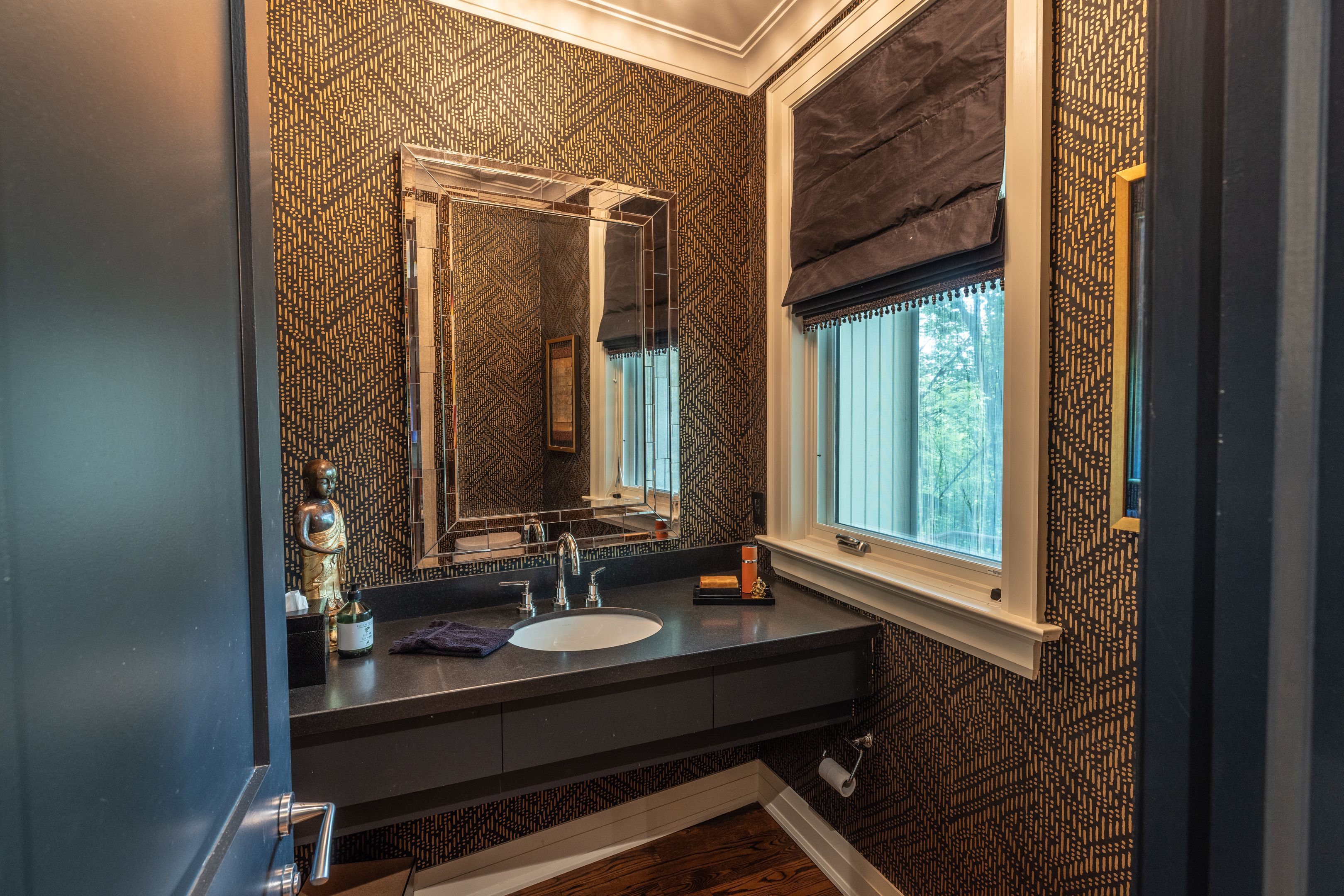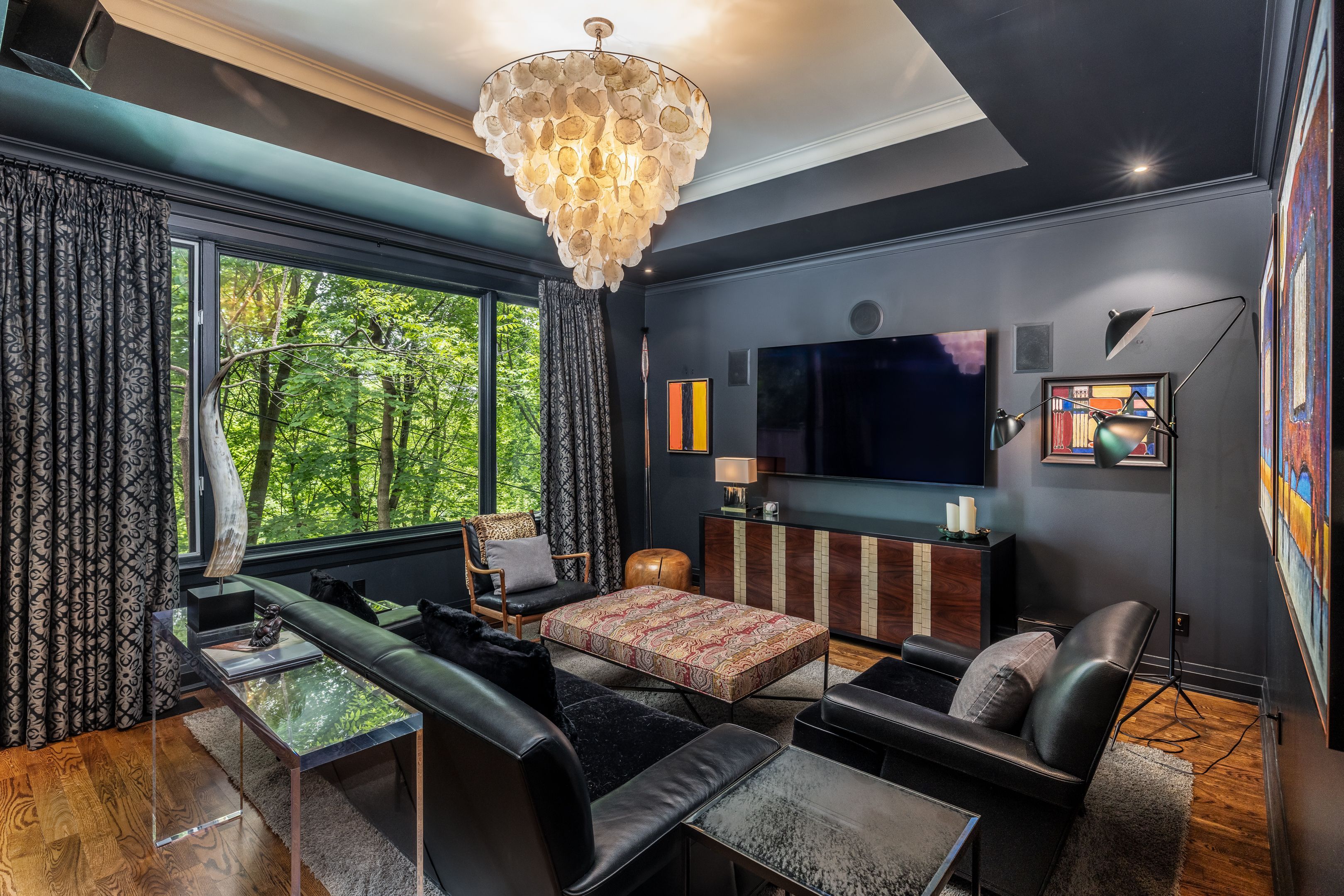 • Stylish home office overlooking the peaceful ravine, perfect for productivity.