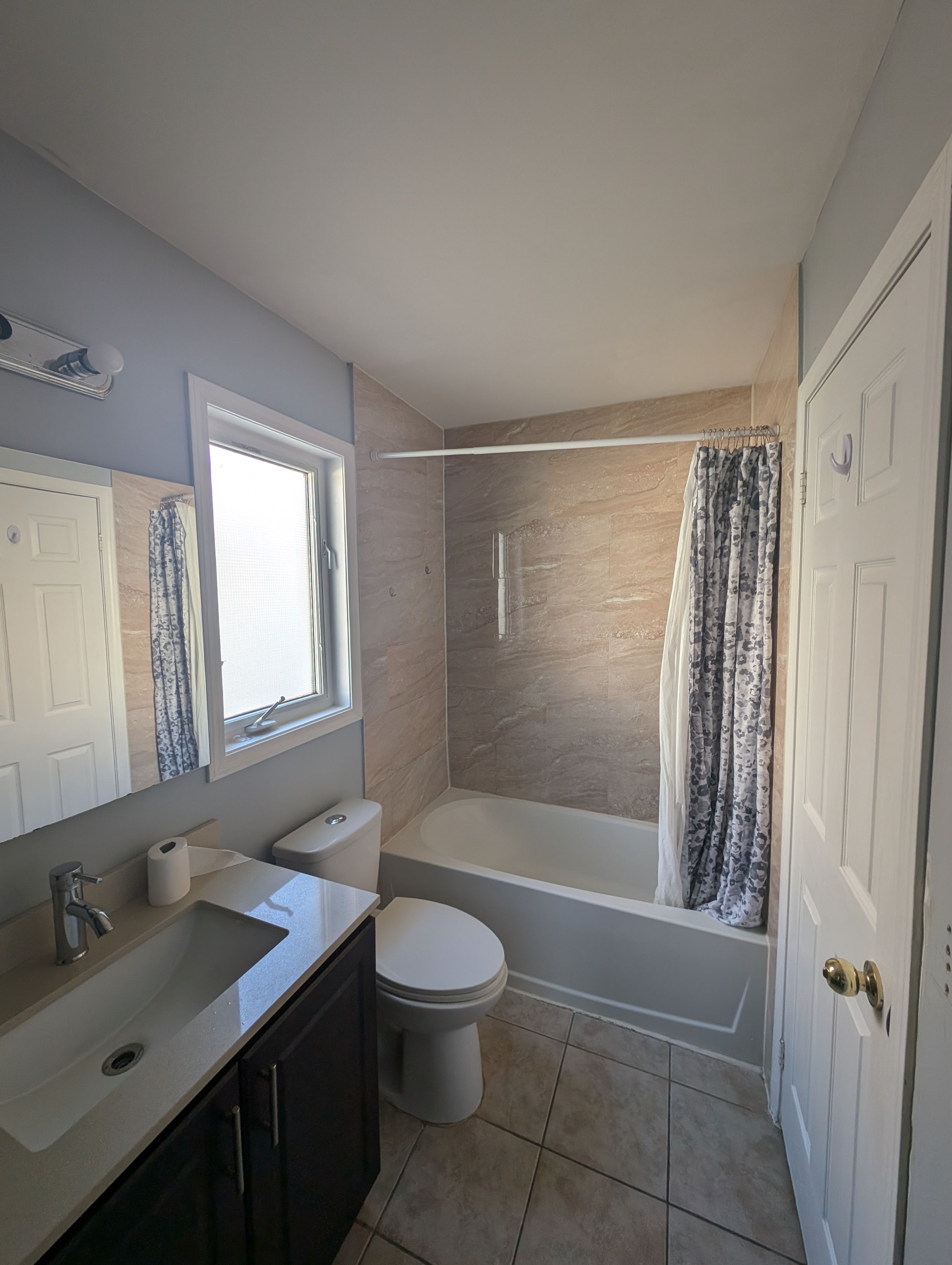 • Bright, spacious upper unit with three bedrooms and two bathrooms.