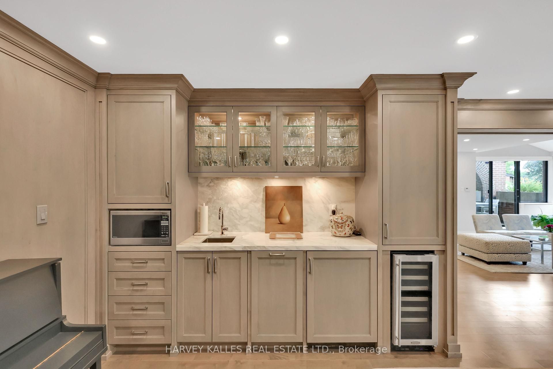 A singular masterpiece at bedford glen. Introducing the most exceptional and expansive residence to grace the coveted bedford glen community - an extraordinary, one-of-a-kind suite offering 2,090 sq ft of single-level living. The seamless combination of two suites, this bespoke home was completely reimagined and rebuilt from the studs up with the highest level of craftsmanship, design, and elegance truly a rare offering in a boutique setting. Every inch of this home speaks to refined taste and meticulous detail: two marble floor foyers, rich hardwood flooring throughout, and a chef's dream kitchen adorned with marble countertops, backsplash, and breakfast bar. Custom cabinetry and built-ins enhance the space with both beauty and function, while exquisite decorative glass and barn doors and marble windowsills elevate the interiors to a level rarely seen. The gracious family room features a marble surround fireplace, a full servery with a second fridge, wine fridge, and dishwasher- perfect for elegant entertaining. A marble desk in the home office, heated floors and towel racks in the ensuite add indulgent comfort. Thoughtfully curated accoutrements abound, each one contributing to the unmatched sophistication and comfort of this residence. Complete with three balconies, two parking spaces and two lockers, this suite is nestled within a quiet cul-de-sac, overlooking a private ravine with manicured gardens, a footbridge, waterfall and fish pond - an exclusive oasis for residents alone. With an impeccably managed building, robust reserve fund, and all-inclusive maintenance fees, this is the rarest of the opportunities to own the crown jewel of bedford glen.