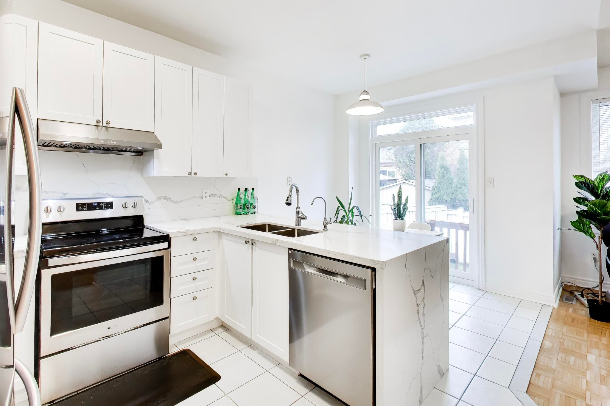 • Kitchen features stainless steel appliances and a bright breakfast area.