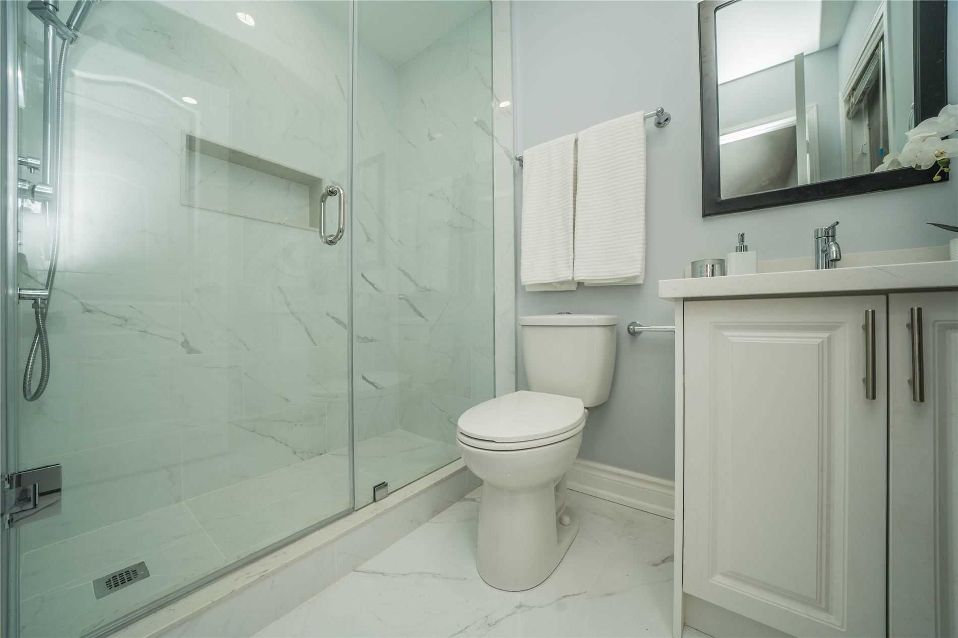 • Luxurious master bedroom with walk-in closet and ensuite bathroom.
