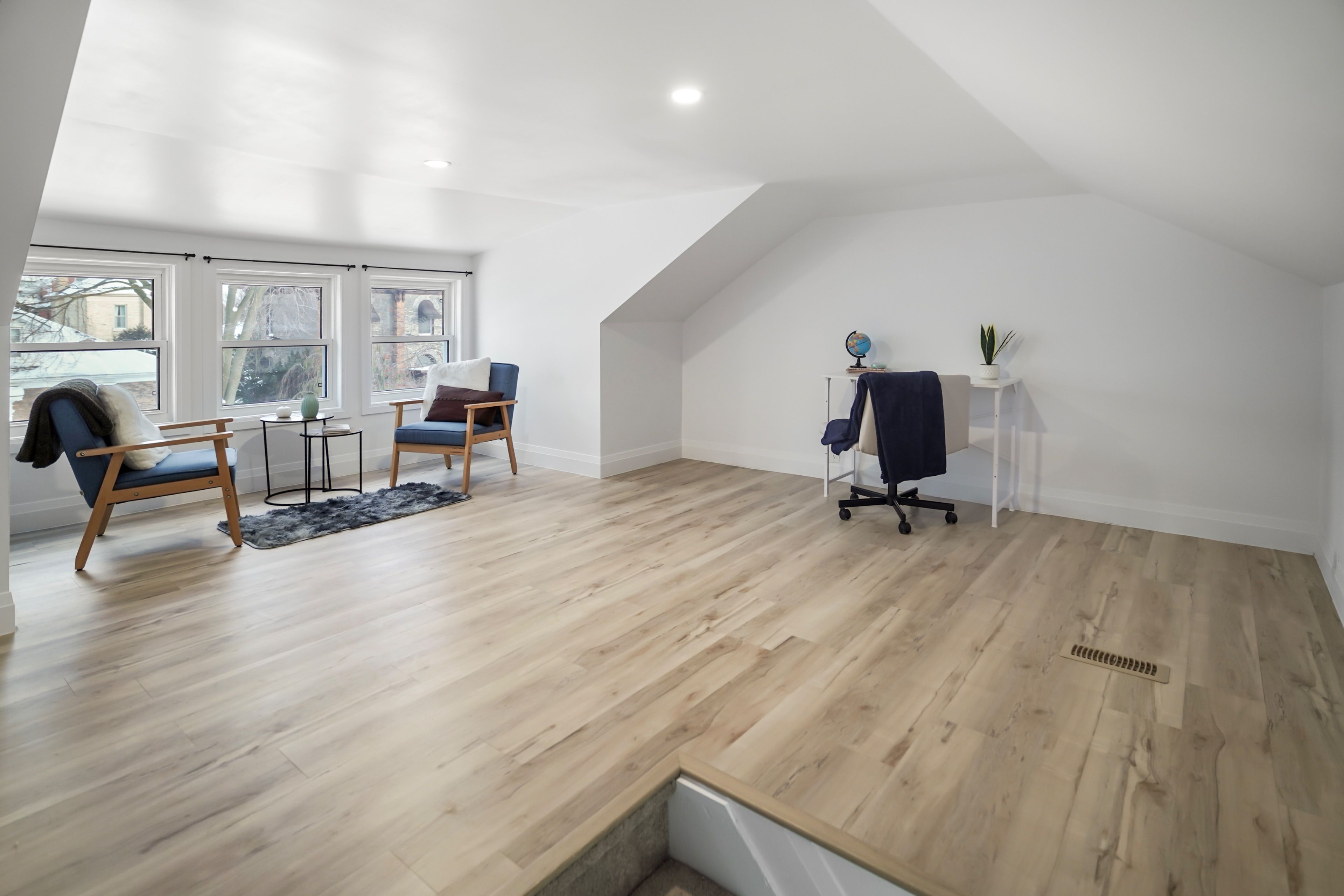 • Bright loft area with front-facing windows, perfect for relaxation or studio.