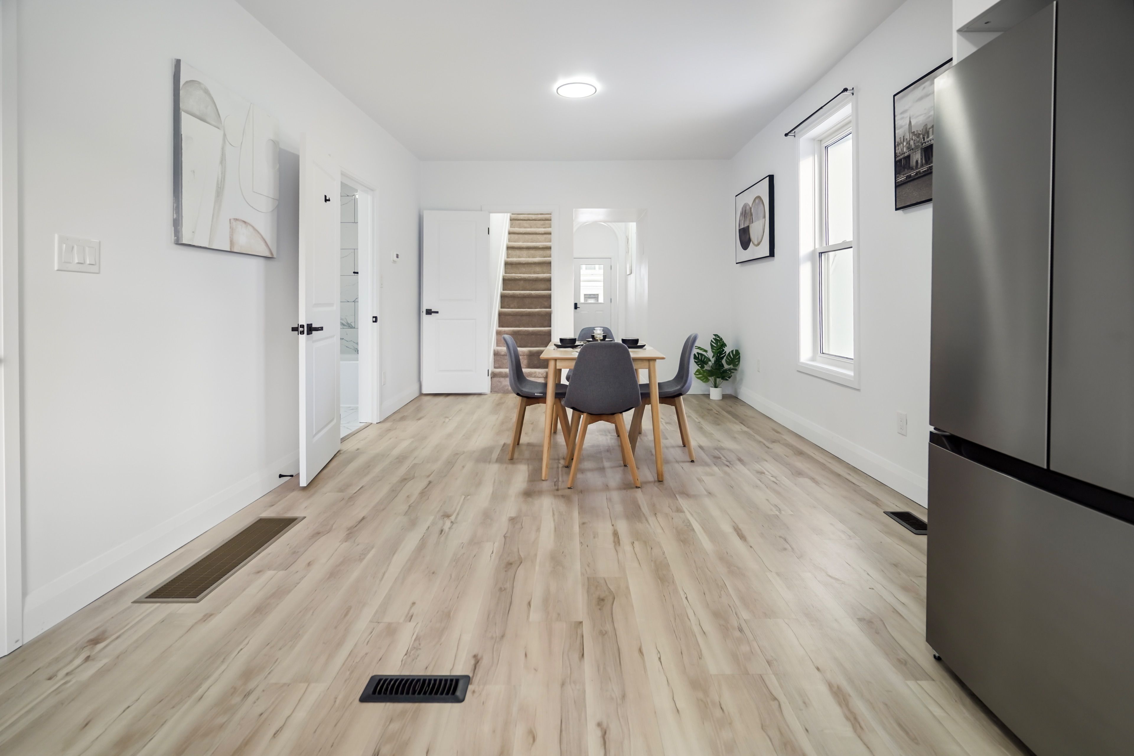 • Flexible main floor with four rooms for various uses and lifestyles.