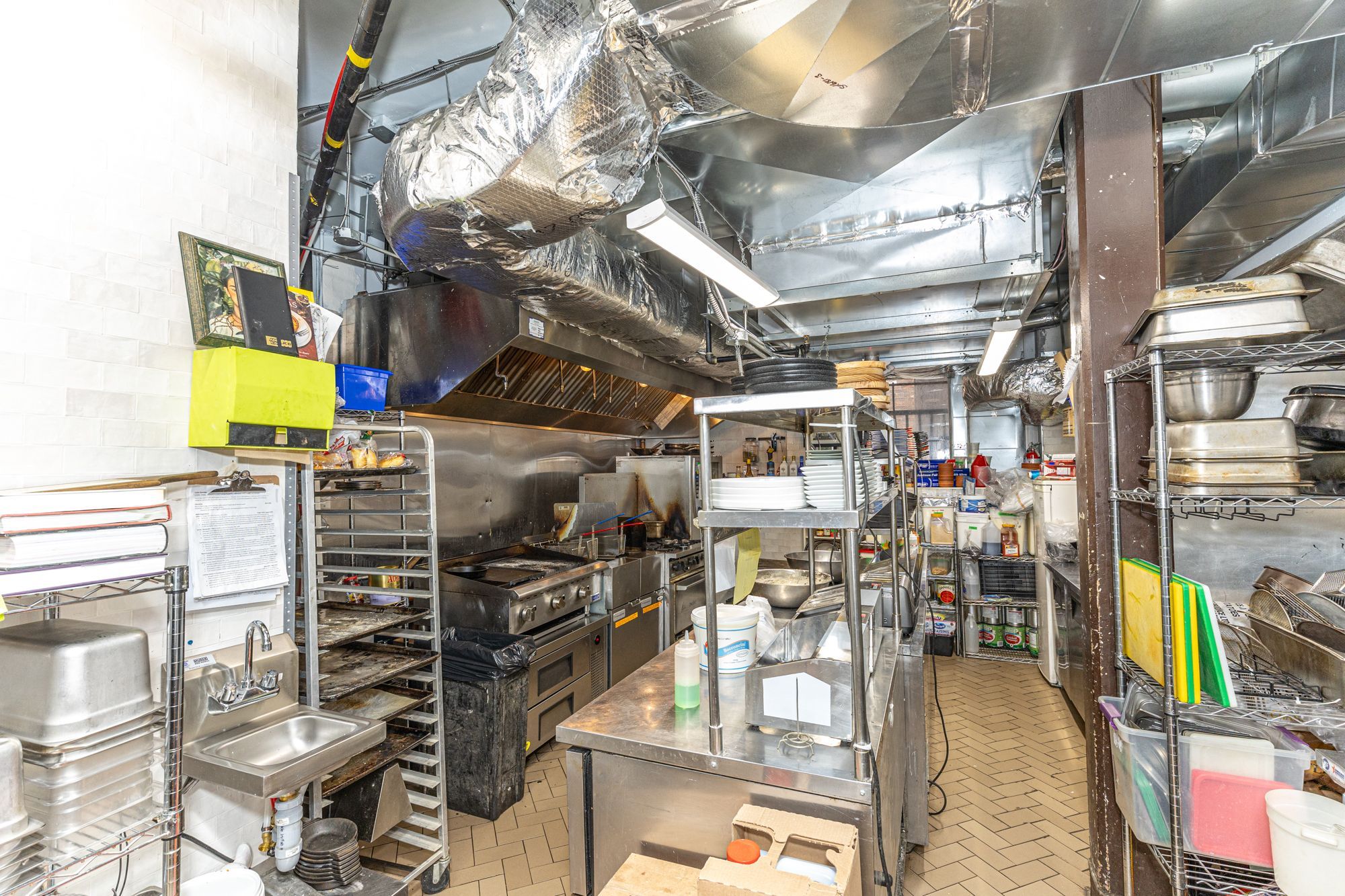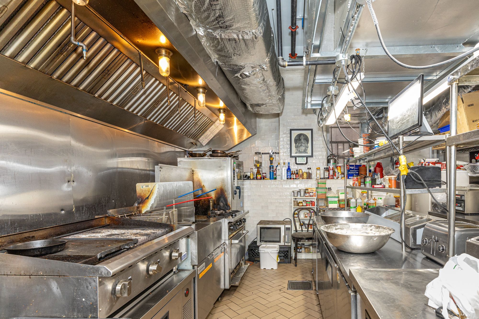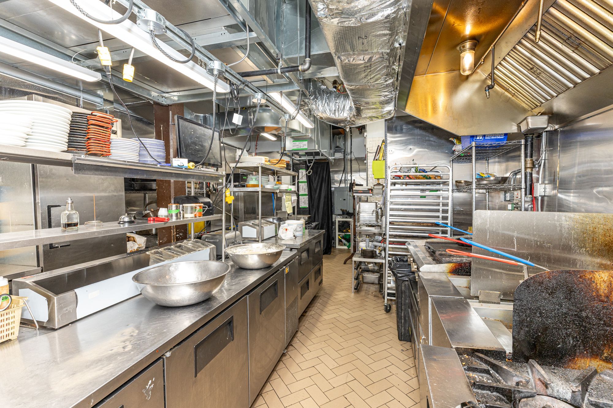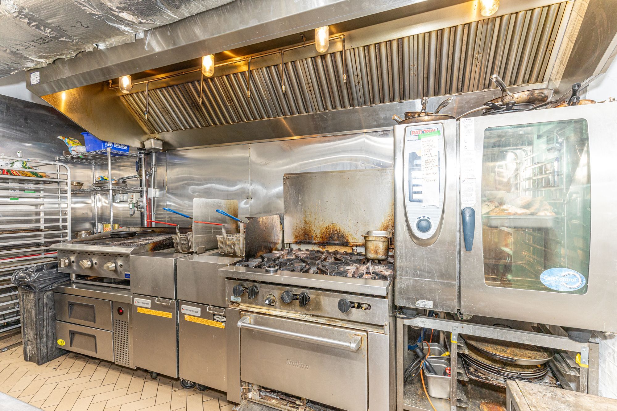 • Fully equipped kitchen with gas range and walk-in cooler included.