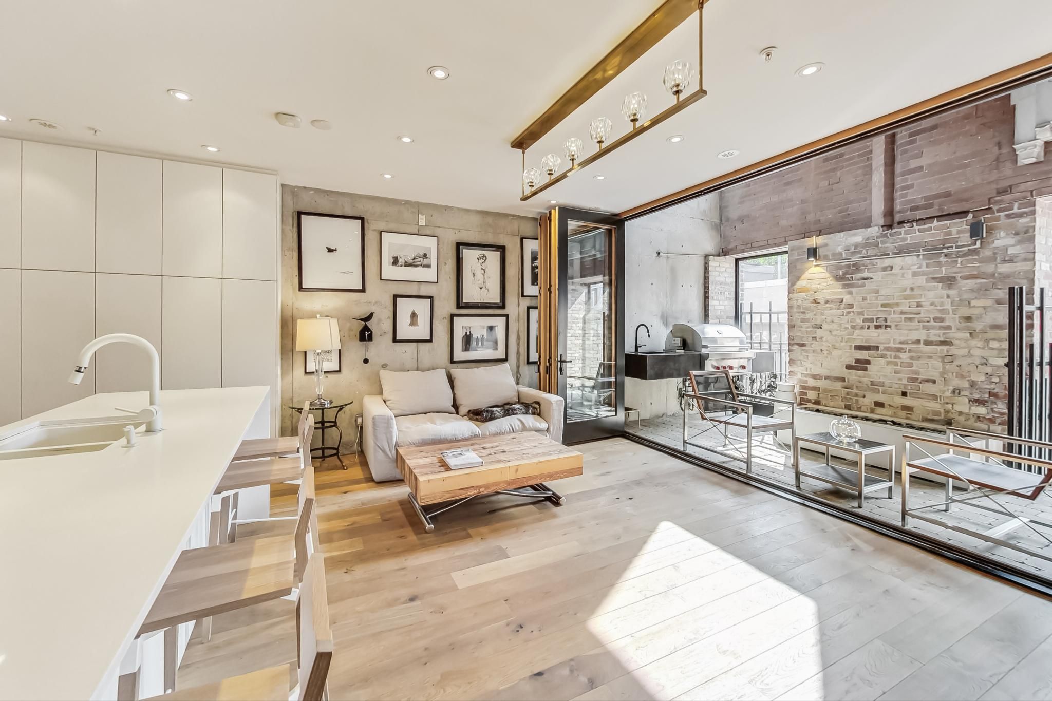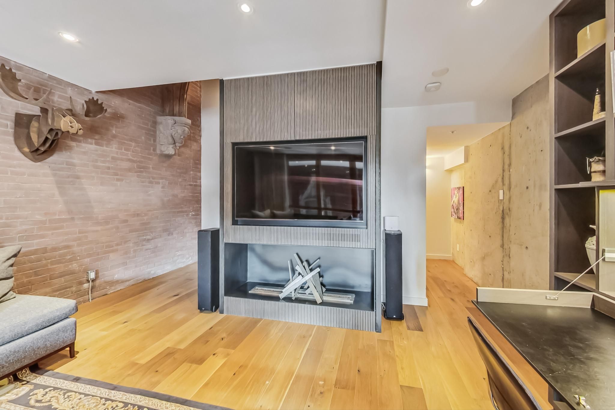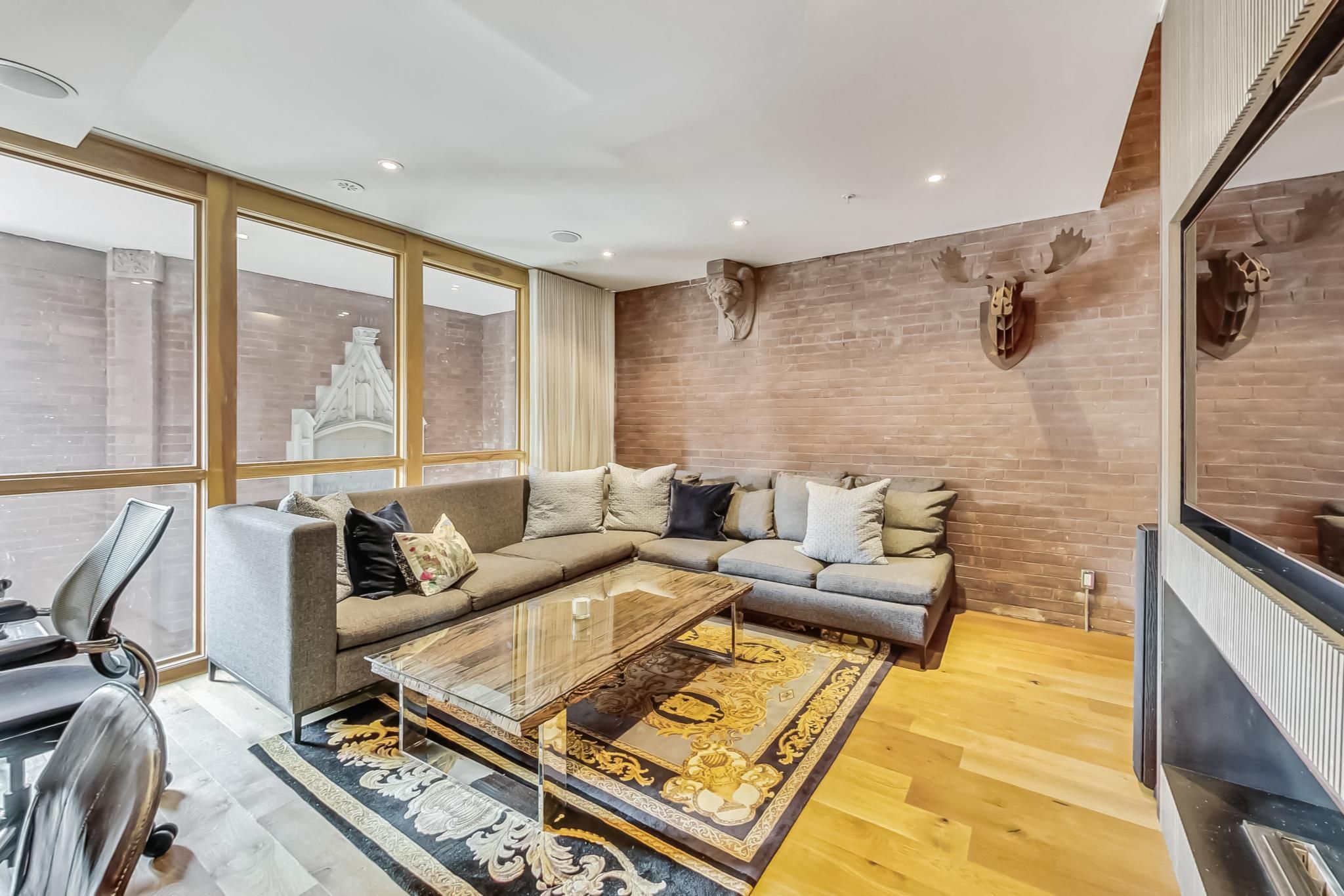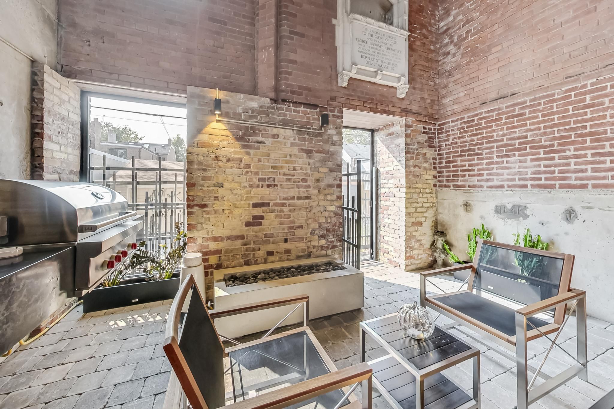 A rare offering in a landmark setting. Welcome to this extraordinary 2-bedroom, 3-bathroom townhouse an architectural masterpiece nestled within a converted 1914 neo-gothic church. Spread across four thoughtfully designed levels, this residence seamlessly combines historic character with refined modern living. Step inside and be captivated by soaring cathedral ceilings, original stone detailing, and expansive glass windows that bathe the interior in natural light. The open-concept main floor is a showstopper, featuring a chef-inspired kitchen complete with a sub-zero fridge and wine cooler, quartz countertops, gas stove, and custom cabinetry all set against a backdrop of preserved architectural elements. Enjoy seamless indoor-outdoor living with dramatic wall-to-wall folding doors leading to a covered patio outfitted with a stainless steel wolf bbq and gas fireplace perfect for entertaining or unwinding in style. The second level offers a beautifully integrated custom office, entertainment unit, and fireplace surrounded by rich wood finishes and bespoke built-ins, creating an inviting and functional living space. Upstairs, both bedrooms offer private retreats, each with a spa-like ensuite showcasing modern fixtures, marble accents, and walk-in showers. The primary suite is a true sanctuary, highlighted by vaulted ceilings and exposed beams that pay homage to the homes storied past. Additional features include heated floors, smart home technology, and private underground parking with a storage locker all the comforts of modern luxury within a one-of-a-kind historic setting. Offering a rare fusion of timeless elegance and sophisticated design, this remarkable townhouse invites you to own a piece of architectural history. Over $50,000 in premium upgrades, including a statement restoration hardware chandelier in the kitchen, custom built-in bookshelves with integrated office space, expansive custom closet cabinetry in both bedrooms, and a sleek outdoor gas fireplace