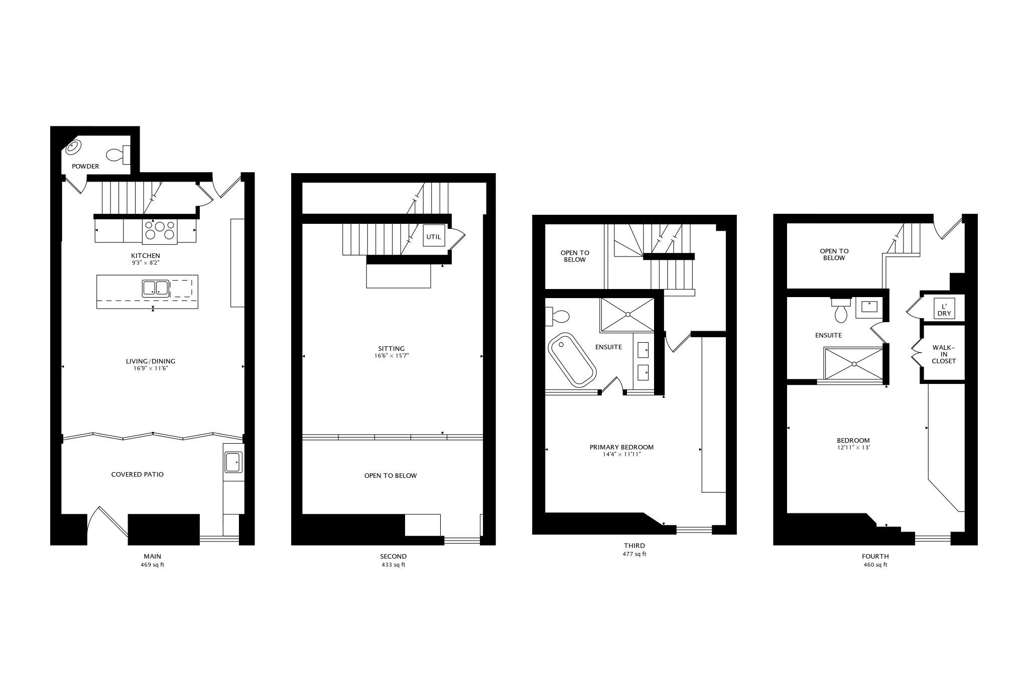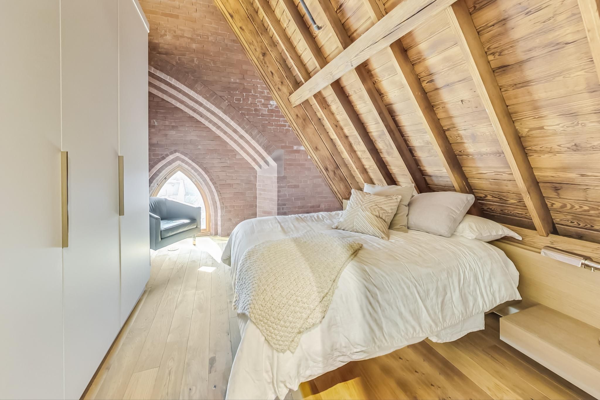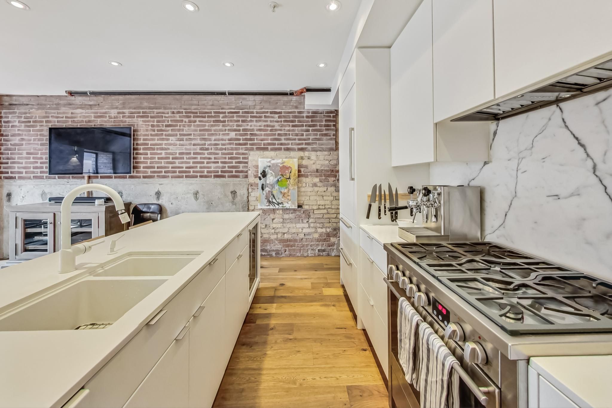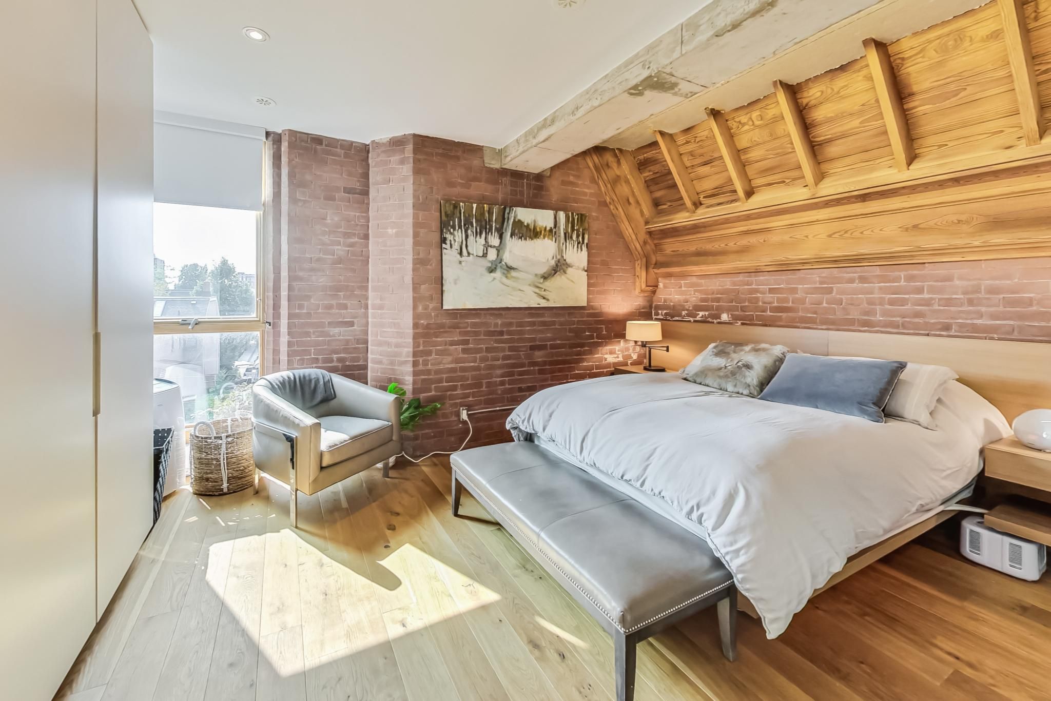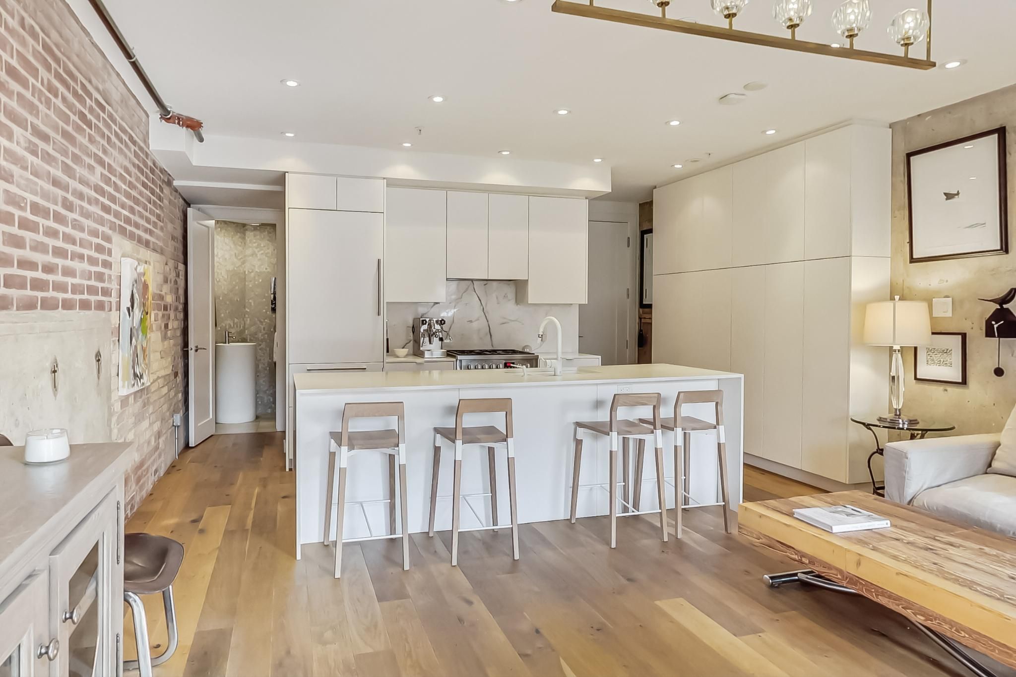 A rare offering in a landmark setting. Welcome to this extraordinary 2-bedroom, 3-bathroom townhouse an architectural masterpiece nestled within a converted 1914 neo-gothic church. Spread across four thoughtfully designed levels, this residence seamlessly combines historic character with refined modern living. Step inside and be captivated by soaring cathedral ceilings, original stone detailing, and expansive glass windows that bathe the interior in natural light. The open-concept main floor is a showstopper, featuring a chef-inspired kitchen complete with a sub-zero fridge and wine cooler, quartz countertops, gas stove, and custom cabinetry all set against a backdrop of preserved architectural elements. Enjoy seamless indoor-outdoor living with dramatic wall-to-wall folding doors leading to a covered patio outfitted with a stainless steel wolf bbq and gas fireplace perfect for entertaining or unwinding in style. The second level offers a beautifully integrated custom office, entertainment unit, and fireplace surrounded by rich wood finishes and bespoke built-ins, creating an inviting and functional living space. Upstairs, both bedrooms offer private retreats, each with a spa-like ensuite showcasing modern fixtures, marble accents, and walk-in showers. The primary suite is a true sanctuary, highlighted by vaulted ceilings and exposed beams that pay homage to the homes storied past. Additional features include heated floors, smart home technology, and private underground parking with a storage locker all the comforts of modern luxury within a one-of-a-kind historic setting. Offering a rare fusion of timeless elegance and sophisticated design, this remarkable townhouse invites you to own a piece of architectural history. Over $50,000 in premium upgrades, including a statement restoration hardware chandelier in the kitchen, custom built-in bookshelves with integrated office space, expansive custom closet cabinetry in both bedrooms, and a sleek outdoor gas fireplace