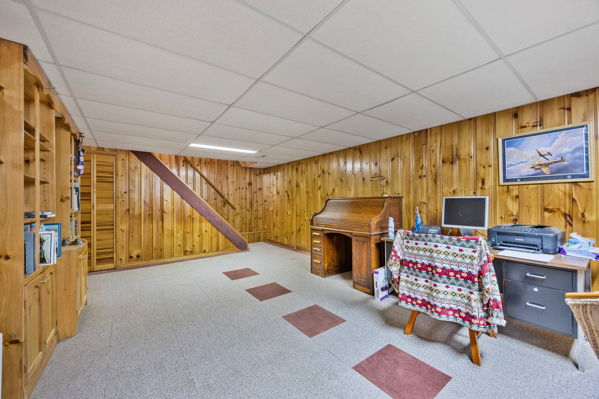 • Finished lower-level recreation room perfect for family activities.