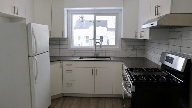 • Modern kitchen features new cabinets, quartz countertops, and elegant backsplash.