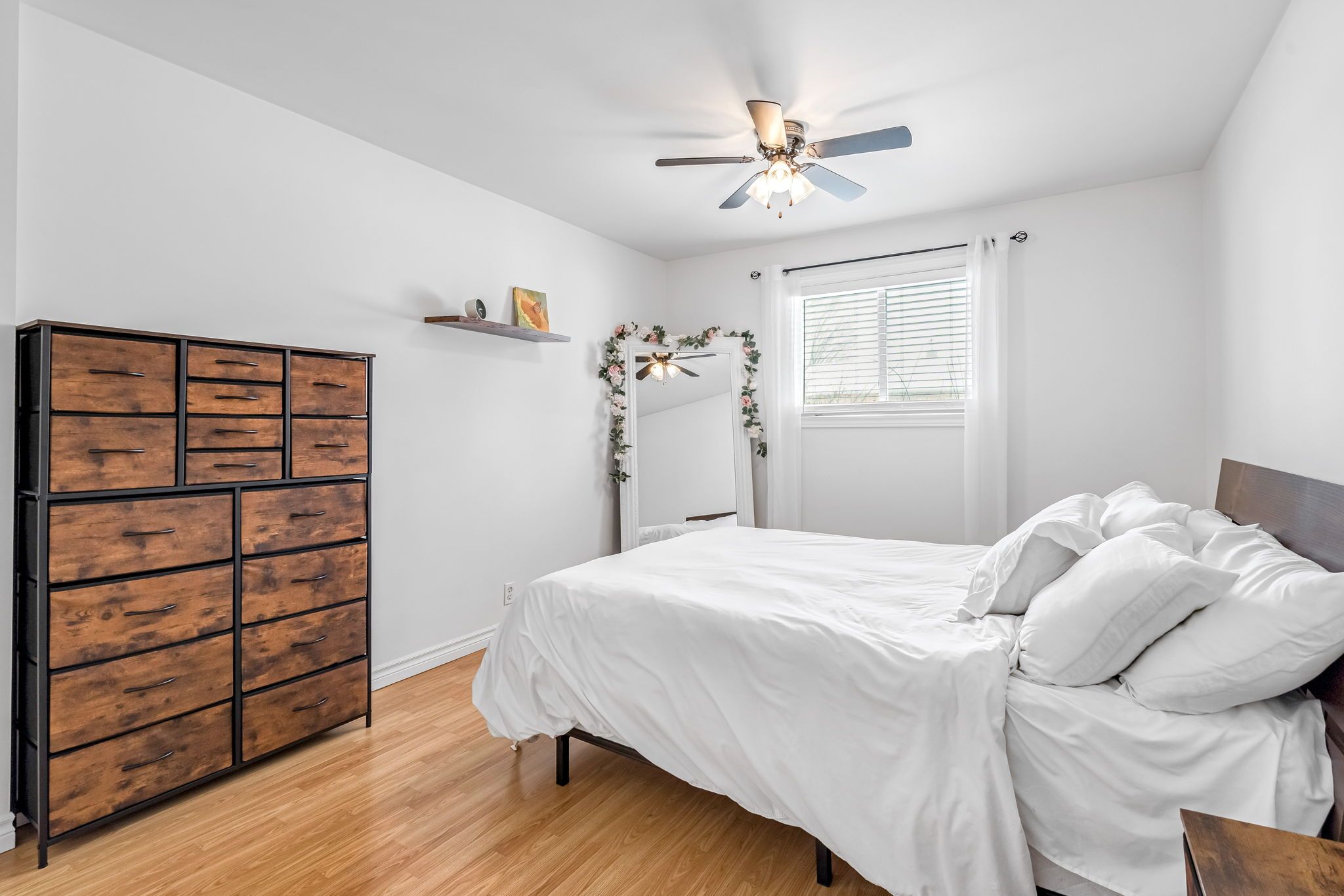 • Backyard offers tranquil views and ample gardening space.