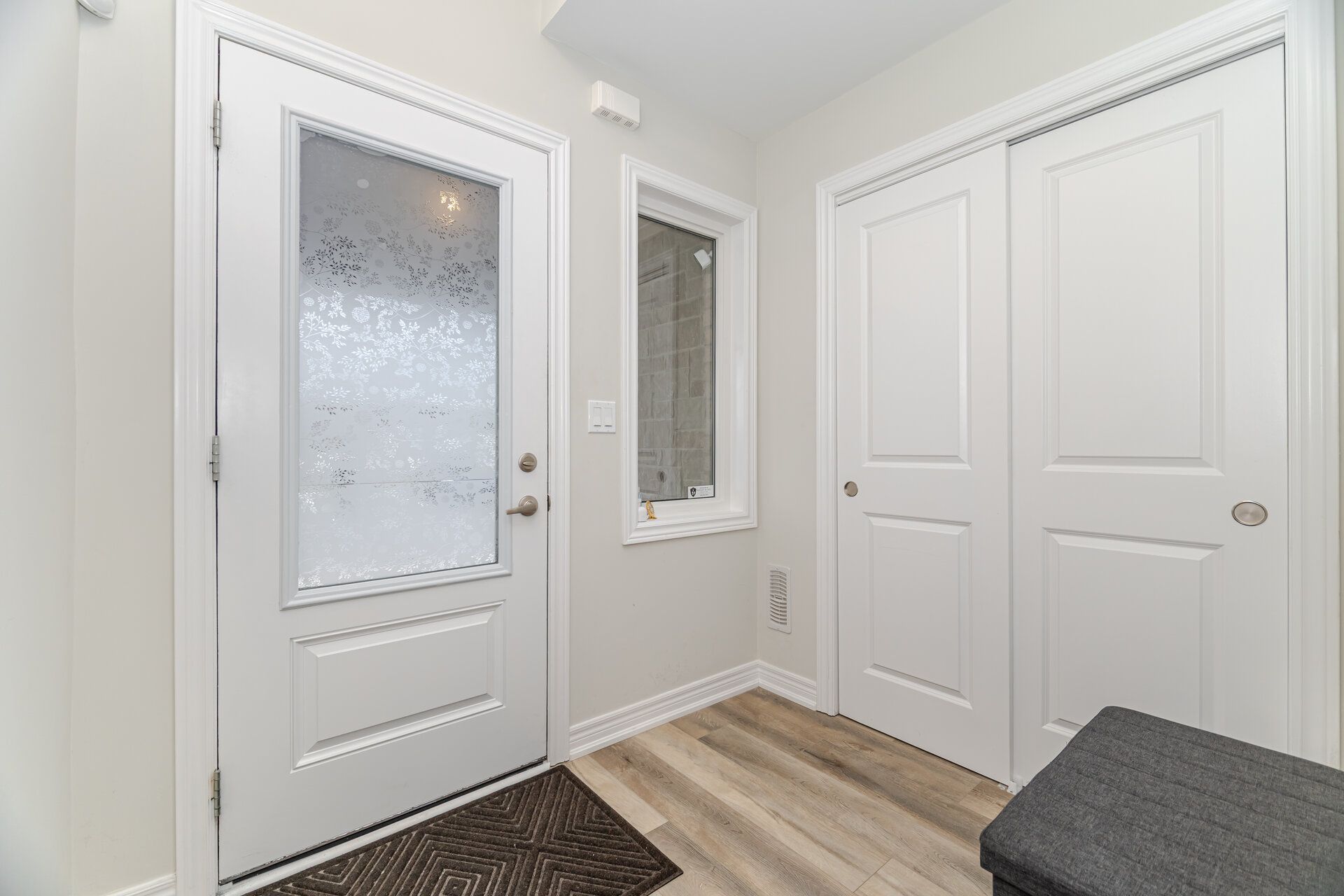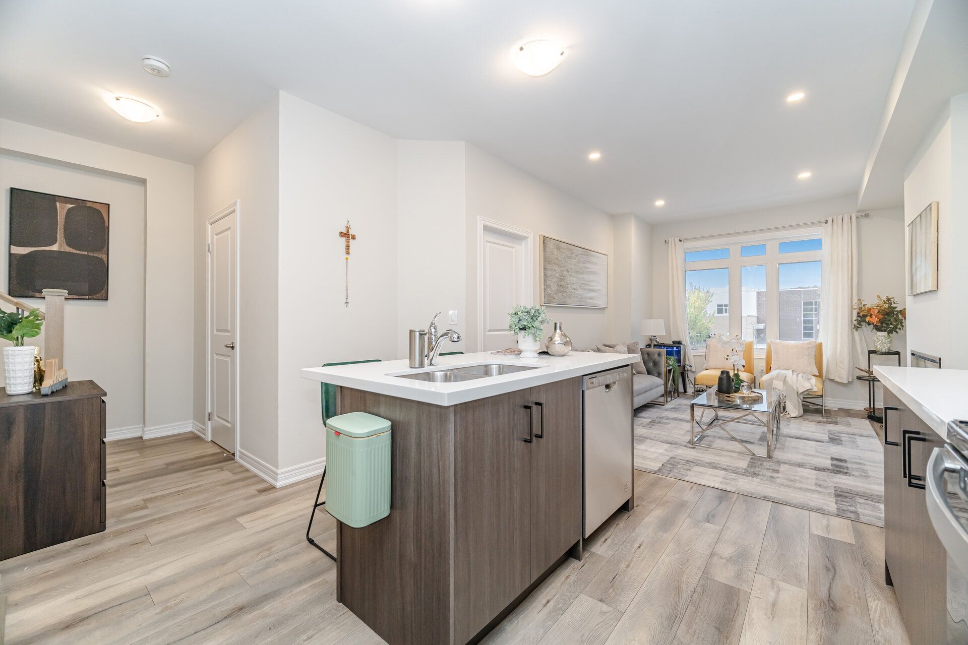 Modern living at its finest! This stylish 3-bedroom, 2. 5-bath townhome by dicenzo homes offers a functional layout with designer finishes throughout. The bright, open-concept main floor features quartz countertops, upgraded kitchen cabinetry, vinyl plank flooring, and a cozy fireplace-perfect for everyday living and entertaining. A main-floor bedroom provides excellent flexibility for guests, a home office, or multi-generational living. The spacious primary bedroom boasts his and hers closets and a private 3-piece ensuite. Additional highlights include a central vacuum system, convenient parking with a 1-car garage plus driveway space, and a truly move-in-ready condition. Enjoy breathtaking views of the niagara escarpment, along with easy access to highways, schools, parks, waterfront, trails, and shopping amenities. Ideal for families, professionals, or investors alike!