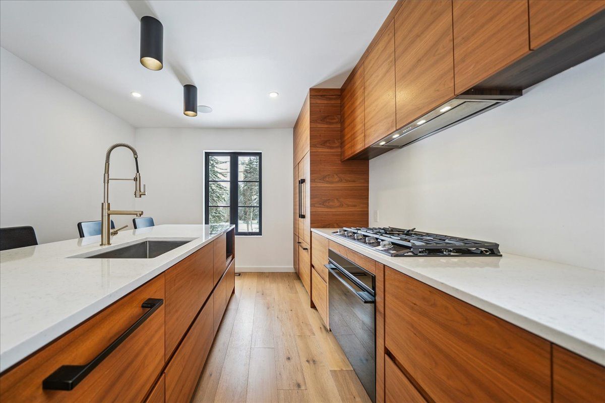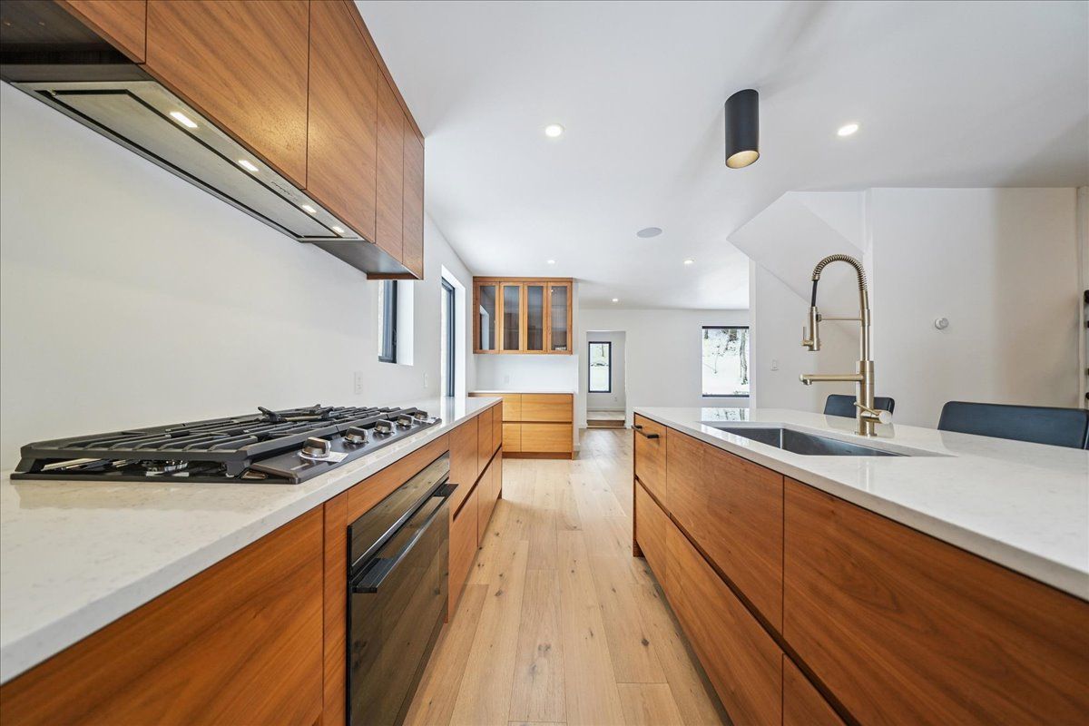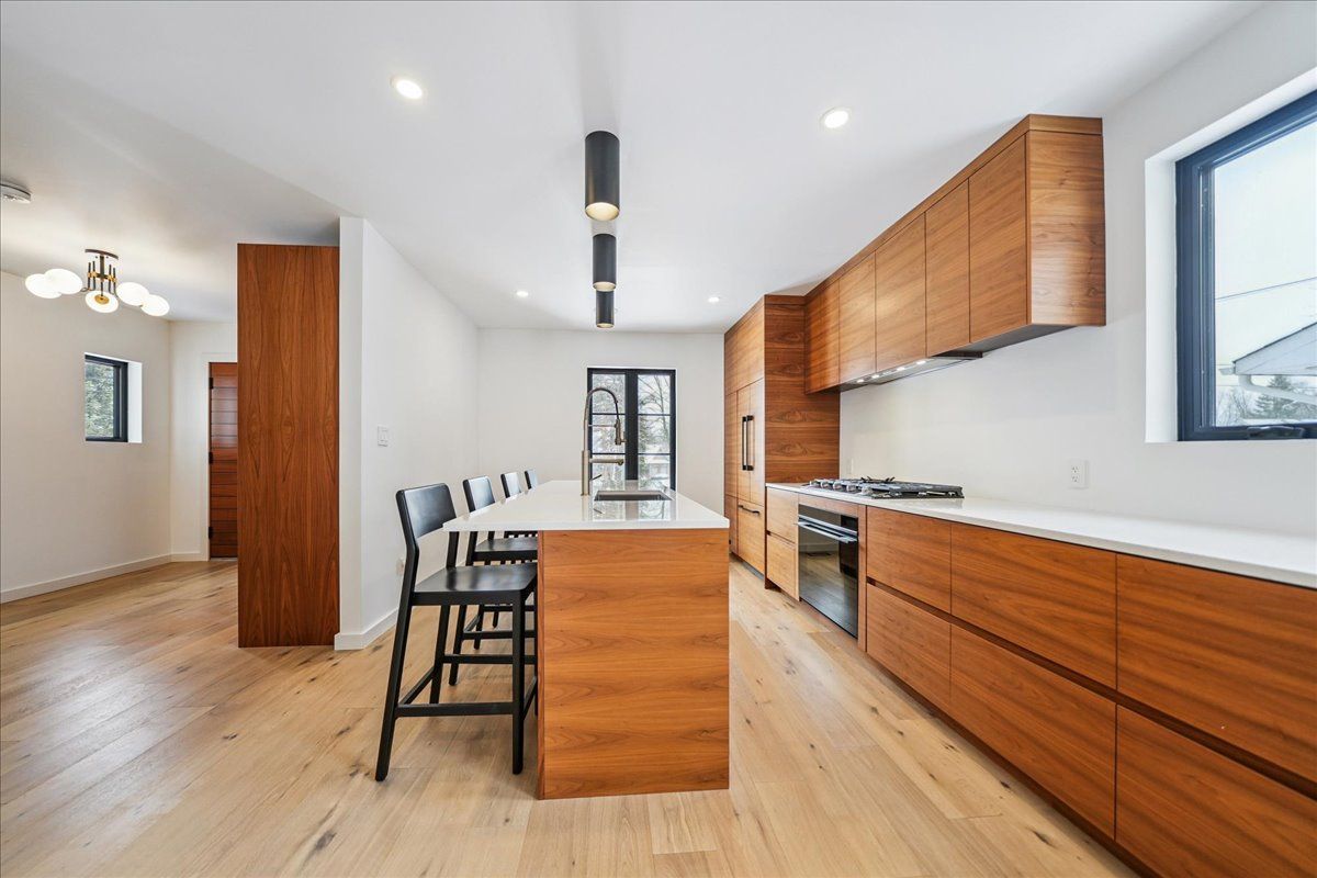 • Custom kitchen with premium appliances and quartz countertops.