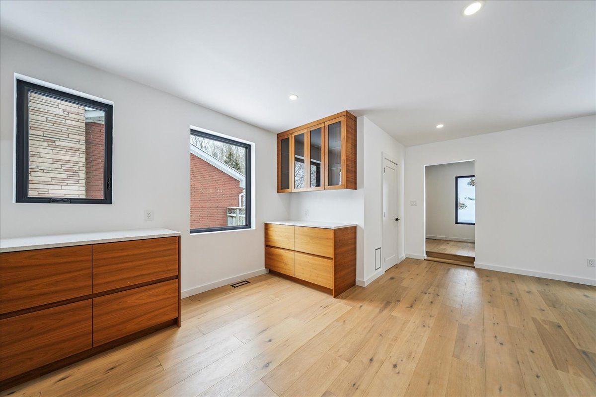 Welcome to a home where every detail has been reimagined to create a seamless blend of luxury and comfort, the entire residence has been recently renovated to the highest standard. The stunning exterior, a sophisticated blend of stone and natural wood, sets the stage for the high-end custom finishes waiting inside. Step through the solid wood front door to find new white oak engineered hardwood flooring and custom windows that bathe the open living spaces in light. The heart of the home is a chef's dream, featuring a custom kitchen by exquisite wood designs with quartz countertops and a premium appliance package, including an integrated fisher & paykel fridge and a brand new samsung gas cooktop. Whether you're relaxing by the new gas fireplace or enjoying the integrated sonos sound system, every inch of this 3 bedroom, 2. 5 bathroom floor plan feels like a luxury retreat. The primary suite is a true sanctuary, featuring totally customized wardrobes with interior lighting and direct access to elevated outdoor living. You can walk right out from the bedroom to a spacious private balcony, offering a sleek new glass railing and serene views facing the escarpment. Beyond the aesthetics, this home offers absolute peace of mind with a new furnace, ac, hot water tank, and completely updated electrical and plumbing systems. Outside, the upgrades continue with a newly poured concrete front porch (2025), an interlocking stone back patio, and professional landscaping. Complete with a tandem 2 car garage and smart-switch lighting throughout, this property combines modern tech with timeless style. This rare gem offers the perfect balance of sophisticated design and worry-free living in a truly spectacular setting.