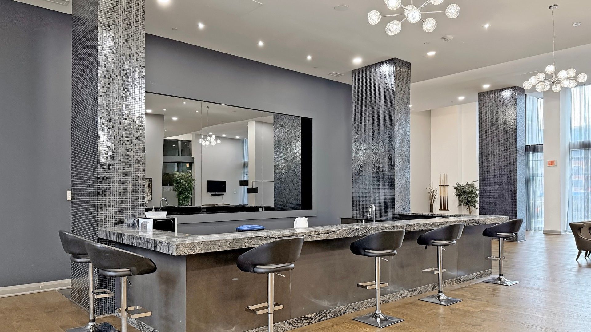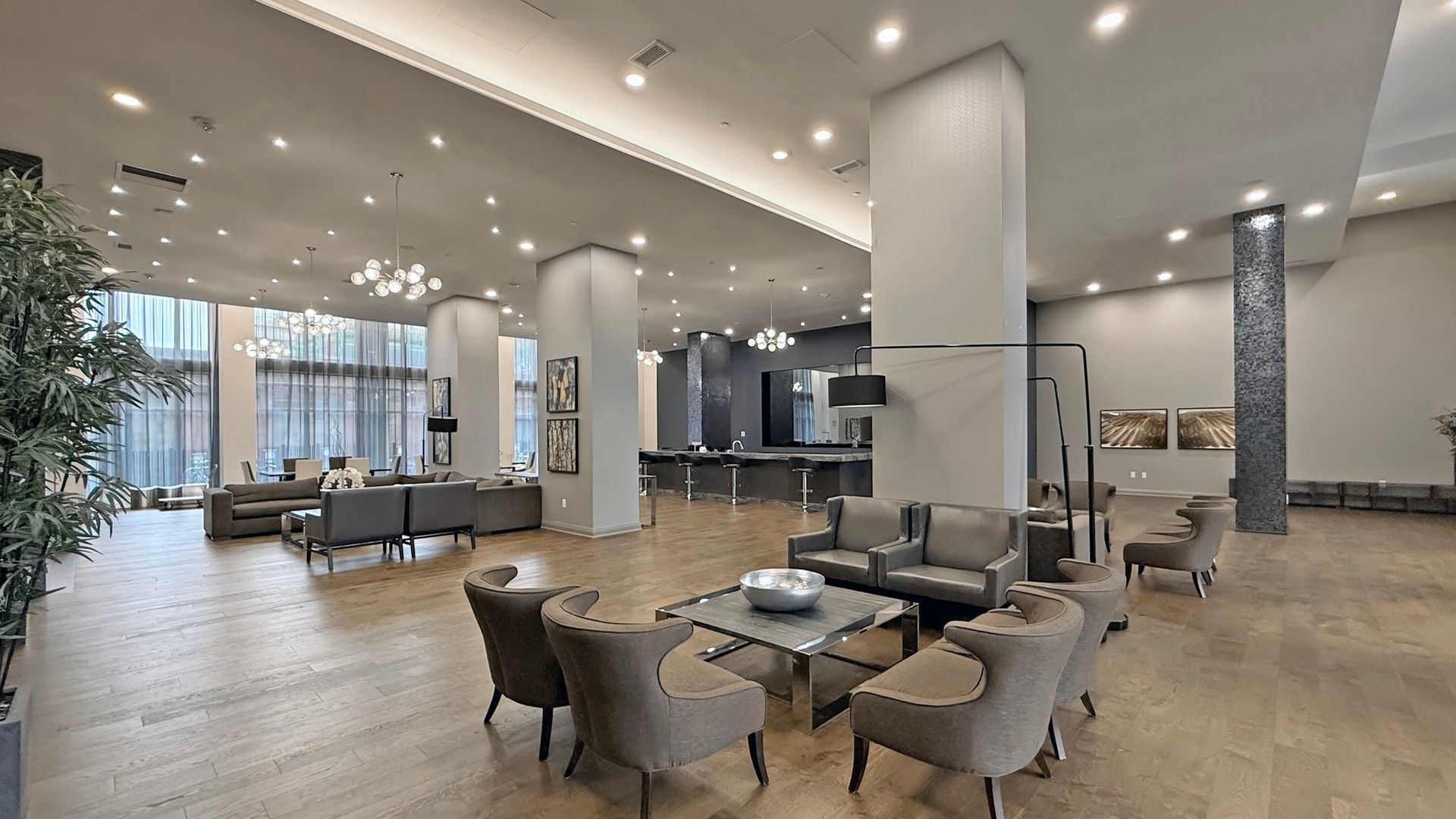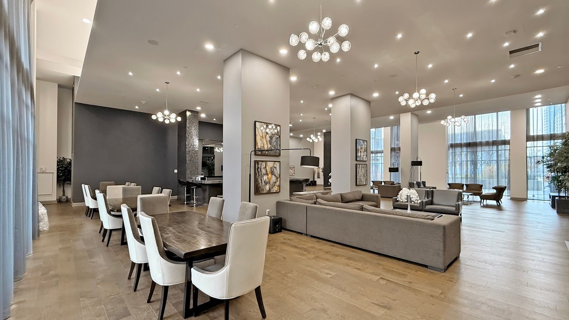 • Floor-to-ceiling windows providing plenty of natural light.