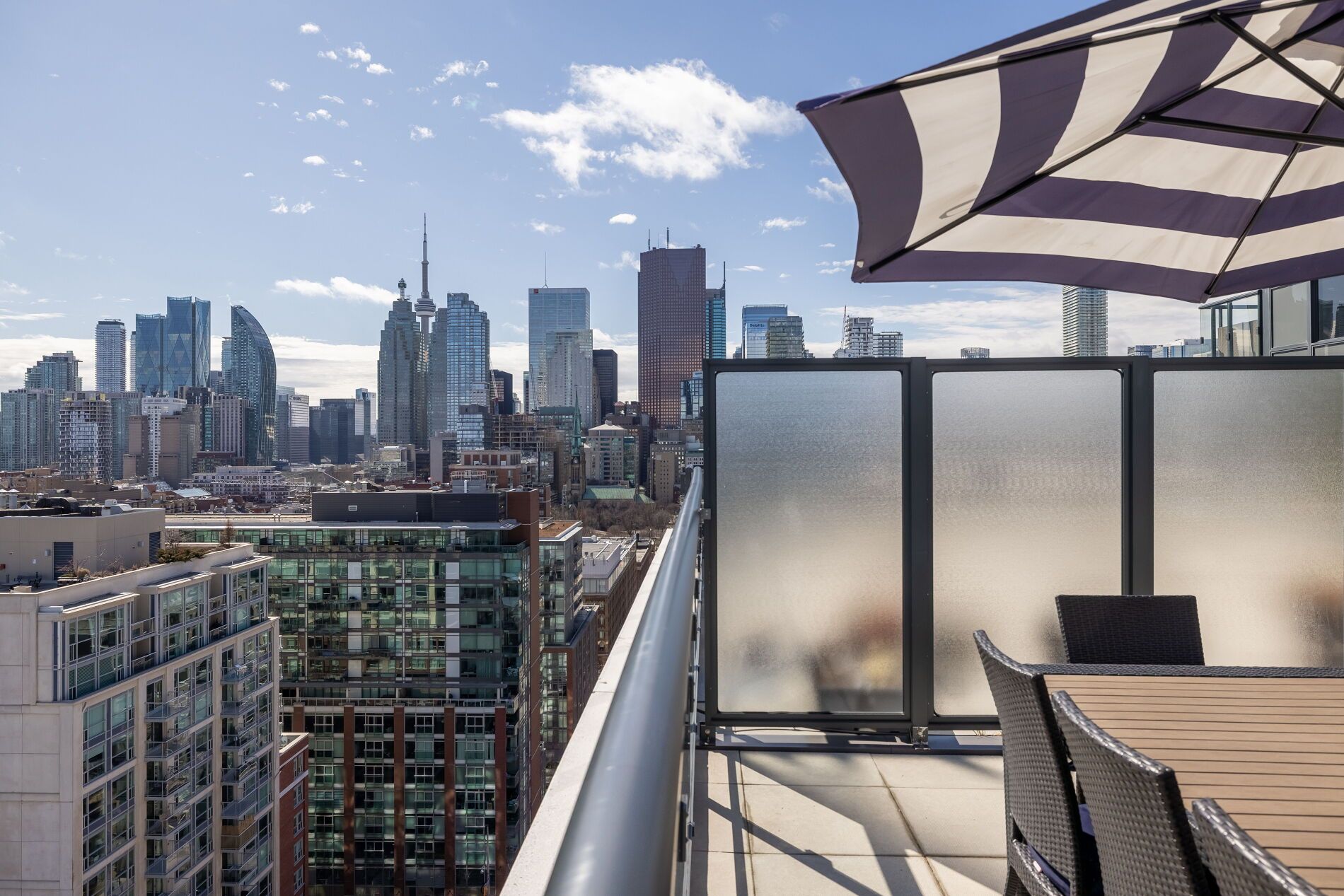 Welcome to the 400 adelaide penthouse collection, this stunning condo that feels more like a home, with 9 foot ceilings featuring crown moulding and a lavish 700 sqft. Outdoor terrace! Discover the allure of ivory on adelaide, old town toronto's hidden gem! This stunning penthouse boasts over 2,100 square feet of luxurious interior and exterior space, featuring an exclusive, massive south-facing terrace and two additional spacious balconies that wrap around the property. Bask in the sunlight that floods your beautiful eat-in kitchen, complete with sleek quartz countertops, abundant storage, and stainless steel appliances all over looking a large living and dining area with breathtaking views of the lake. The extraordinary primary bedroom is a true retreat, featuring a walk-in closet, access to a private balcony, and a lavish ensuite bathroom equipped with double sinks, heated floors, a separate jacuzzi tub and shower perfect for unwinding after a long day! The second and third bedrooms are generously sized, ideal for a queen bed, a large office, or a cozy nursery, and each boasts walkouts to the balcony and double closets. An additional 3-piece bathroom conveniently located off the hallway adds to the home's functionality. This remarkable property also includes a prime parking spot, an oversized locker, and two bike storage spaces. With low maintenance fees covering water, this penthouse is not just a home; it's a lifestyle waiting to be embraced! Freshly painted, just waiting for you to move in. Walking distance to restaurants, ttc, scotiabank arena, union station, financial district, distillery district, st. Lawrence market, east end film studios. Prime location to access major highways dvp & gardiner. Soon to be new ontario line.