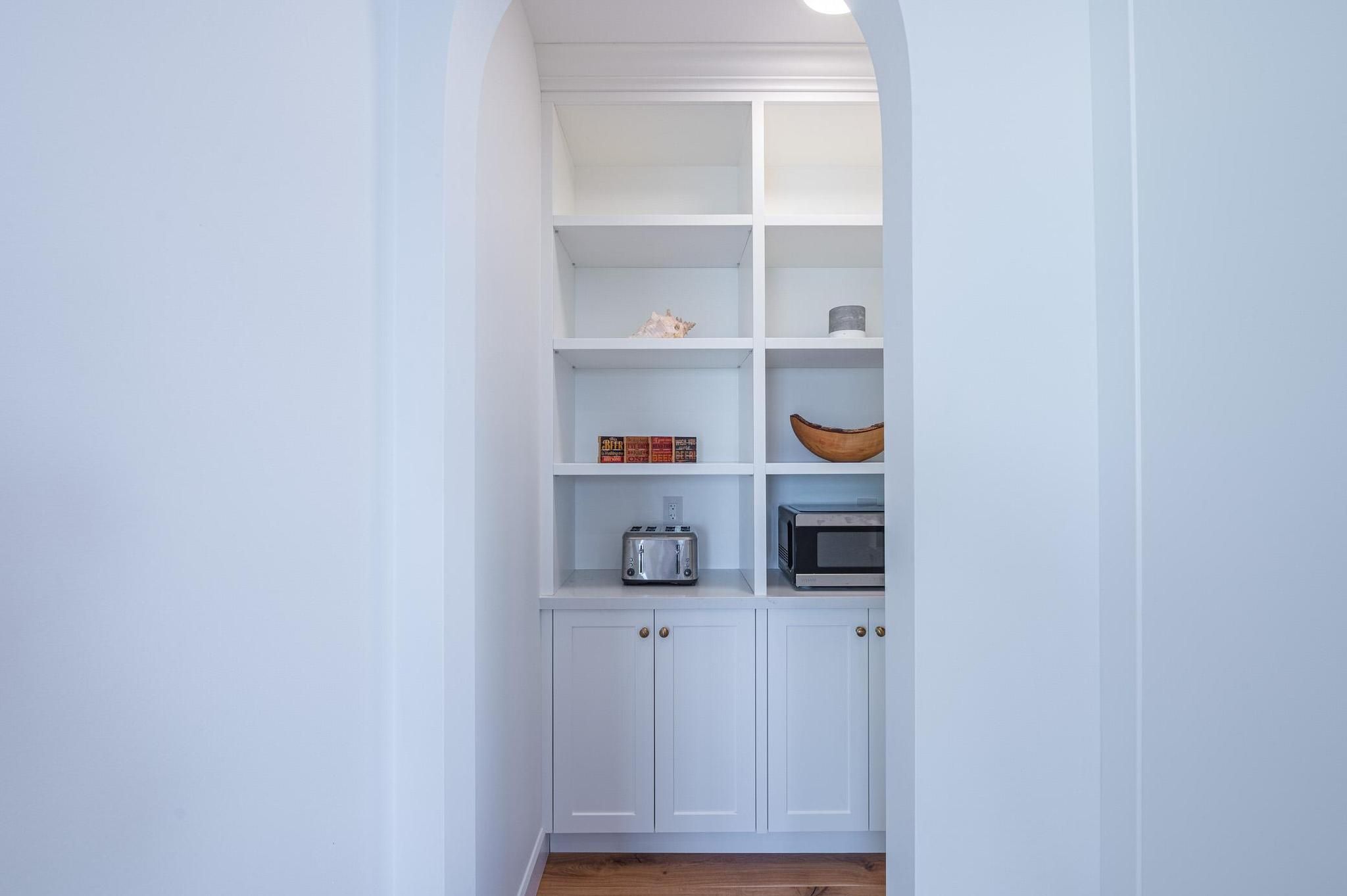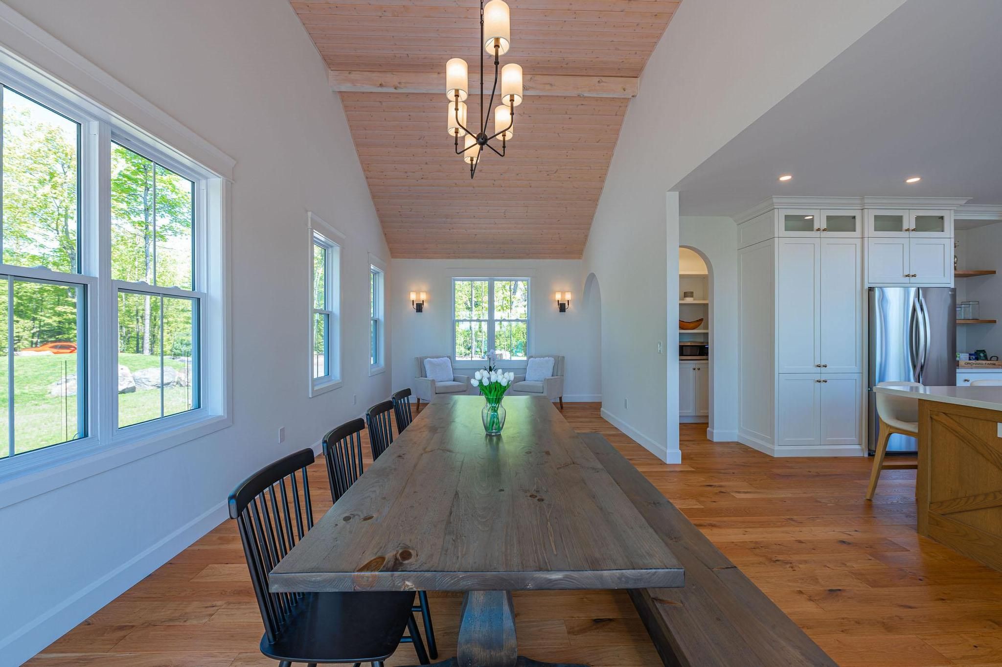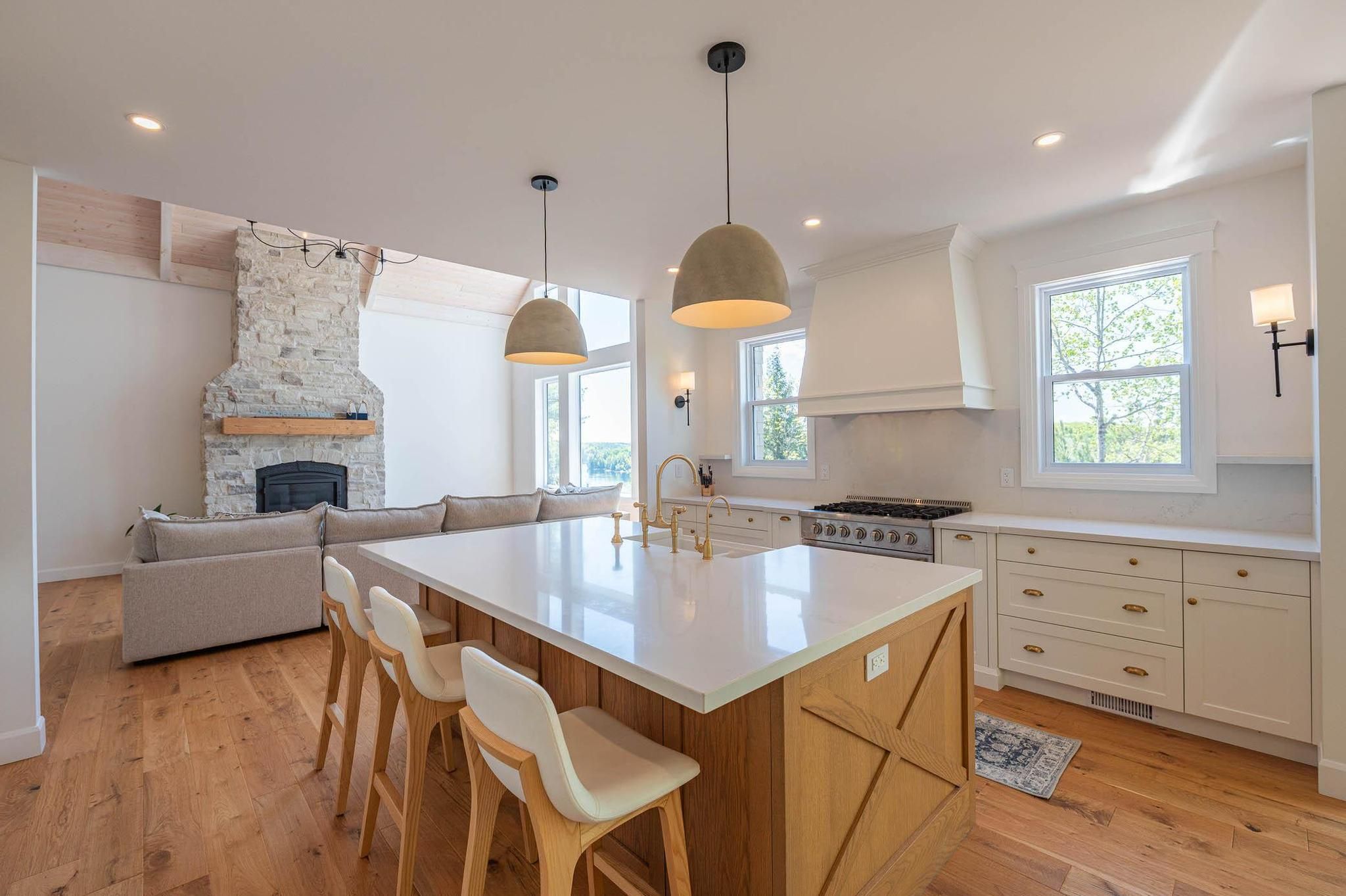 • Gourmet kitchen opens to grand living area with vaulted ceilings.