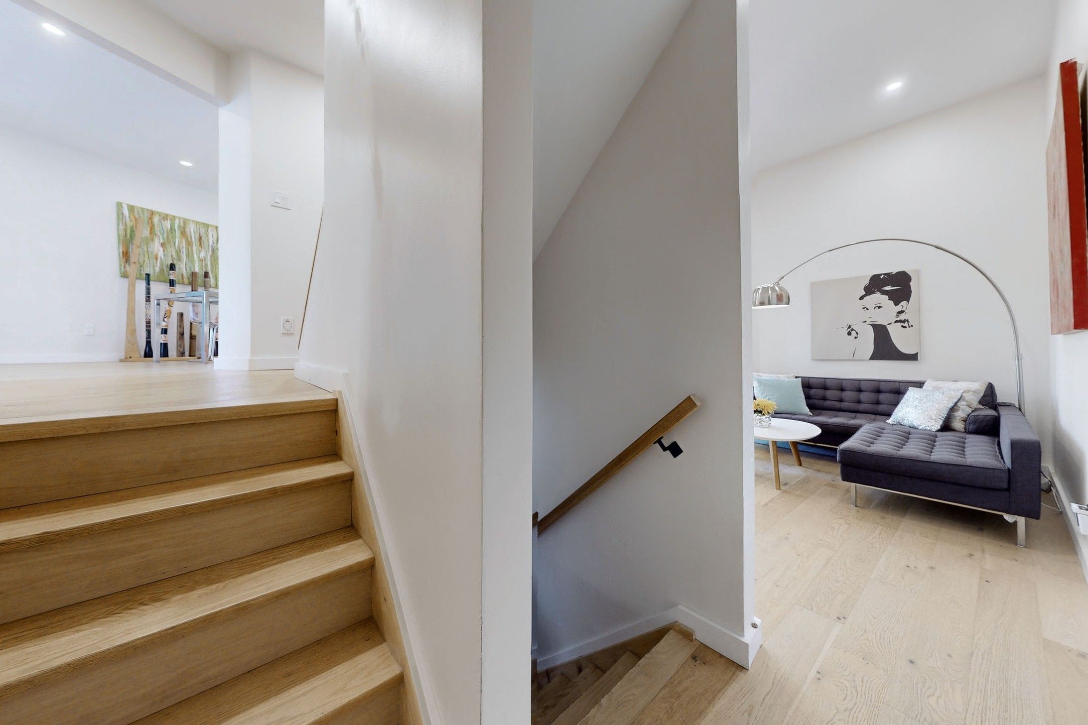 • Open-concept living area with cathedral ceilings and hardwood floors.