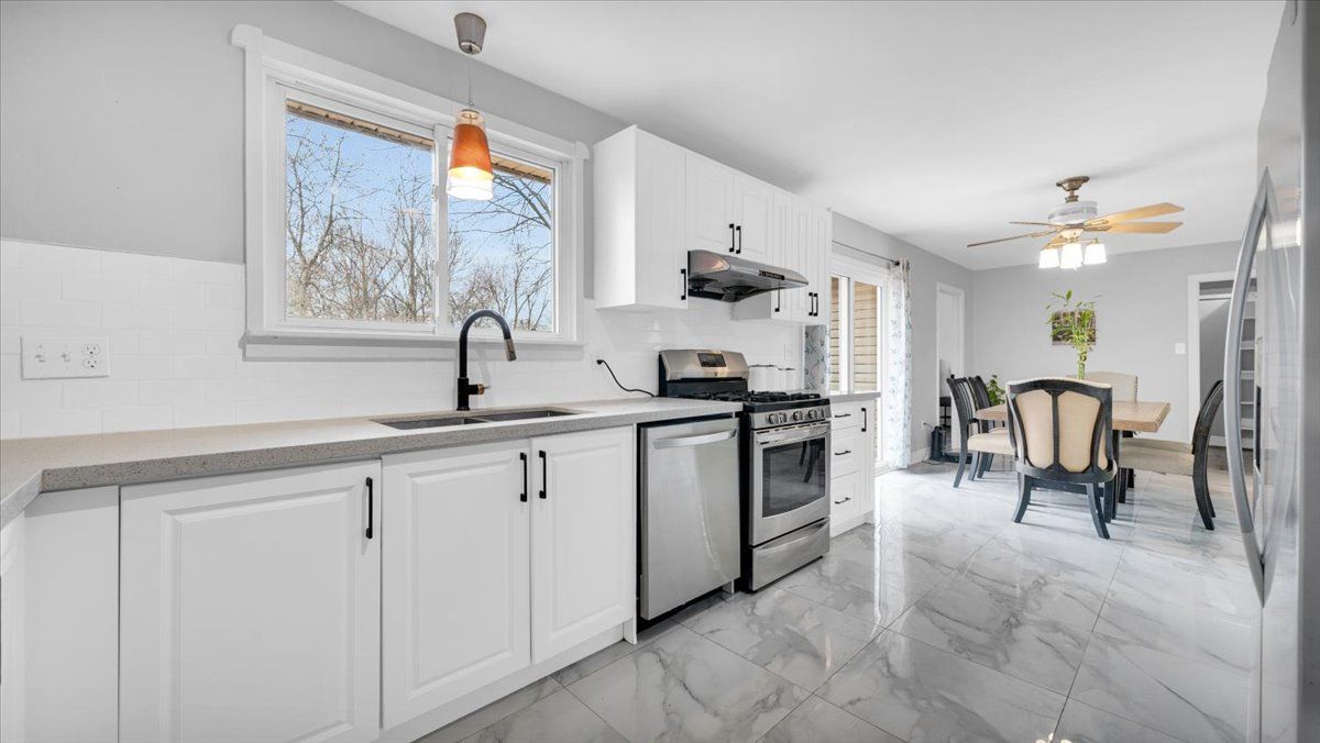 • Updated kitchen/dining area with modern finishes and ample storage.
