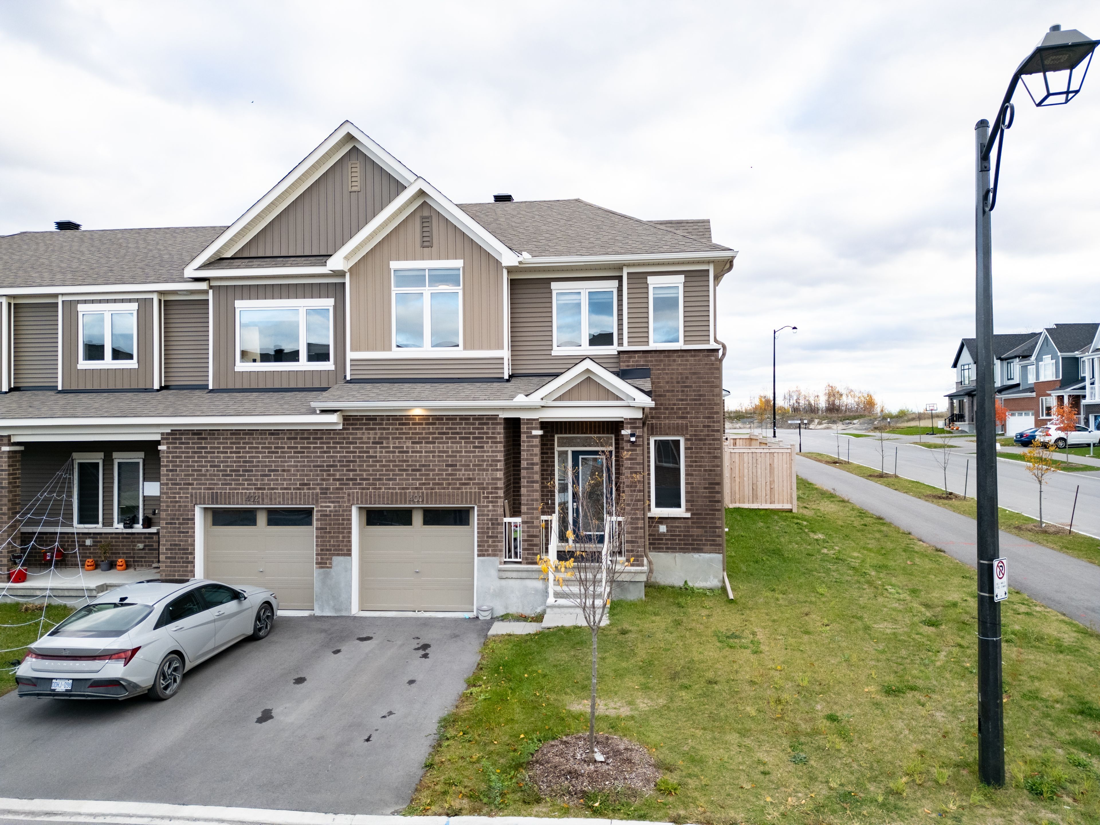 Nestled in the sought-after half moon bay community of barrhaven, this remarkable corner townhouse built in 2023 is ready to become your new home. It offers an abundance of natural light through its large windows and a bright, welcoming layout. As you step inside, you'll be greeted by the open-concept main floor featuring gleaming hardwood floors and expansive windows that flood the space with sunlight. The open-concept kitchen showcases granite countertops with ample cabinet and counter space. A wide staircase leads to a spacious second level featuring a primary bedroom with a walk-in closet and ensuite, along with two other generously sized bedrooms. The main bathroom features built-in shelves, and every washroom in the home includes large windows. The fully finished basement adds even more living space. Still covered under tarion warranty. Conveniently located near all amenities, including the minto recreation centre, top-rated schools, parks, shopping, costco, food basics, amazon, and offering easy access to highway 416. Book your showing today.