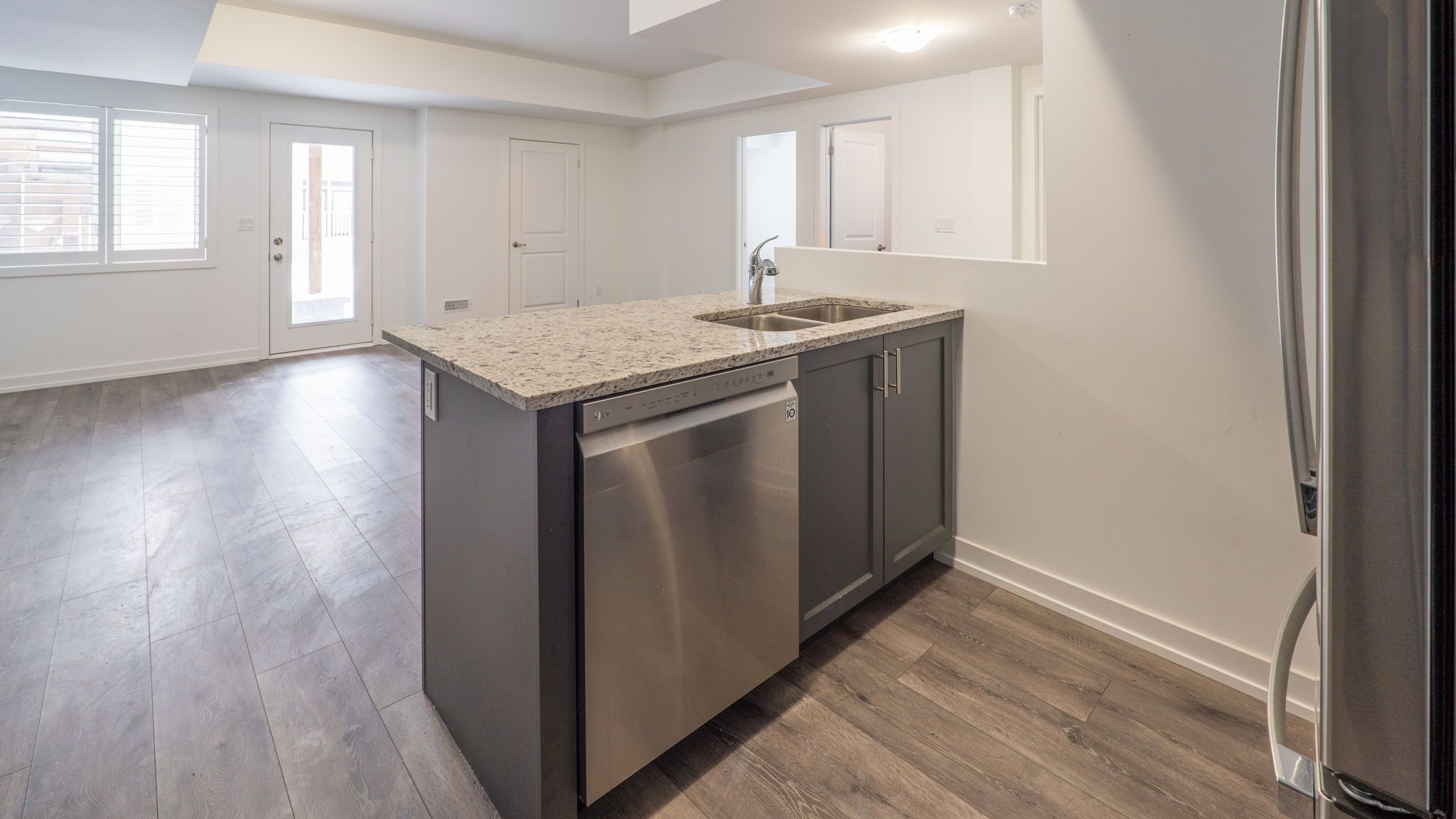 • Open-concept living space with 9 ft ceilings enhances spacious feel.