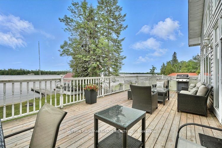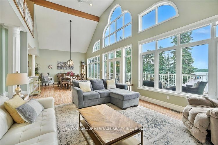 Home business opportunity situated in cottage country. This stunning lakefront home is located on sturgeon lake and includes 4 income producing cottages. This custom built home boasts expansive lake views from the great room which is spacious and bright. The open concept provides for a large kitchen with an island, great for entertaining and has a walkout to your deck to enjoy peaceful evenings or an early morning coffee. Upstairs you will find a loft with your very own home office. The lower level has a walkout looking onto the lake and is fully finished with a separate entrance. Cottages are presently rented and are approximately 720 sq ft each with separate meters. This property is connected to municipal water and sewers. Your can walk or take a short drive to beautiful bobcaygeon with great shopping and many restaurants. The waterfront is crystal clear for swimming and there is a large dock for your boat or friends who come to visit by boat. Sit in the lovely sunroom at the water's edge mosquito free to wind down at the end of your day.
