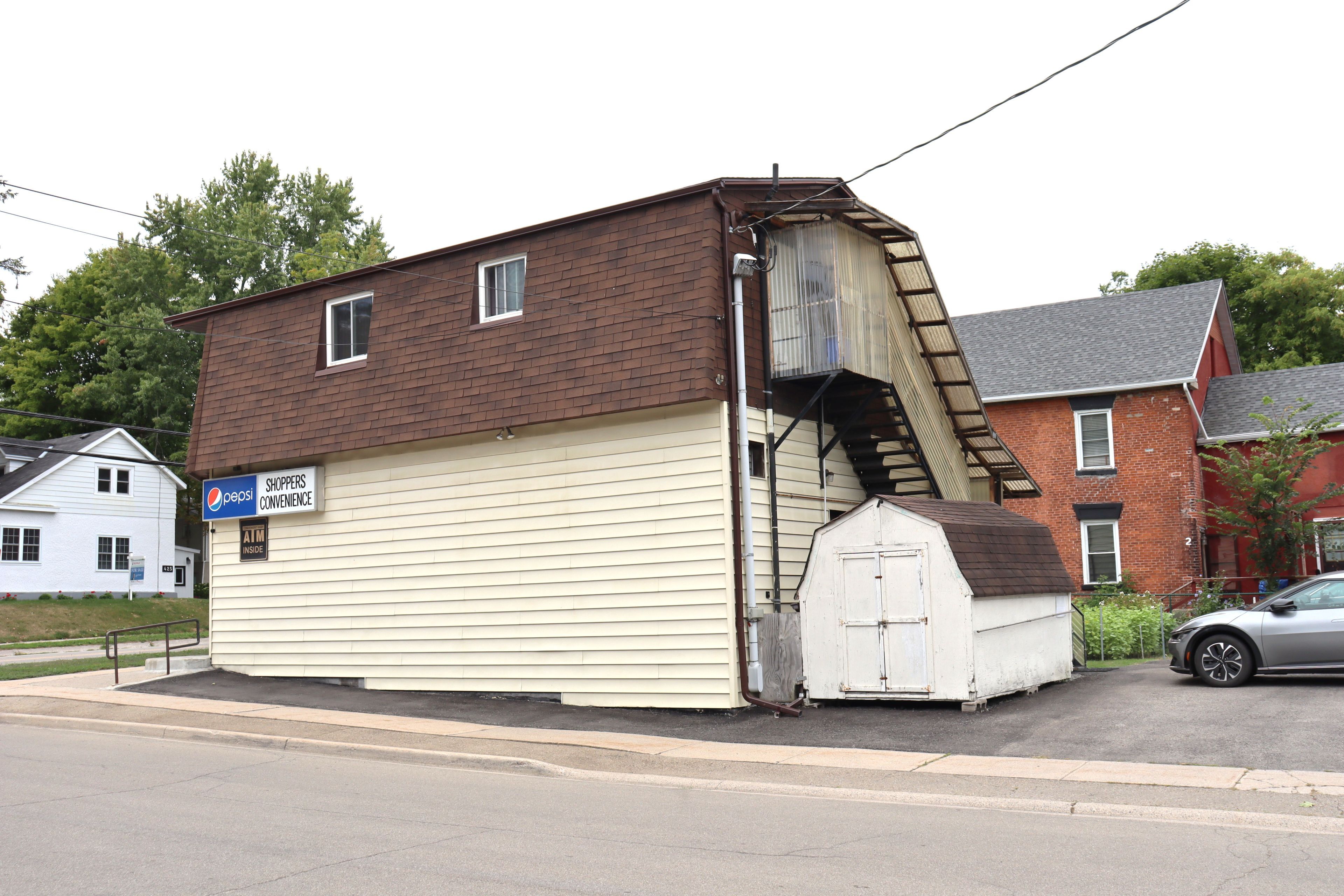 Excellent opportunity to own a fantastic property in the heart of gananoque. Located on king street west, this rare double-sized lot offers outstanding visibility with high traffic exposureideal for business growth. The main floor features approximately 700 sq. Ft. Of open space, previously operated as a convenience store, now ready for your new or existing business venture. A large paved parking area accommodates up to 12 vehicles, providing ample customer and tenant convenience. The second floor includes a well-maintained three-bedroom apartment with a private rear entrance, 3-piece bathroom, living room, dining area, and kitchen, offering comfortable living quarters or rental income potential. A generous backyard adds to the versatility of the property. This property is perfectly suited for entrepreneurs and investors seeking prime exposure, significant parking capacity, and flexible residential options all in one location.
