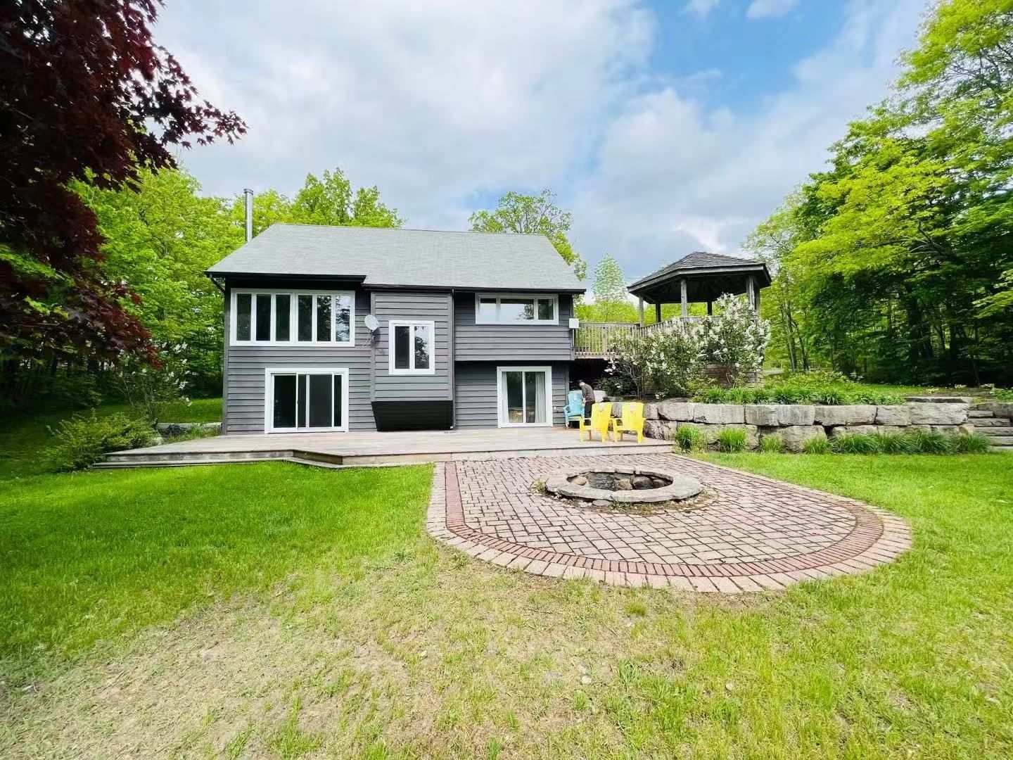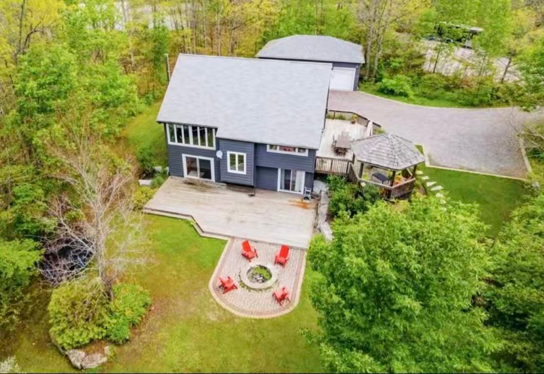 Enjoy year-round living at this incredible georgian bay waterfront home/cottage, privately nestled among the trees on a quiet road just 10 minutes from hwy 400. Featuring 4 bedrooms, an open-concept kitchen and dining area, and a stunning living room with vaulted ceilings and a stone fireplace, the home is filled with beautiful natural light throughout. A spacious entryway with custom built-in storage adds everyday convenience. The fully finished lower level includes a guest bedroom, a large recreation area perfect for families, and a walkout to a beautifully landscaped, level yard complete with a deck, gazebo, and scenic water views.