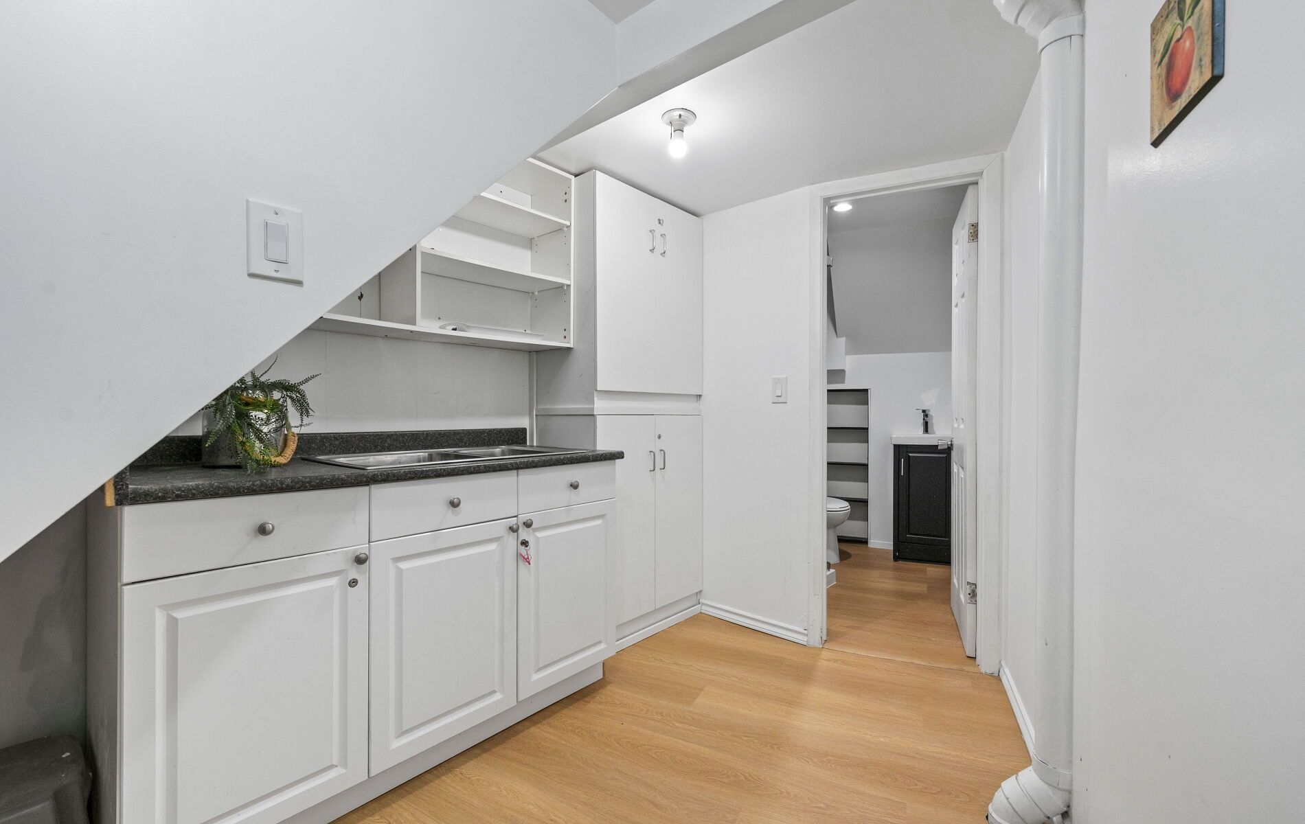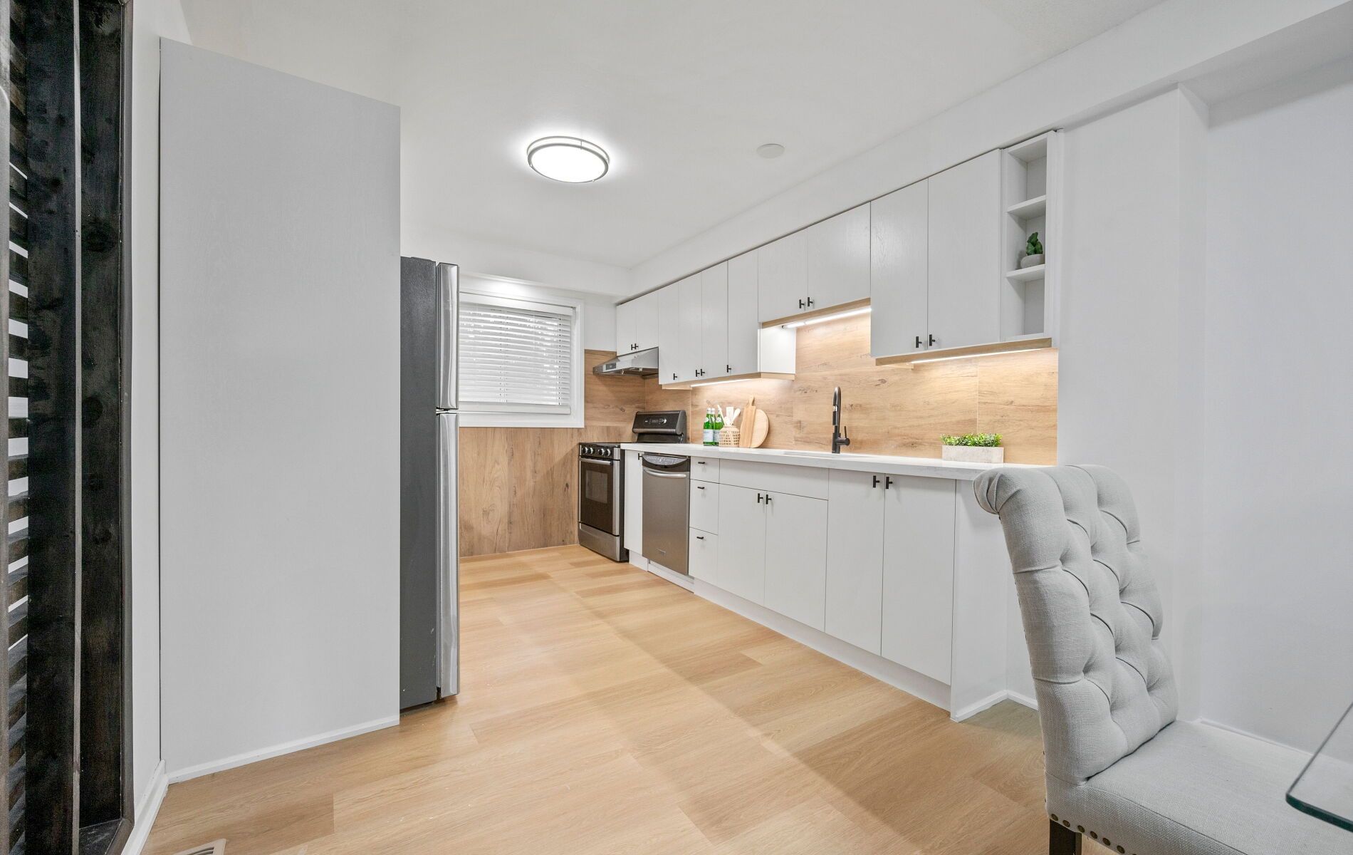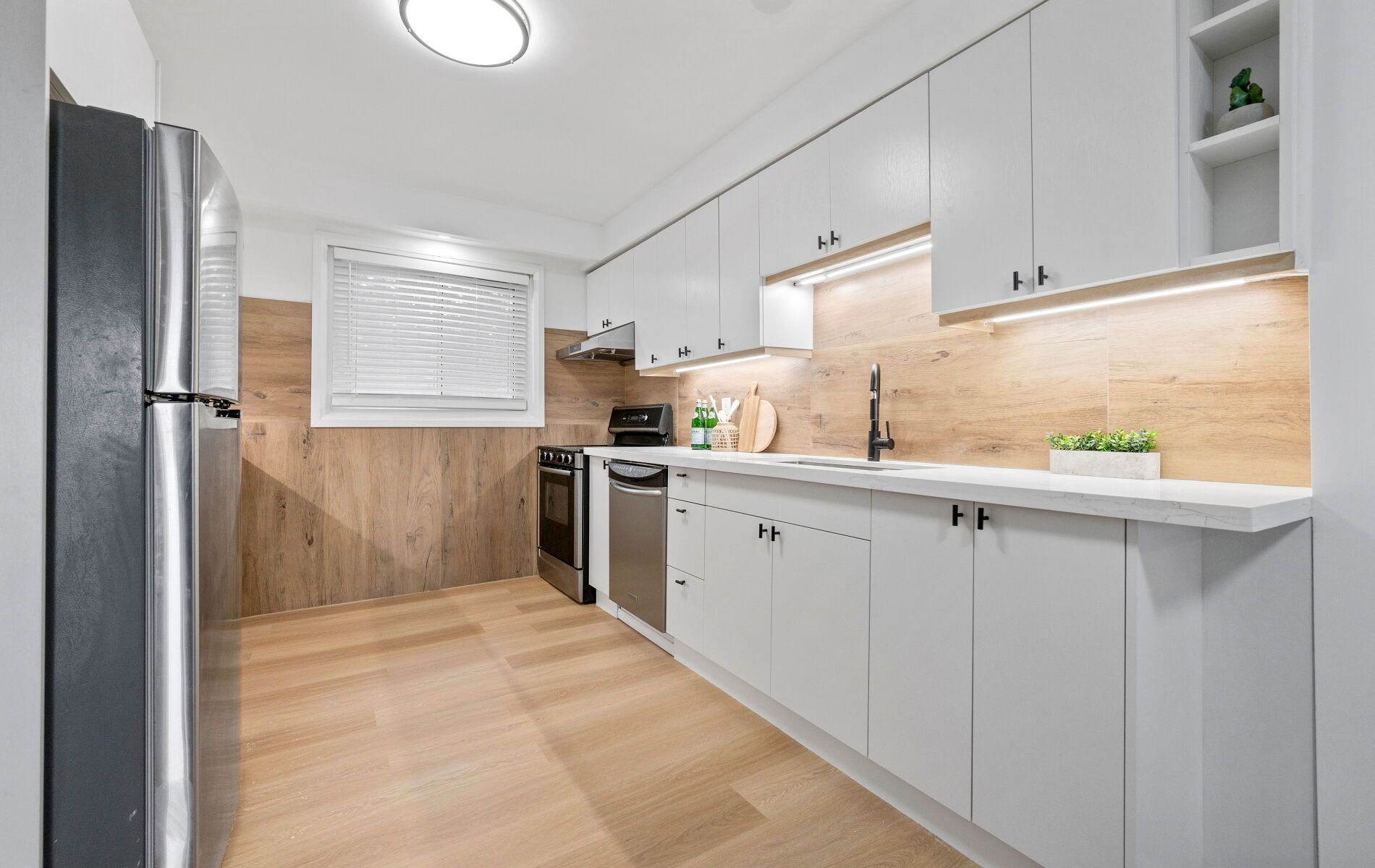 • Bright open-concept living area leads to a fully fenced backyard.
