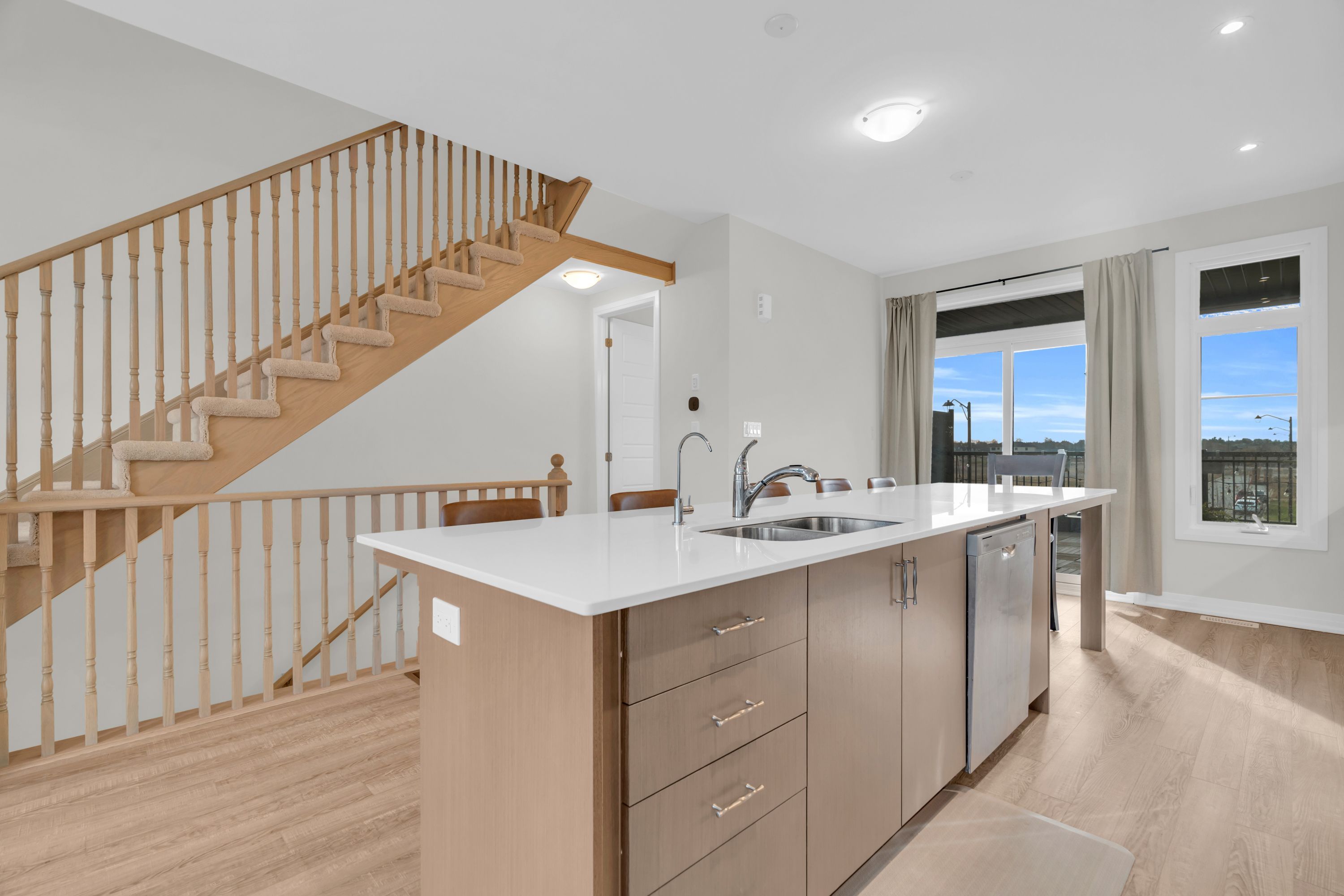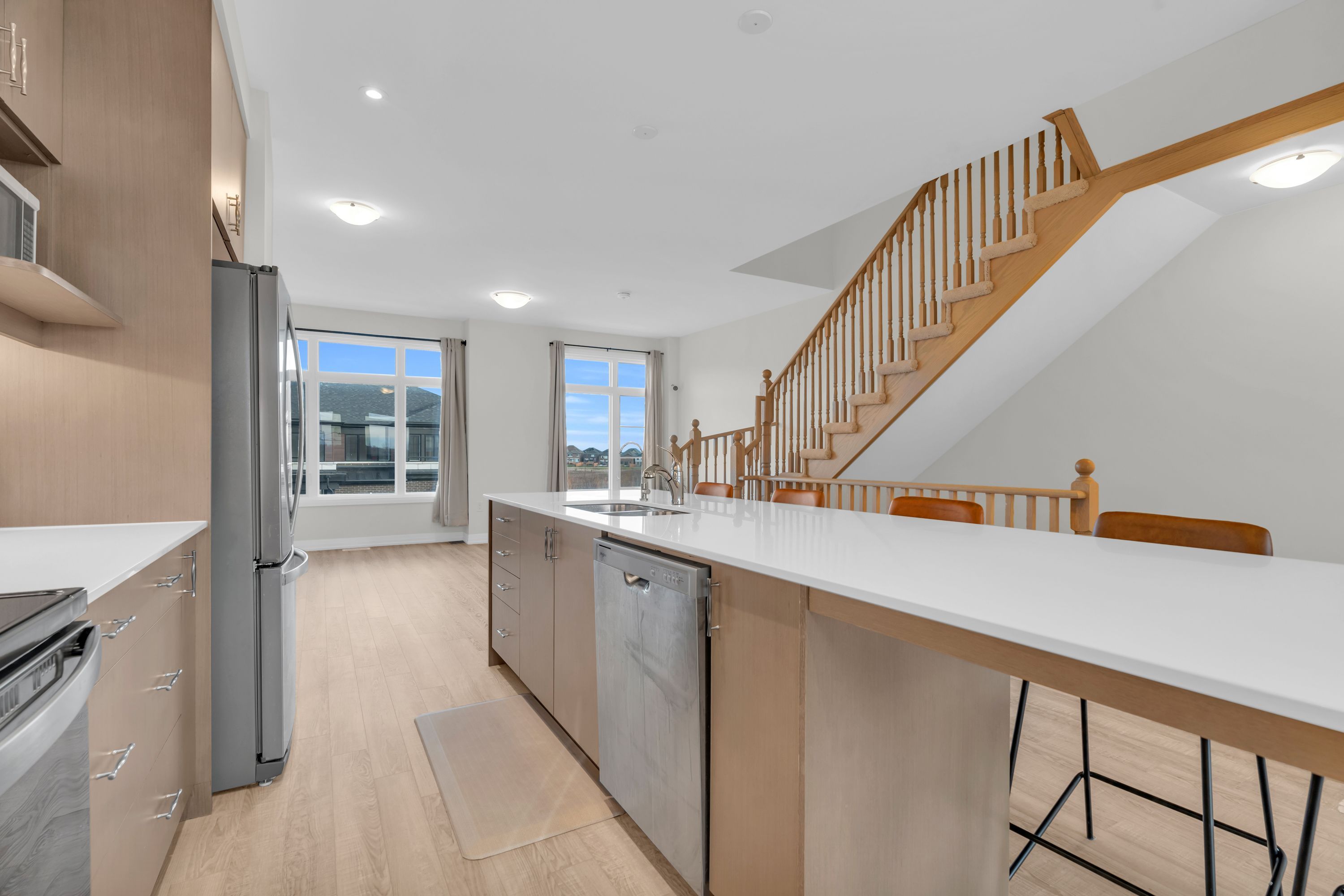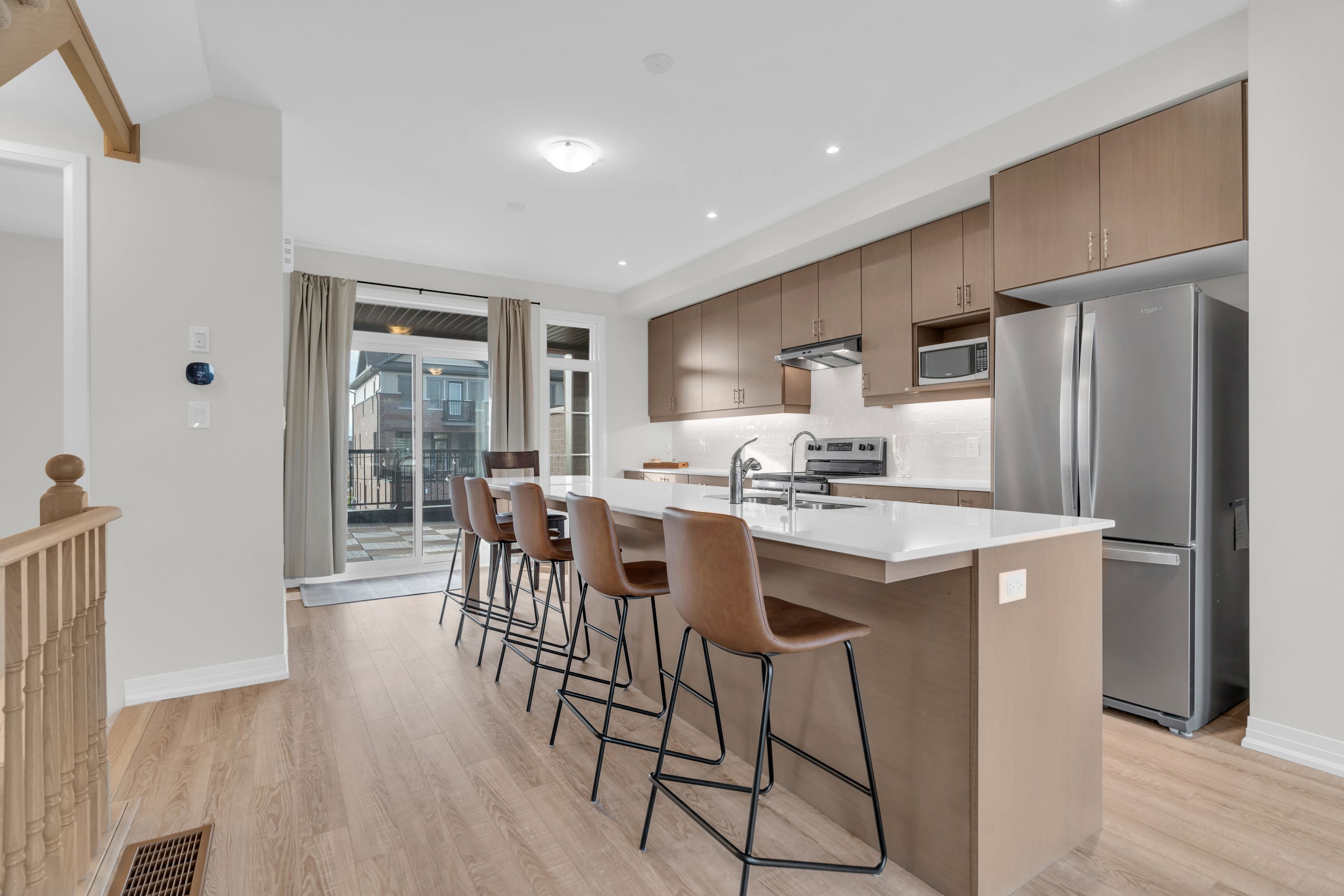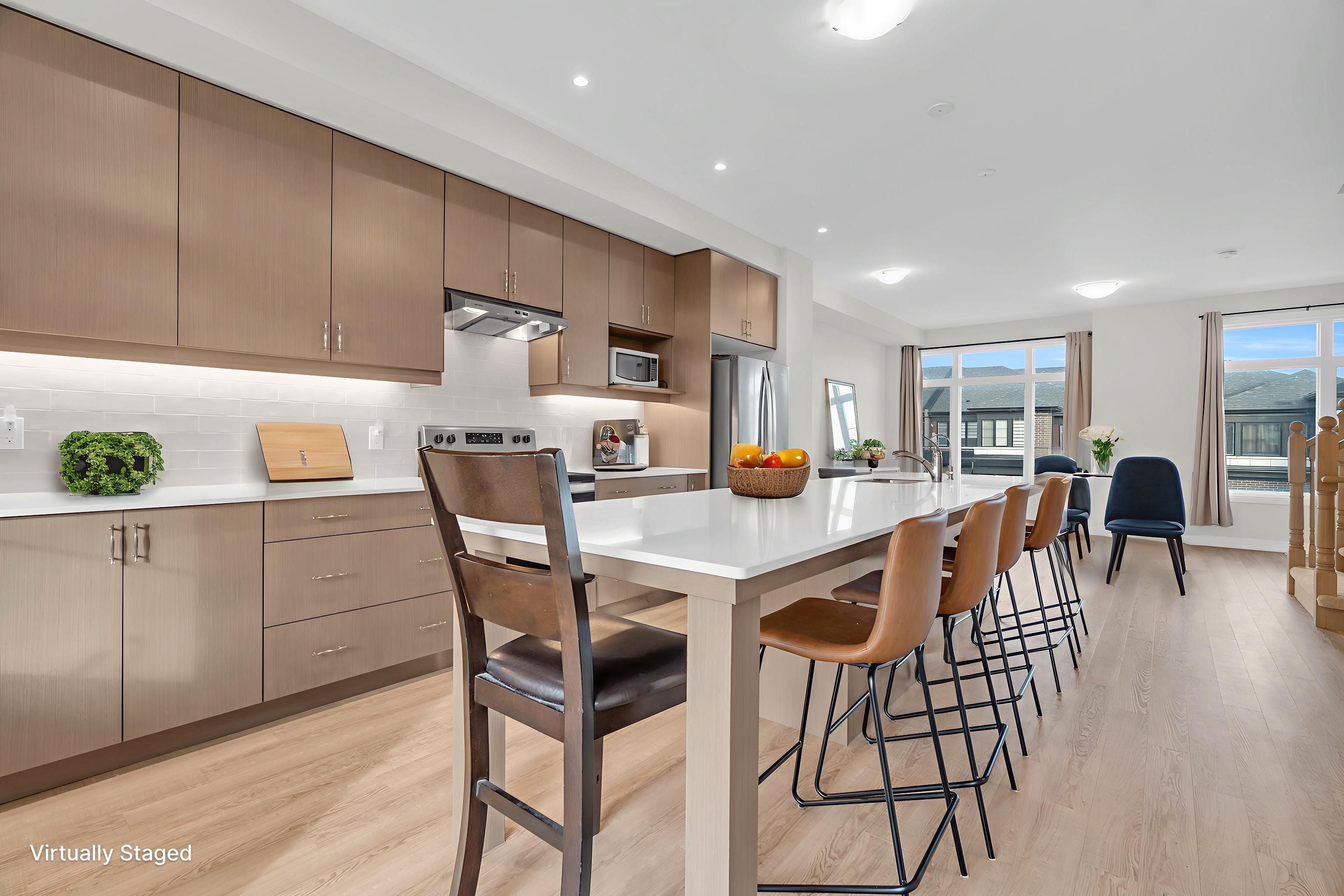 Welcome to contemporary living in the heart of cambridge! This stylish 3-storey, 3-bedroom, 3-bathroom townhome, built in 2024, offers over 1,600 sq. Ft. Of thoughtfully designed living space, blending modern finishes with everyday comfort! Step into the open-concept main floor, where large windows and a functional layout create a bright, inviting atmosphere. As you transition to the second floor, you're welcomed into a sleek kitchen which is the centrepiece of the home, featuring stainless steel appliances, a generous kitchen island with seating, and ample cabinetry-perfect for both casual meals and entertaining! The adjoining living and dining areas provide a seamless flow, ideal for hosting friends or relaxing at the end of the day. All three bedrooms are well-proportioned, offering plenty of space for rest, work, or study. The bathrooms are tastefully finished with modern fixtures and clean lines, enhancing the home's fresh, contemporary feel. With three full storeys, there is a comfortable separation of living, sleeping, and entertaining areas, giving everyone room to spread out. One of the standout features is the private rooftop patio-an impressive outdoor extension of your living space. It's the perfect spot for morning coffee, evening drinks, or summer gatherings under the open sky! Move-in ready and designed with style in mind, this luxury townhome delivers a low-maintenance, lock-and-leave lifestyle in a desirable cambridge location. If you're looking for a spacious, modern home with upgraded features and a rooftop retreat, this property deserves your attention!