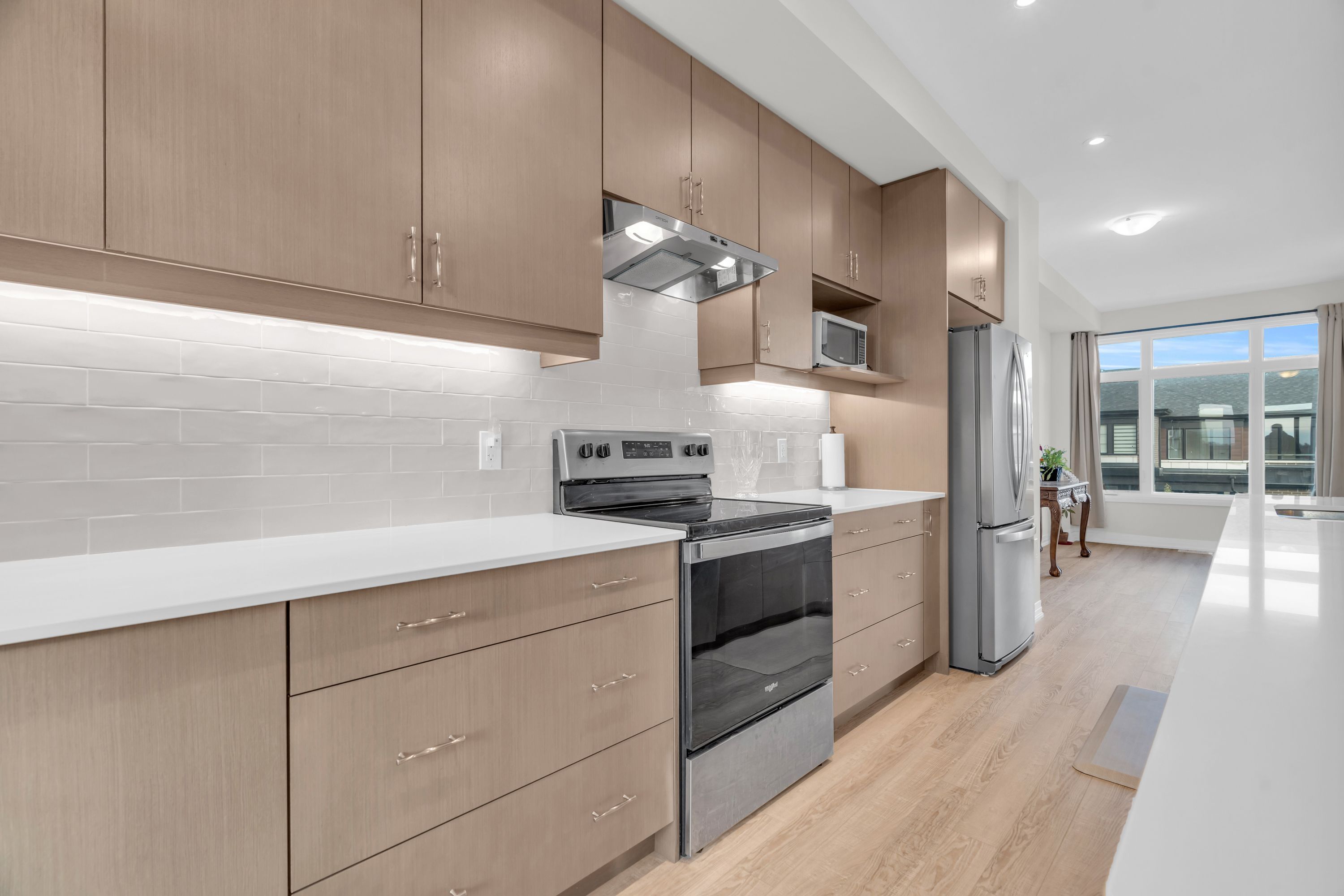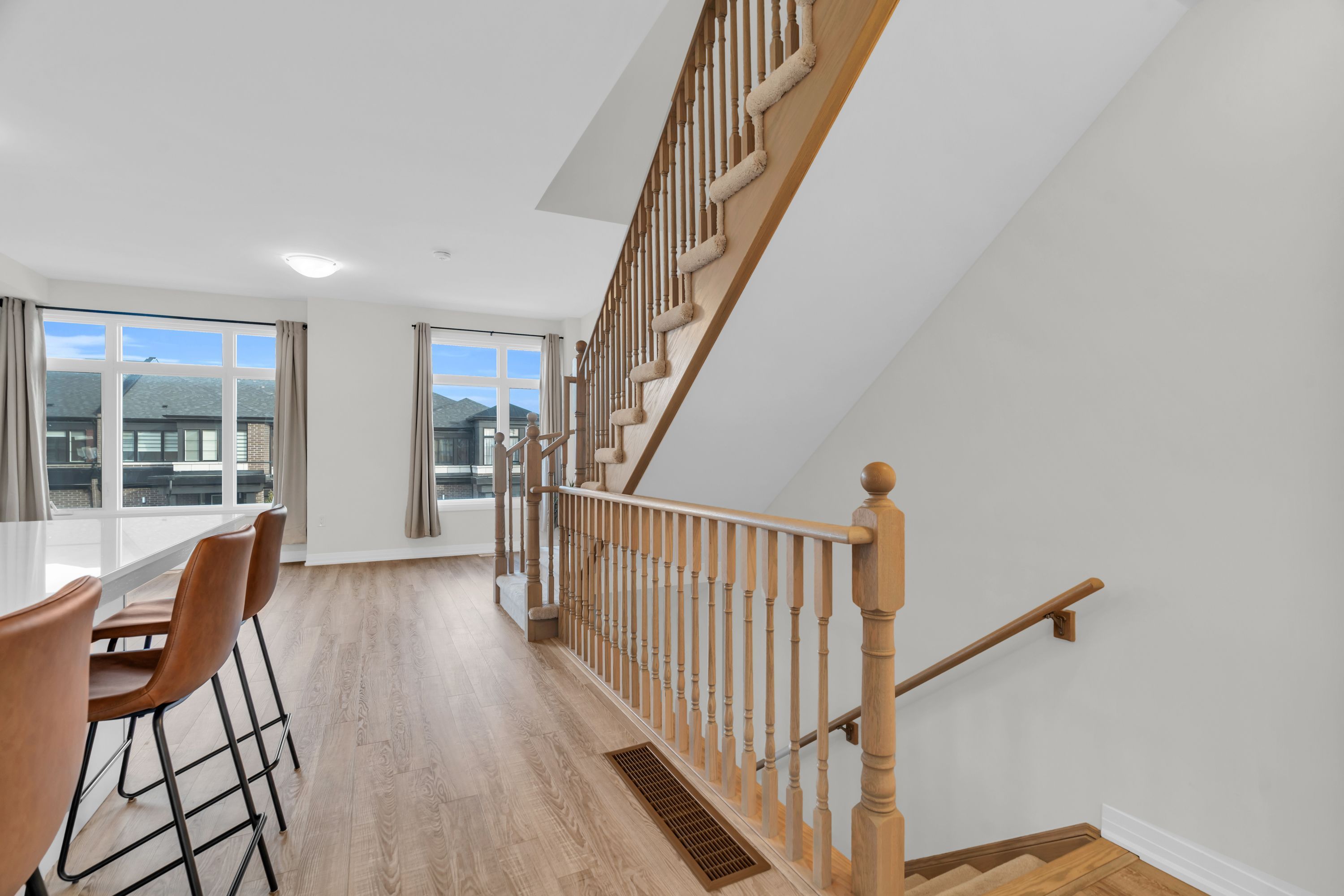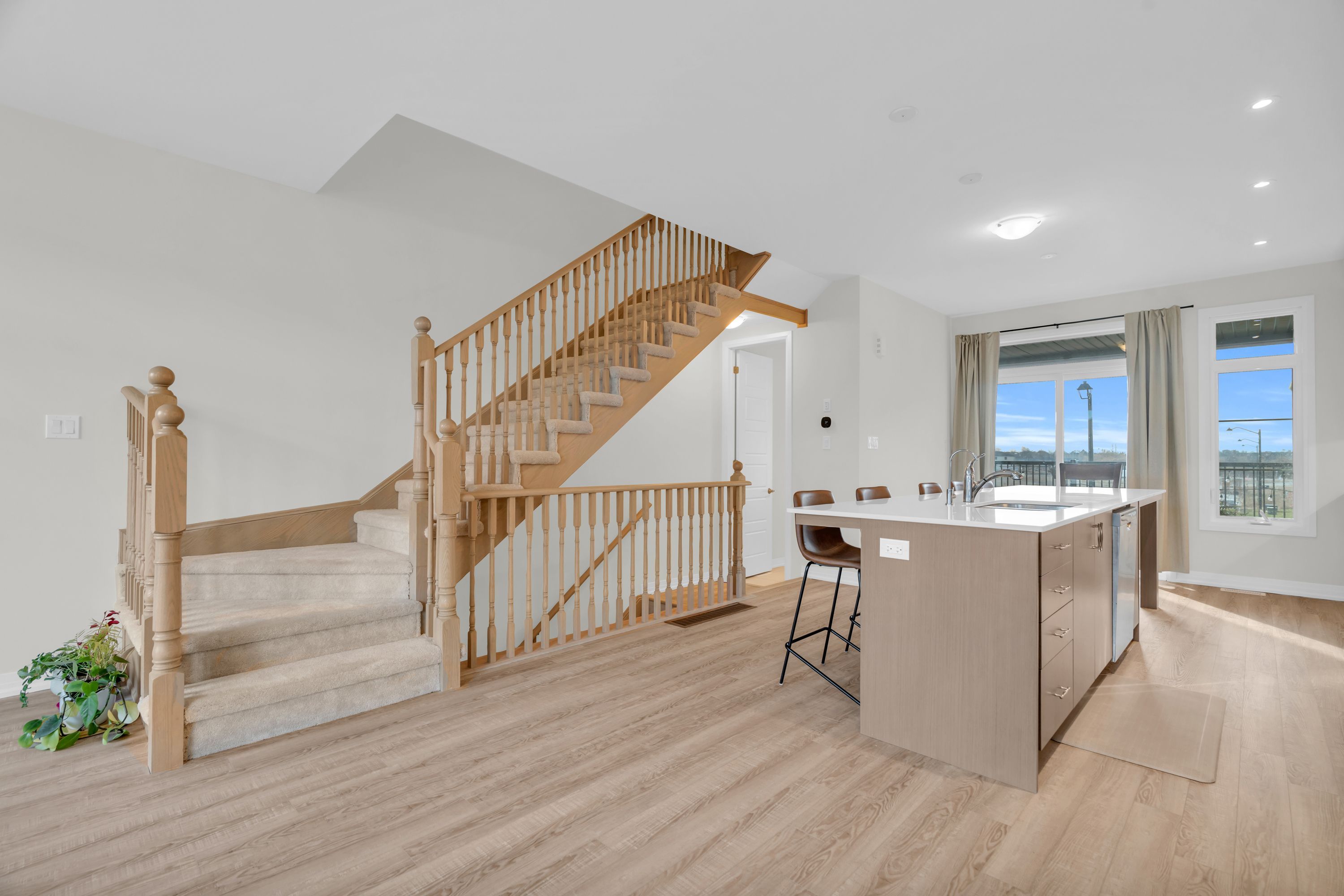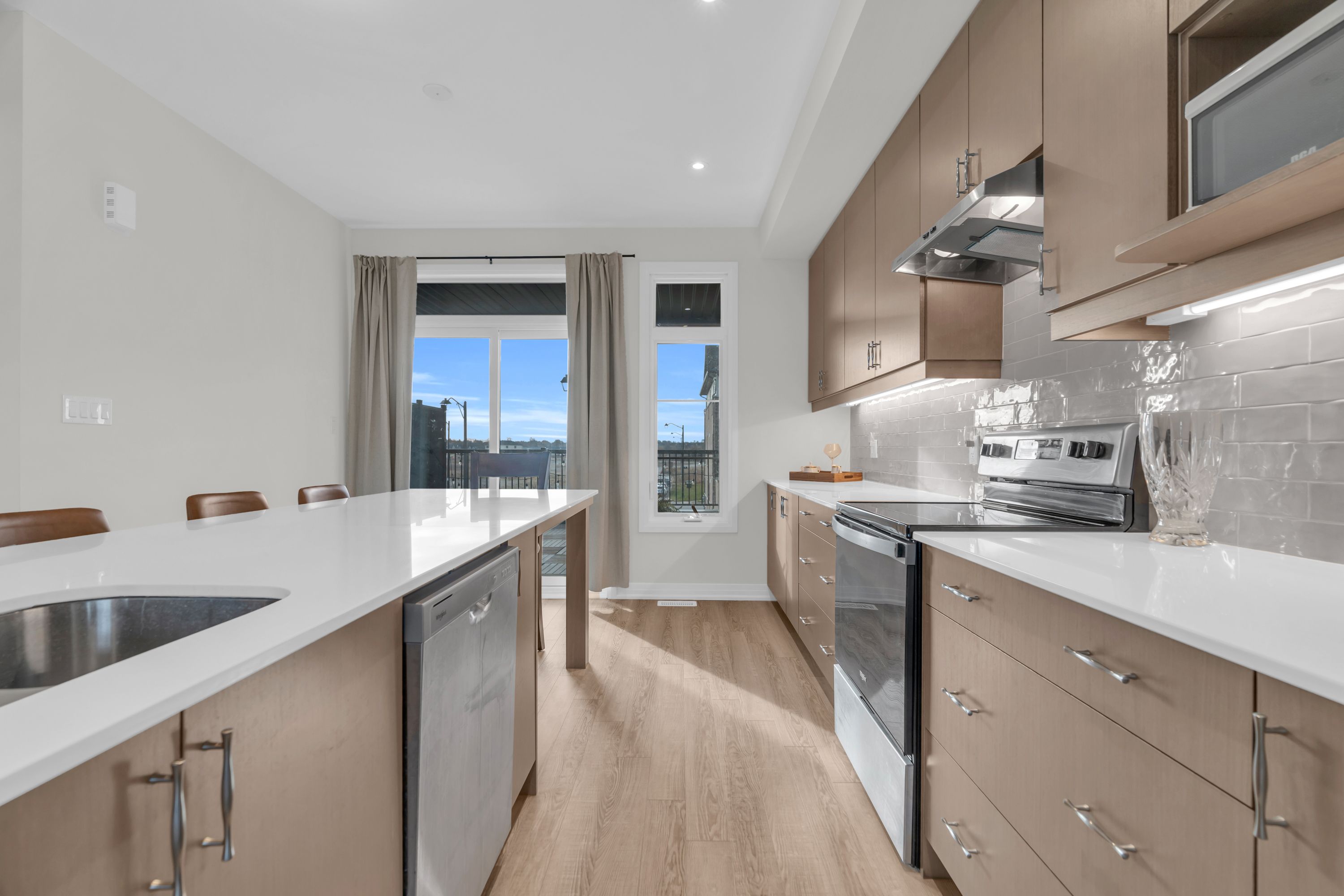 Welcome to contemporary living in the heart of cambridge! This stylish 3-storey, 3-bedroom, 3-bathroom townhome, built in 2024, offers over 1,600 sq. Ft. Of thoughtfully designed living space, blending modern finishes with everyday comfort! Step into the open-concept main floor, where large windows and a functional layout create a bright, inviting atmosphere. As you transition to the second floor, you're welcomed into a sleek kitchen which is the centrepiece of the home, featuring stainless steel appliances, a generous kitchen island with seating, and ample cabinetry-perfect for both casual meals and entertaining! The adjoining living and dining areas provide a seamless flow, ideal for hosting friends or relaxing at the end of the day. All three bedrooms are well-proportioned, offering plenty of space for rest, work, or study. The bathrooms are tastefully finished with modern fixtures and clean lines, enhancing the home's fresh, contemporary feel. With three full storeys, there is a comfortable separation of living, sleeping, and entertaining areas, giving everyone room to spread out. One of the standout features is the private rooftop patio-an impressive outdoor extension of your living space. It's the perfect spot for morning coffee, evening drinks, or summer gatherings under the open sky! Move-in ready and designed with style in mind, this luxury townhome delivers a low-maintenance, lock-and-leave lifestyle in a desirable cambridge location. If you're looking for a spacious, modern home with upgraded features and a rooftop retreat, this property deserves your attention!