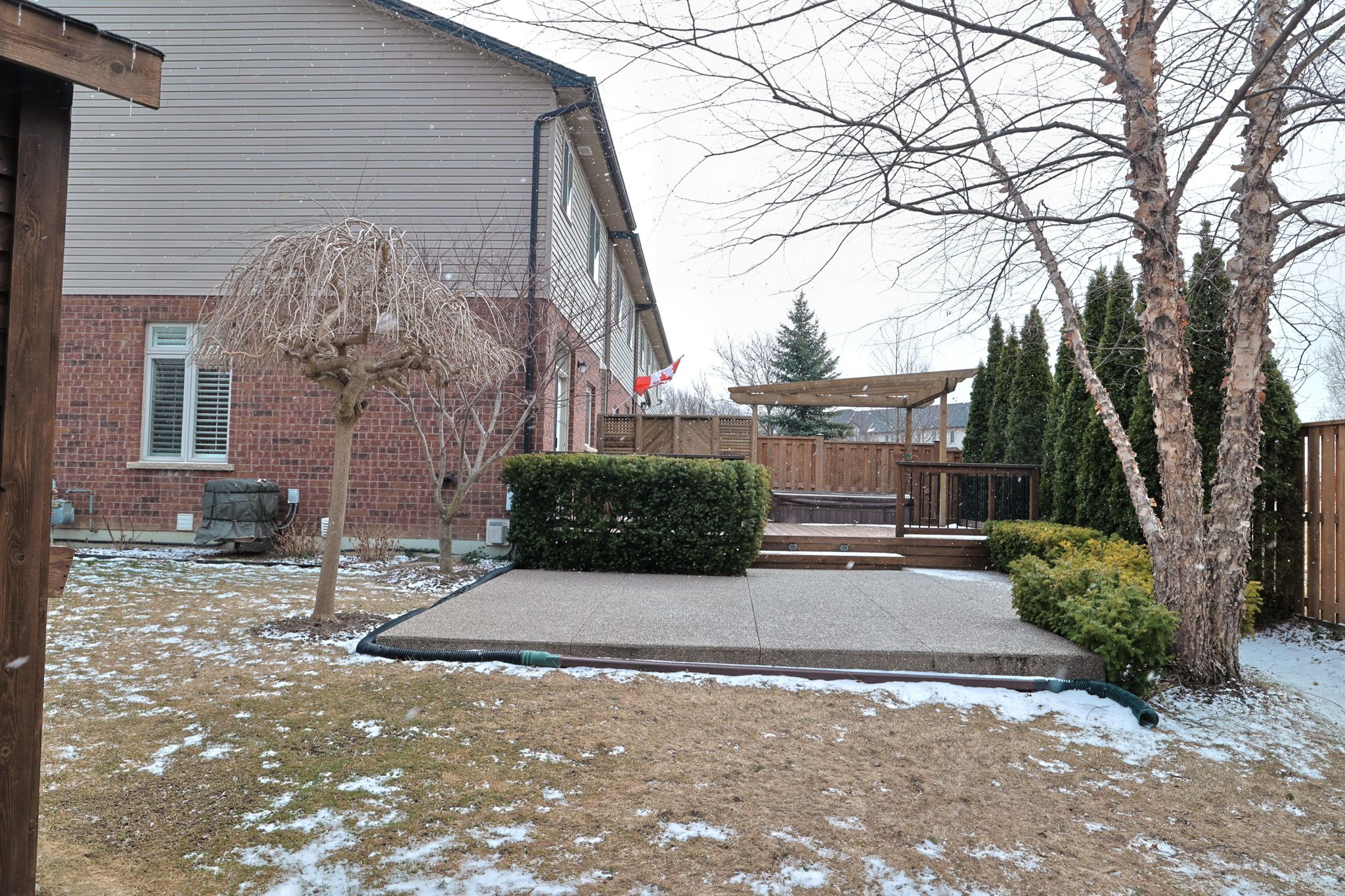 Welcome to this fabulous end-unit townhome offering over 2,200 sq. Ft. Of beautifully finished living space (including the basement), situated on one of the largest lots in meadowlands ancaster. Attached only by the garage wall, this home provides added privacy and a true semi-detached feel. This stunning 2-storey home features 3 bedrooms and 2. 5 bathrooms, showcasing high-end renovations throughout. The impressive pie-shaped lot boasts a professionally landscaped yard complete with mature trees, lush gardens, a cedar deck, hot tub, aggregate patio, and generous green space - perfect for relaxing or entertaining. Inside, gleaming hardwood floors flow across the main and upper levels. The spacious primary bedroom offers two walk-in closets and a luxurious 5-piece ensuite featuring a seamless glass shower, double sink vanity with marble countertops. Two additional bright and spacious bedrooms are complemented by an updated 4-piece bathroom with elegant quartz counters. The main floor is ideal for family living and entertaining, featuring a large family room, dining area, and a beautifully updated kitchen with granite countertops, pot drawers, under-cabinet lighting, stainless steel appliances, and a custom pantry for extra storage. The fully finished basement is loaded with pot lights, a cozy gas fireplace, and a convenient laundry area. Oof replacement in 2018, meticulous maintenance by the owner, and rare parking for 2 car in the driveway. Road fee $198. 92 located in a quiet, family-friendly neighbourhood, this home is just minutes from top-rated schools, parks, and the prestigious hamilton golf & country club. Enjoy exceptional convenience with nearby shopping at meadowlands power centre, including costco, major retail stores, restaurants, and everyday amenities. Quick access to major highways makes commuting a breeze. Townhomes of this calibre, lot size, and location rarely become available. This move-in-ready home is a true gem, don't miss your opportunity!