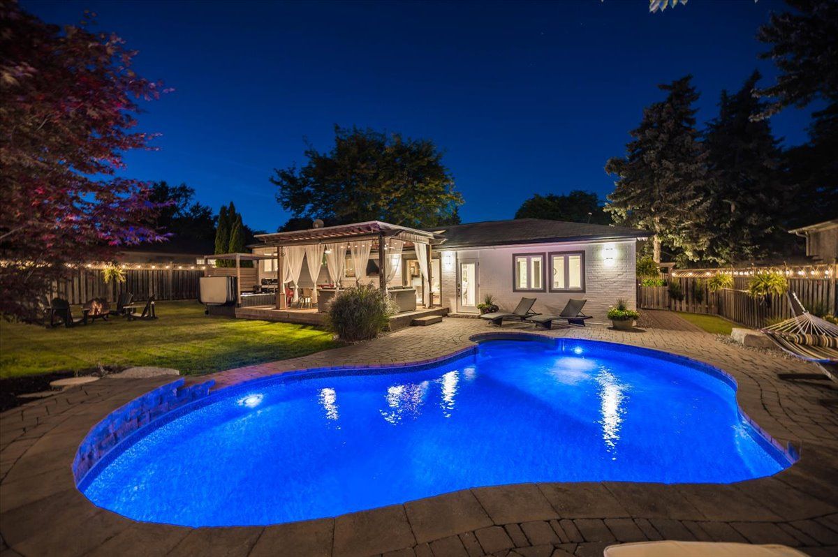 Exceptional luxury living in the heart of west oakville. This fully updated and meticulously maintained residence offers a seamless blend of sophistication, comfort, and lifestyle. The main floor showcases a stunning open-concept design with vaulted ceilings and skylights, creating an airy and elegant atmosphere. Offering 3+1 bedrooms & 2+1 bathrooms, this home provides both functionality and style. The chef-inspired kitchen, expansive living spaces, and refined finishes set the stage for effortless entertaining. A spacious finished lower level provides additional living space, ideal for a media room, home office, or guest suite. The true highlight is the resort-inspired backyard oasis. Designed for both relaxation and entertainment, it features a sparkling in-ground pool, multiple lounging and dining areas, and lush professional landscaping, offering the ultimate private retreat. Complete with a double car garage and situated within walking distance to bronte village, the lake, boutiques, and fine dining, this residence captures the essence of modern luxury in one of oakville's most desirable communities. Every detail has been completed, simply move in and indulge.