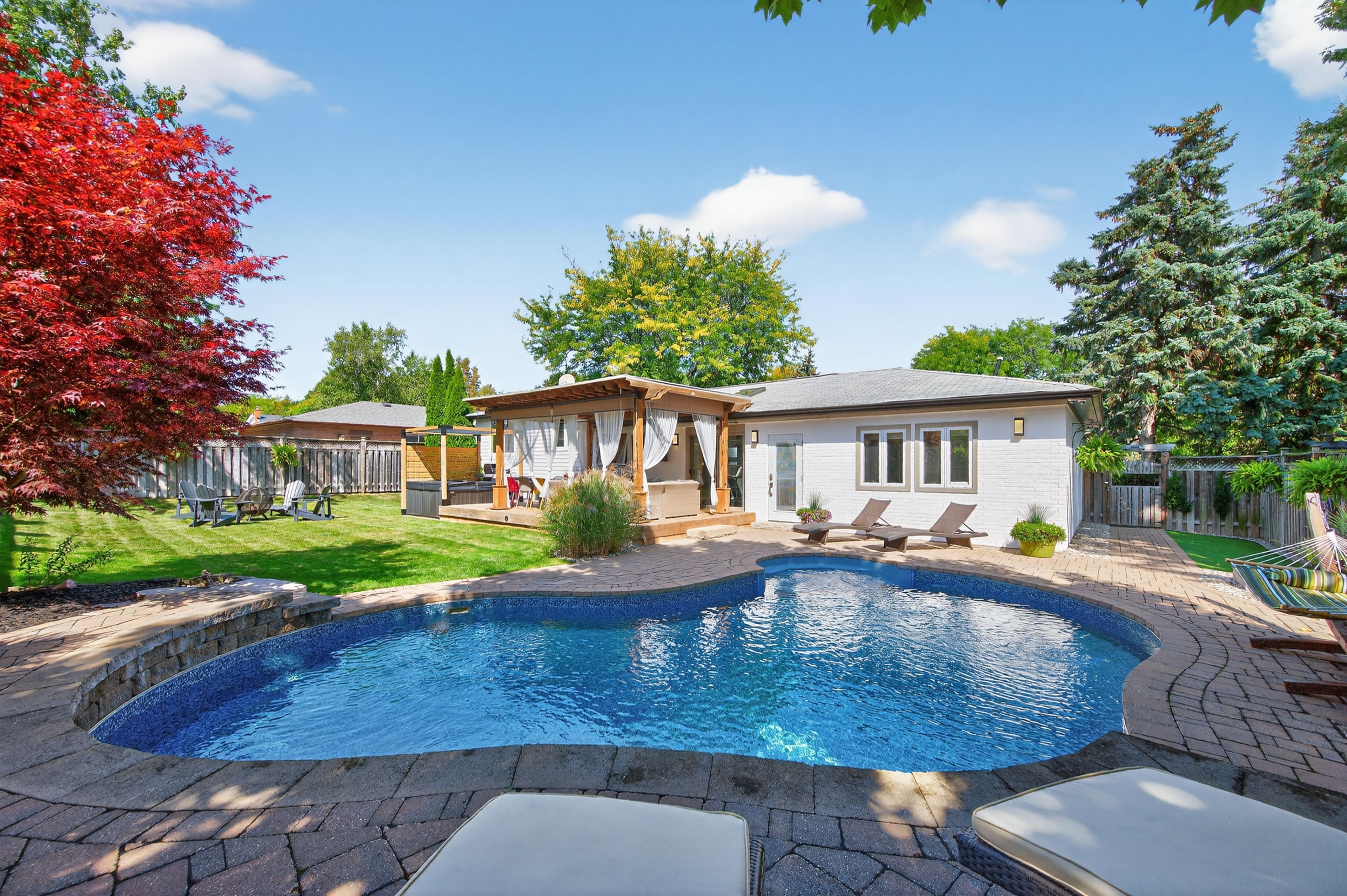 • Resort-inspired backyard with a sparkling in-ground pool.