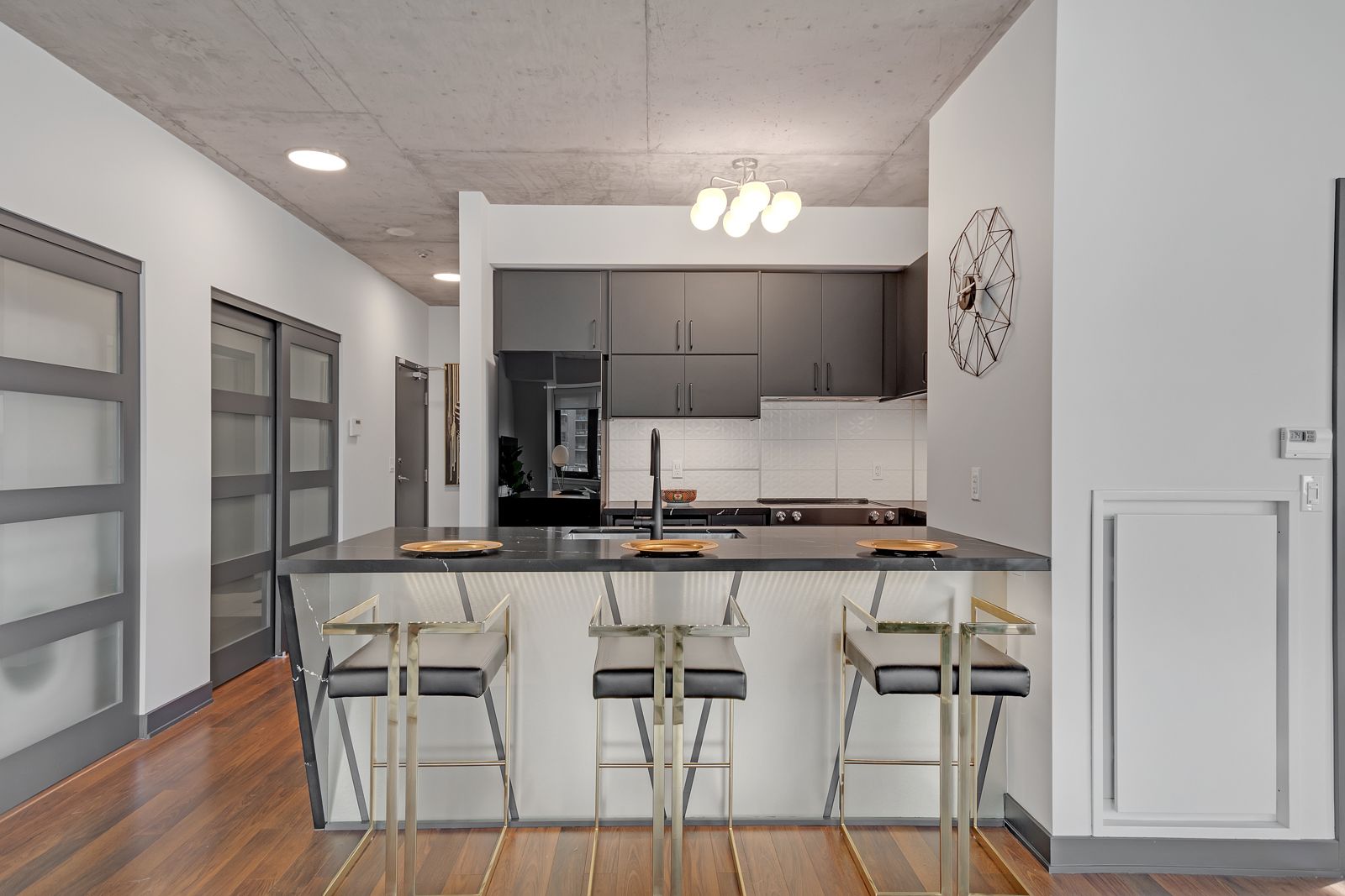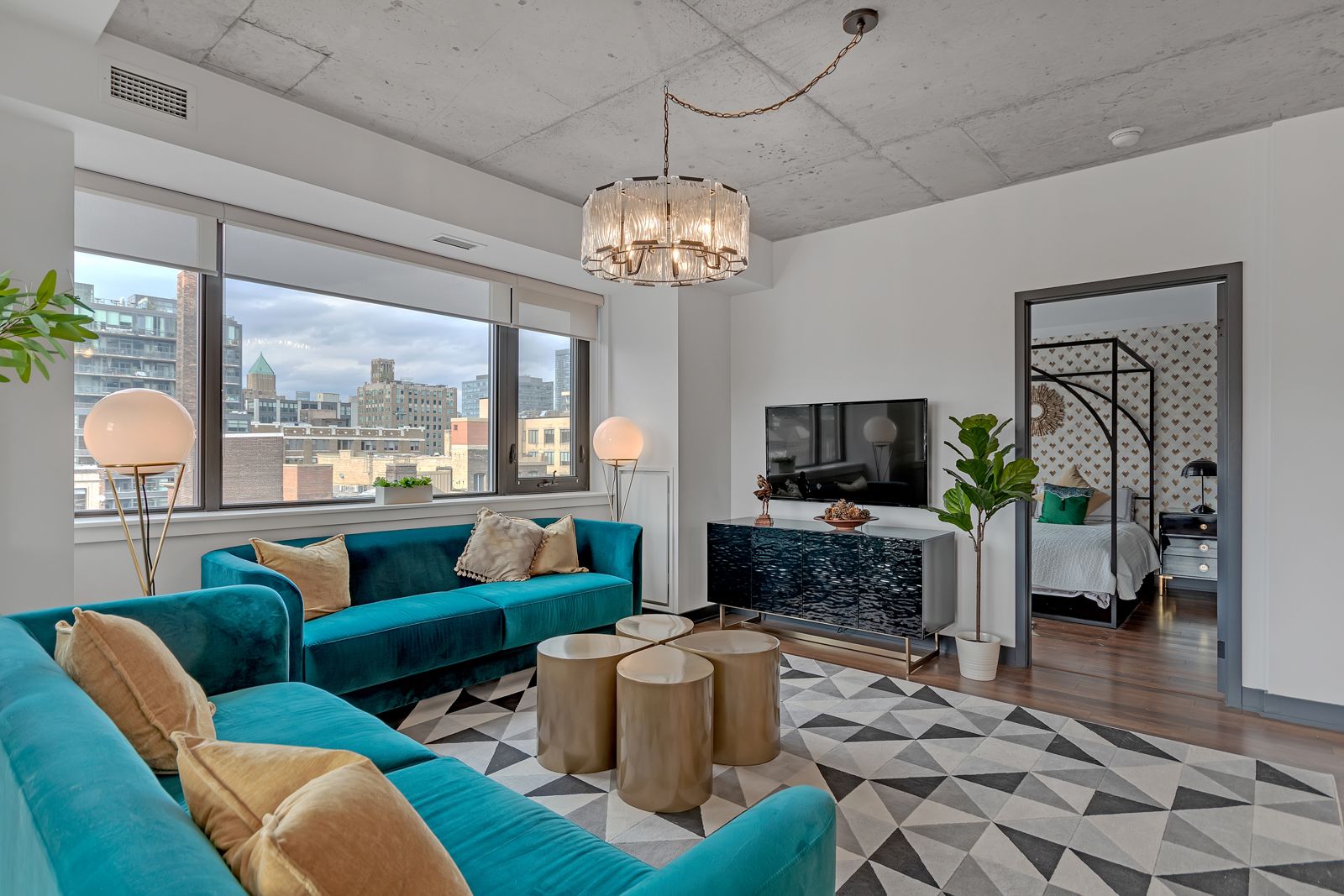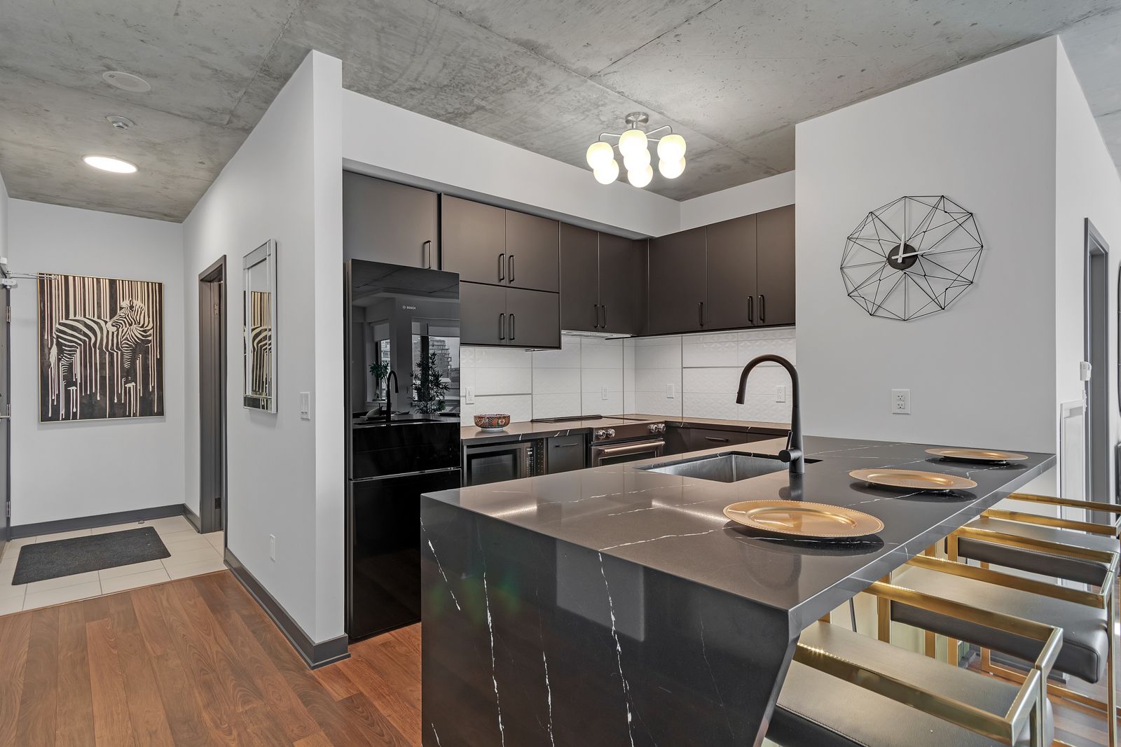Highly sought after 1 of a kind mid-rise boutique building on a quiet st near king & spadina. Fully furnished sophisticated mid-century chic 2 bedroom luxe suite. This absolute gem encapsulates the finest of dt living. Designer kitchen, stylish lights, blackout blinds & beautiful hardwood t/o. Spacious open concept, 1085 sqft corner suite with soaring exposed concrete ceiling. Enjoy a coffee on your stylish breakfast bar or watch the sunset on priv. Balcony
