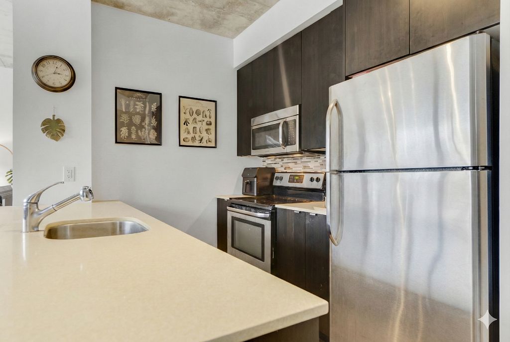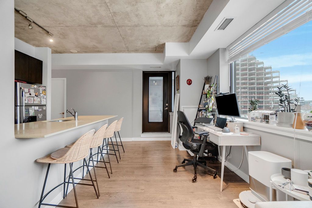 Welcome to stylish boutique living in the heart of vibrant king west. This beautiful 1 bedroom suite is nestled in one of toronto's most sought after boutique buildings on prestigious millionaire's row. The thoughtfully designed 606 sq ft layout features 9-foot ceilings and a sleek modern kitchen with stainless steel appliances, creating a bright and contemporary space perfect for everyday living. Step out onto the spacious north facing balcony and enjoy open city views an ideal spot for morning coffee or evening relaxation. This suite also includes the convenience of ensuite laundry, parking, and a locker. Perfectly positioned directly across from the well, you'll have wellington market, indigo, shoppers, banks, cafés, and shops right at your doorstep. Enjoy being steps from toronto's premier dining, shopping, and nightlife, while remaining just minutes to the financial district, queens quay, and spadina. Experience chic downtown living where style, comfort, and convenience come together. Some photos have been virtually staged.