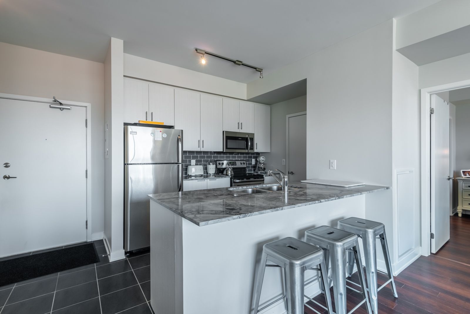 • Well-equipped kitchen with stainless steel appliances and granite countertops.