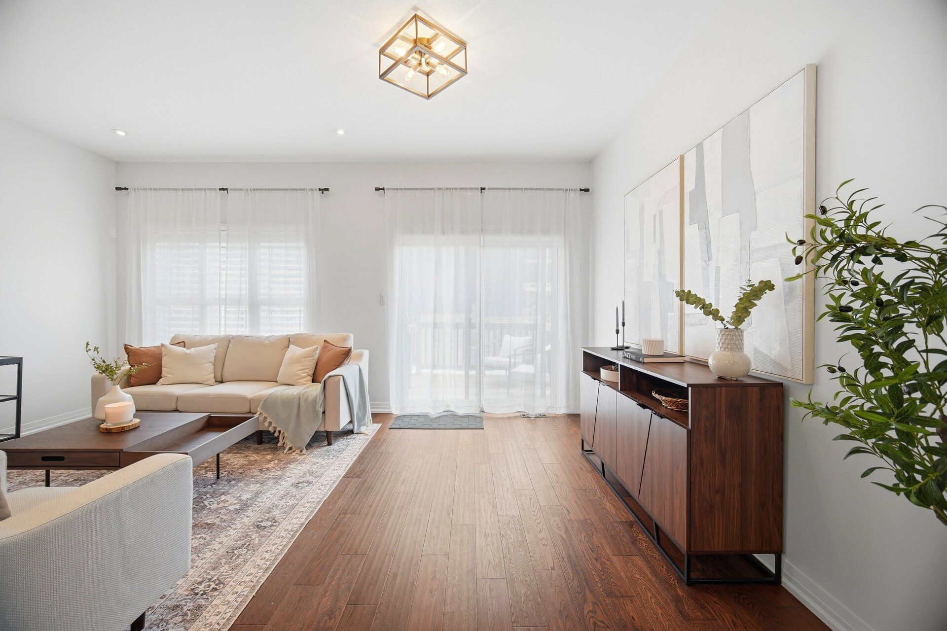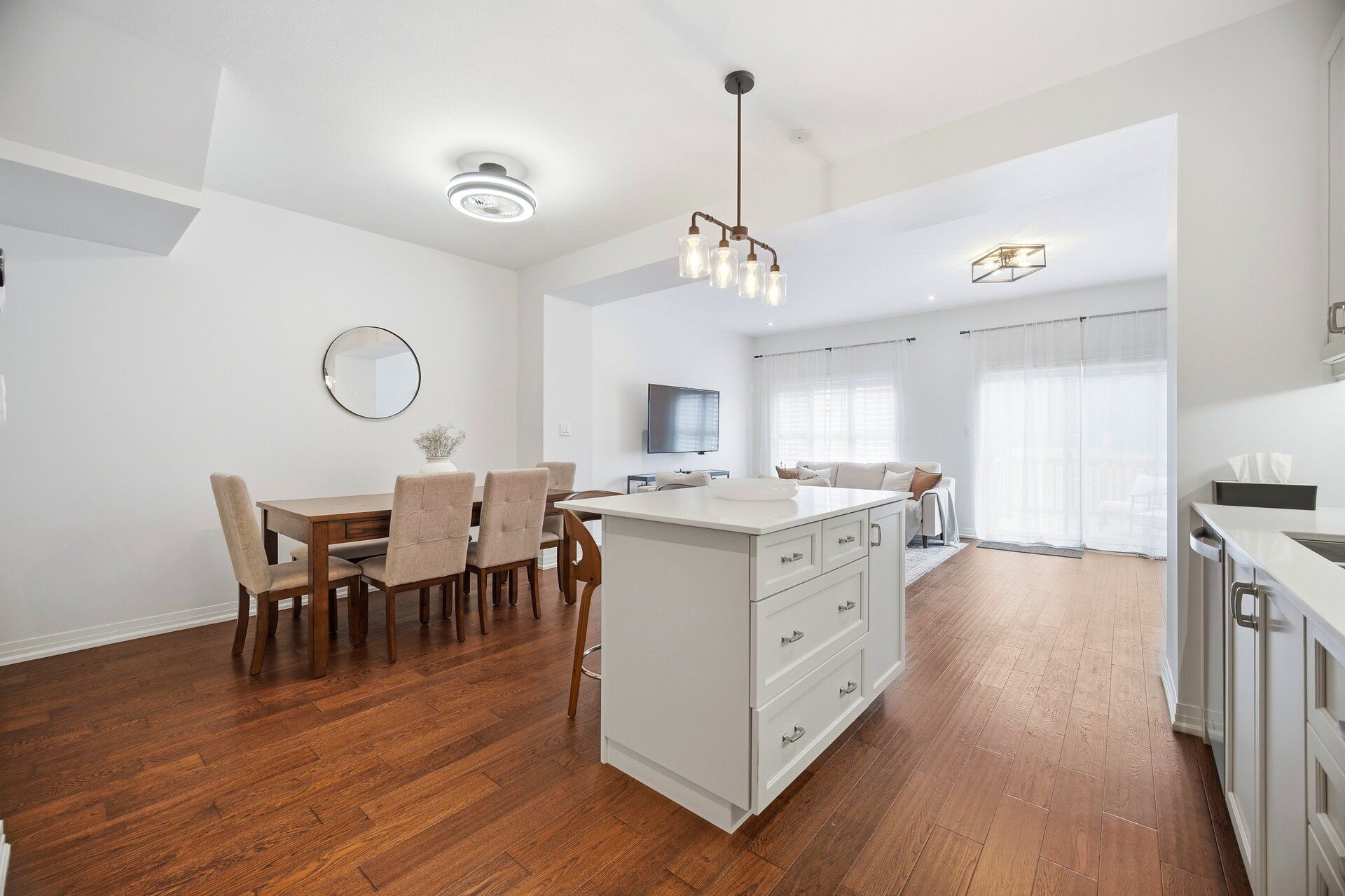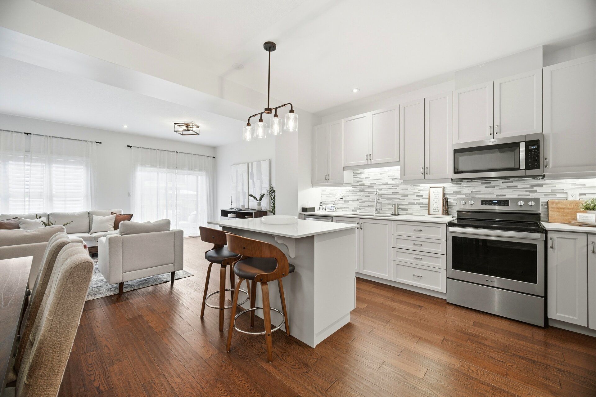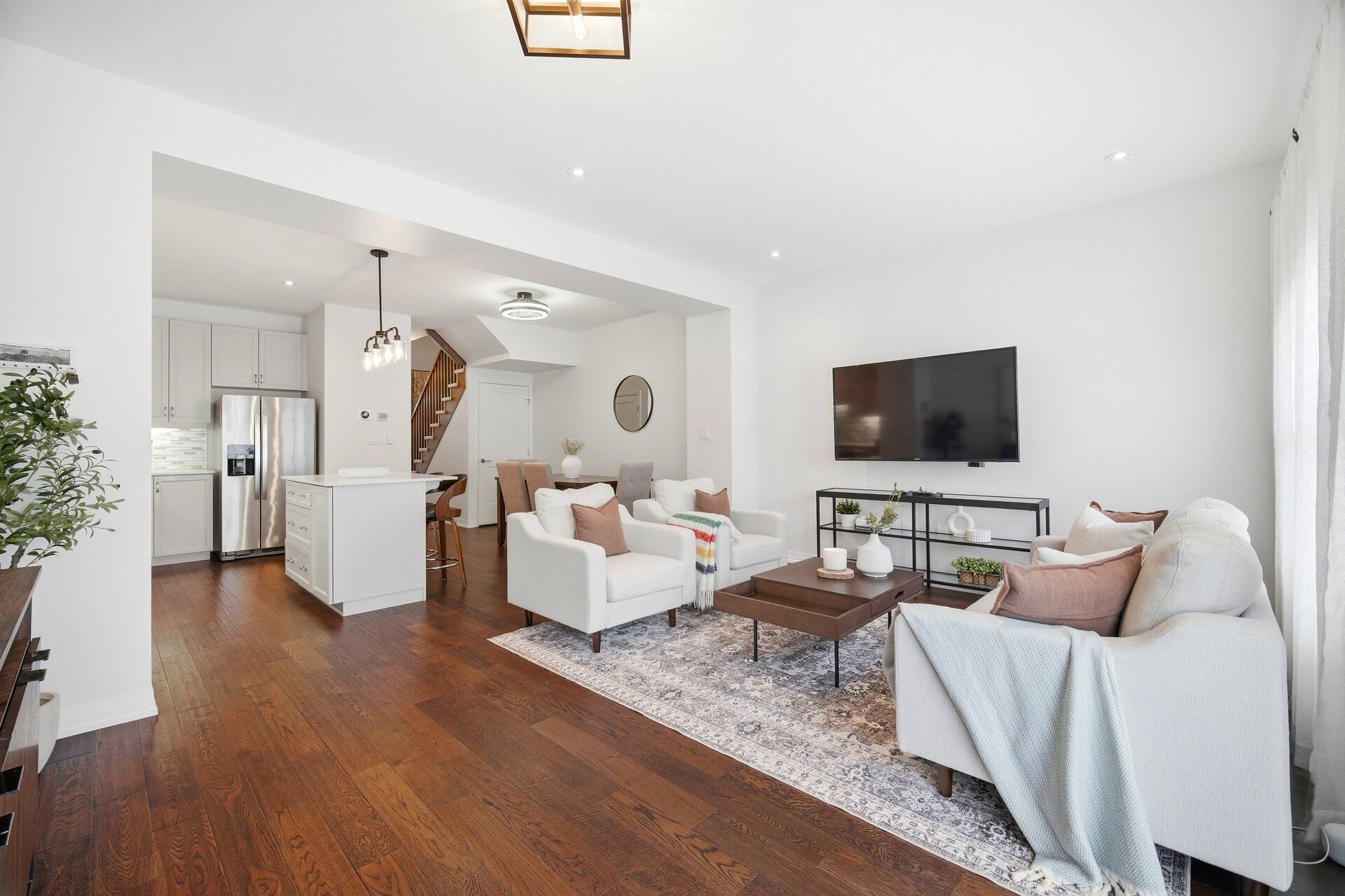 • Bright open concept design with beautiful walnut hardwood floors.