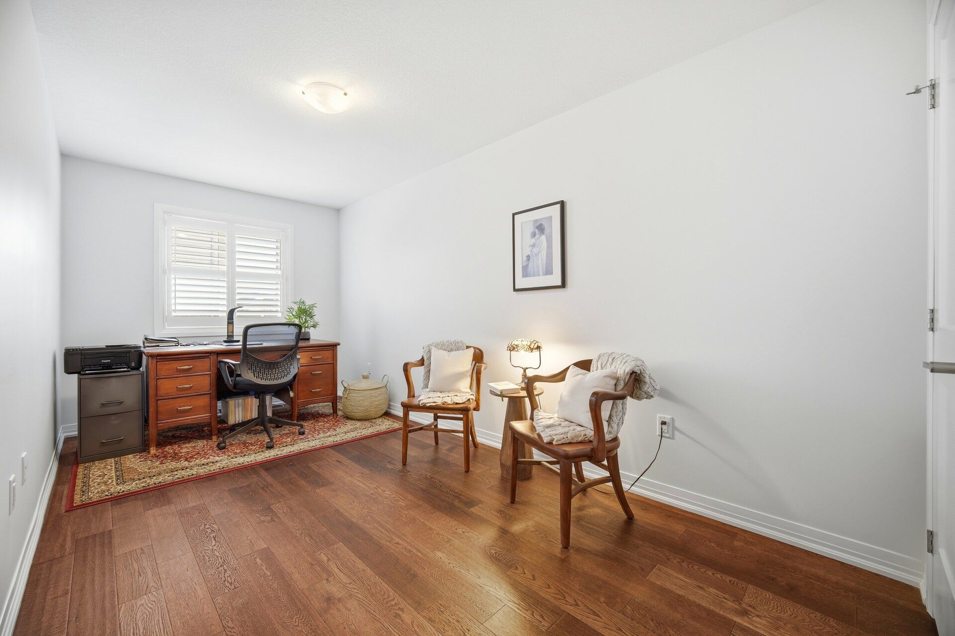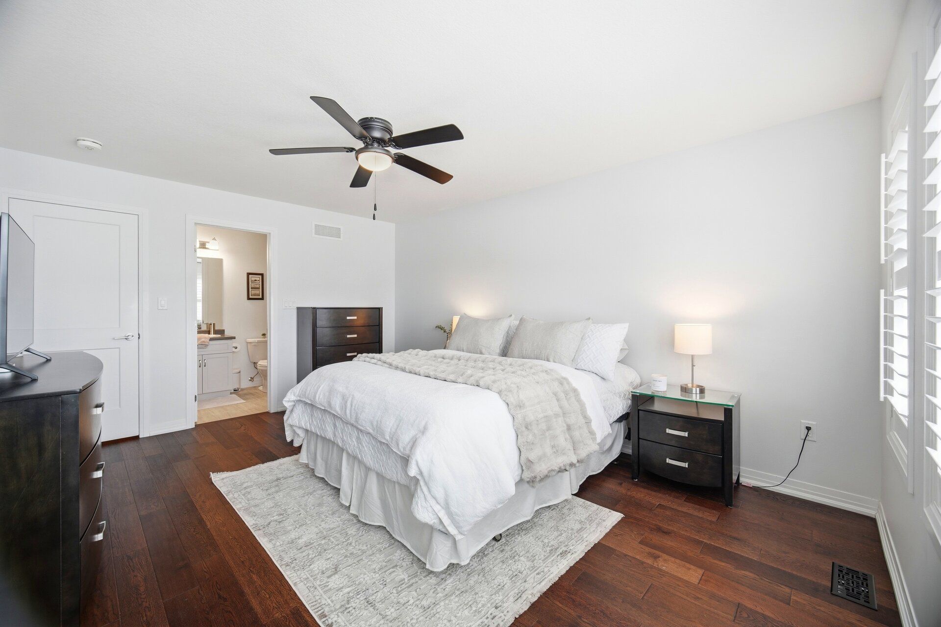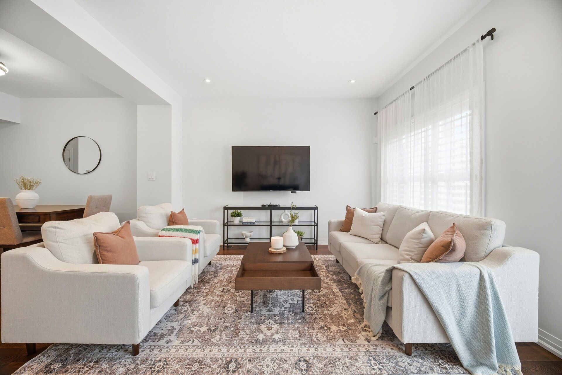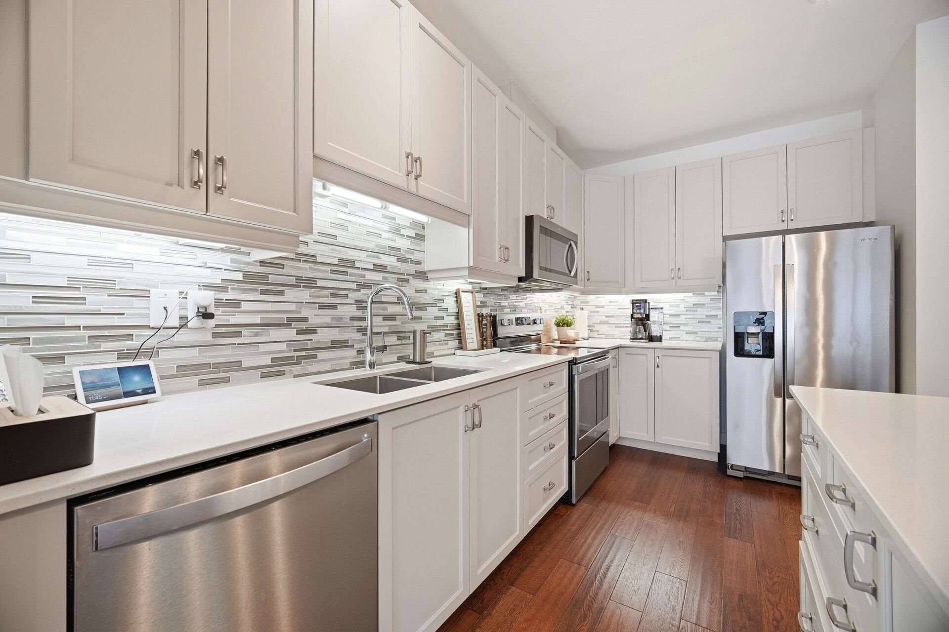 • Bright open concept design with beautiful walnut hardwood floors.