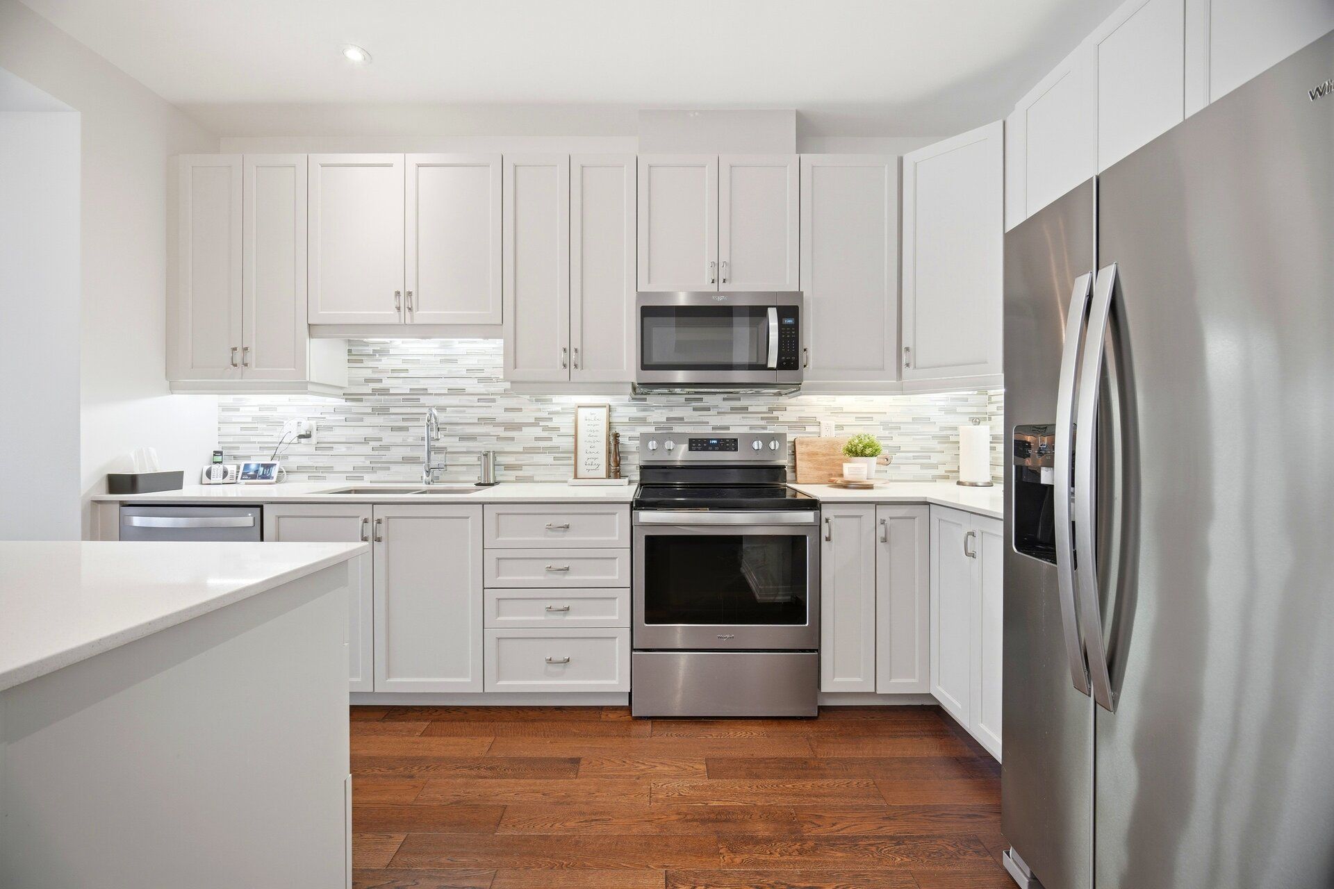 • Spacious kitchen with ample storage and a breakfast bar.