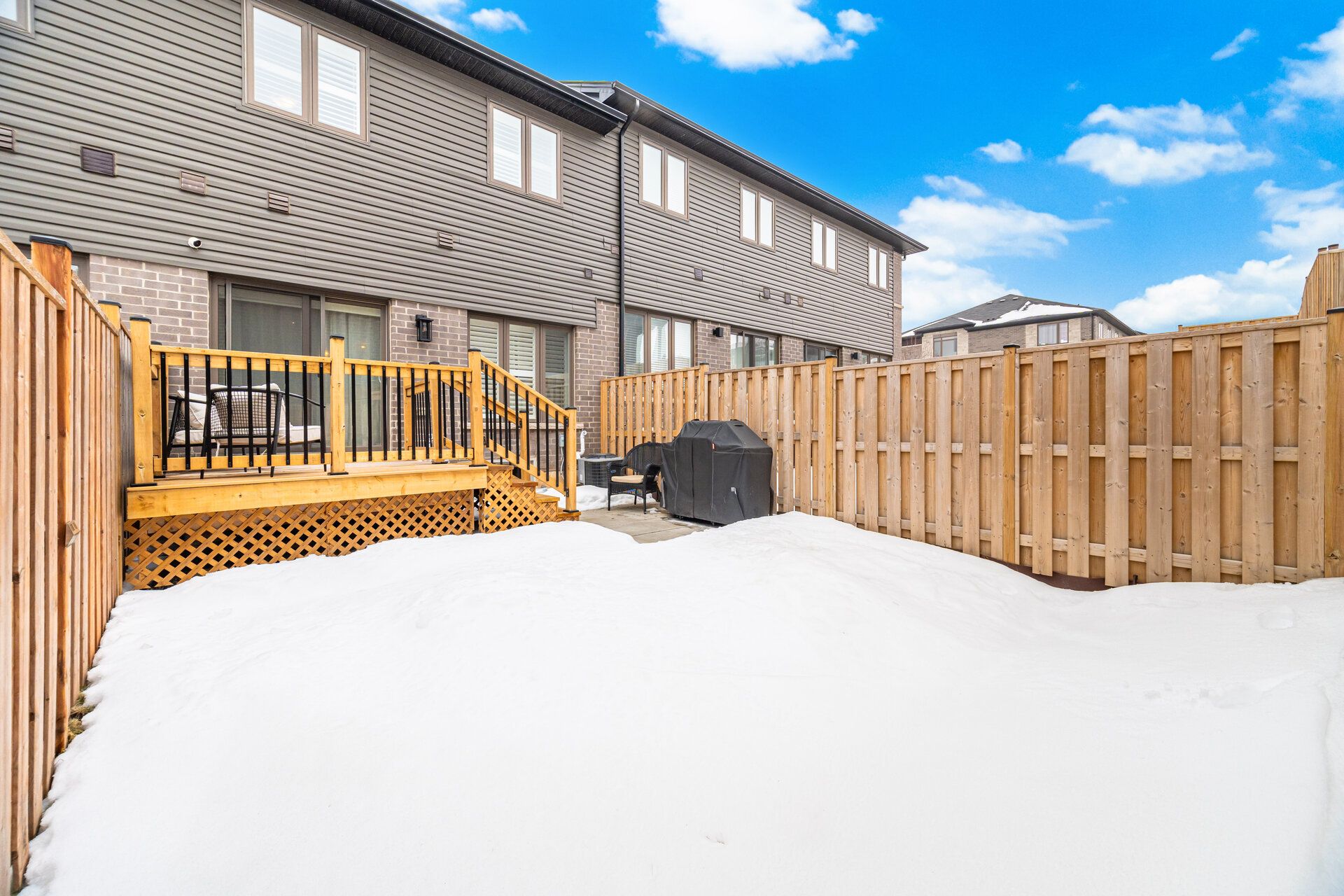 • Roomy backyard with an upgraded deck for outdoor seating.
