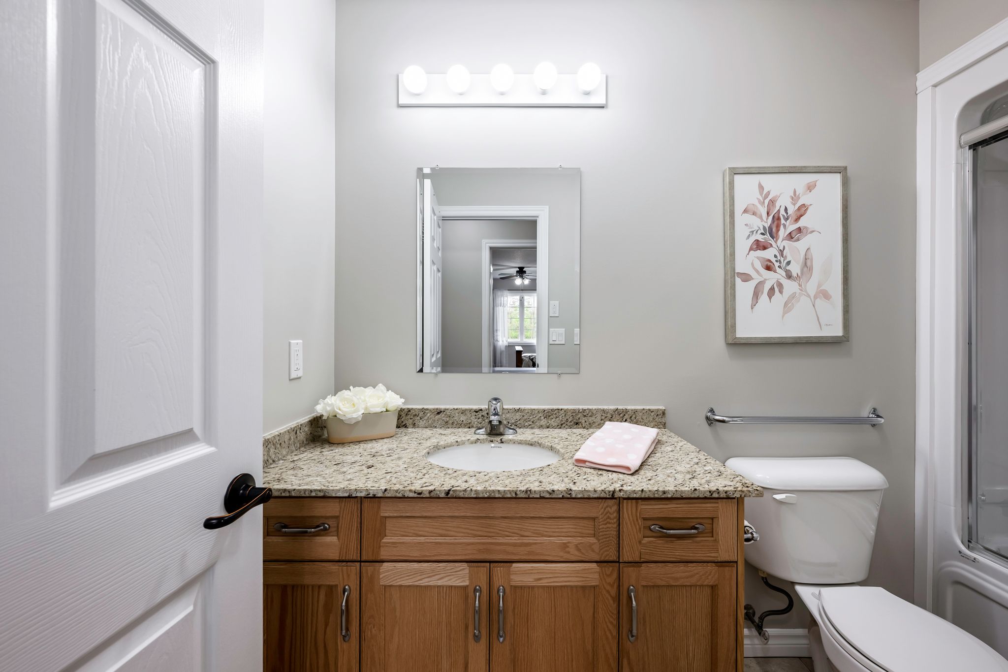 **public open house sat, dec 6th, 1:00pm-3:00pm**welcome to curve rock condominiums a peaceful, well-kept community where comfort meets convenience. This beautifully maintained semi-detached condo bungalow offers 2+1 bedrooms, 3 full bathrooms, and a well-designed floor plan that makes daily living feel easy and relaxed. The main level is bright and welcoming, featuring hardwood flooring throughout and large windows that fill the space with natural light. The open-concept kitchen, dining area, and living room are perfect for both daily routines and entertaining. A gas fireplace adds warmth to the living room, while sliding patio doors lead to a covered back deck with a natural gas bbq hook-up. The main floor also includes a laundry room with direct access to the single-car garage for added convenience. The spacious primary bedroom offers a walk-in closet and a private 3-piece ensuite, creating a quiet retreat at the end of the day. A second bedroom and a separate 4-piece bathroom on this level add versatility - perfect for accommodating guests, setting up a home office, or creating a cozy space for hobbies or reading. The fully finished lower level extends your living area with a spacious rec room - well-suited for relaxing, entertaining, or setting up a home theatre or games area. A third bedroom and a 3-piece bathroom offer a private, comfortable space for guests or family. Thanks to above-grade windows, the lower level enjoys great natural light, while in-floor heating adds year-round comfort. Additional storage areas help keep everything neatly tucked away. Step out your back door and enjoy direct access to a nearby walking trail - ideal for morning strolls, quiet reflection, or a bit of fresh air without having to leave the community. Low condo fees include snow removal, lawn care, and garden maintenance - freeing you from outdoor chores and allowing you to truly enjoy the relaxed lifestyle this home offers.